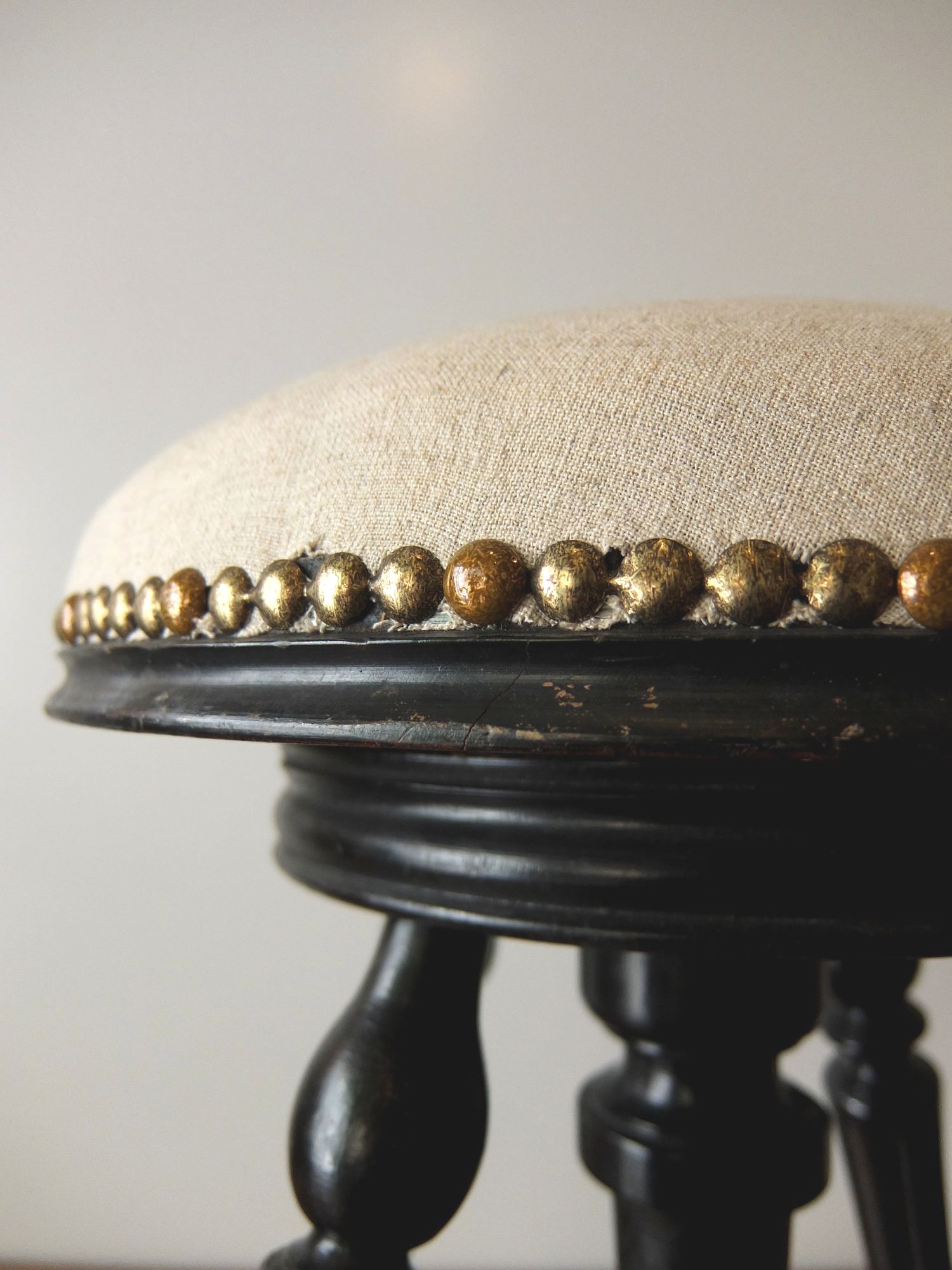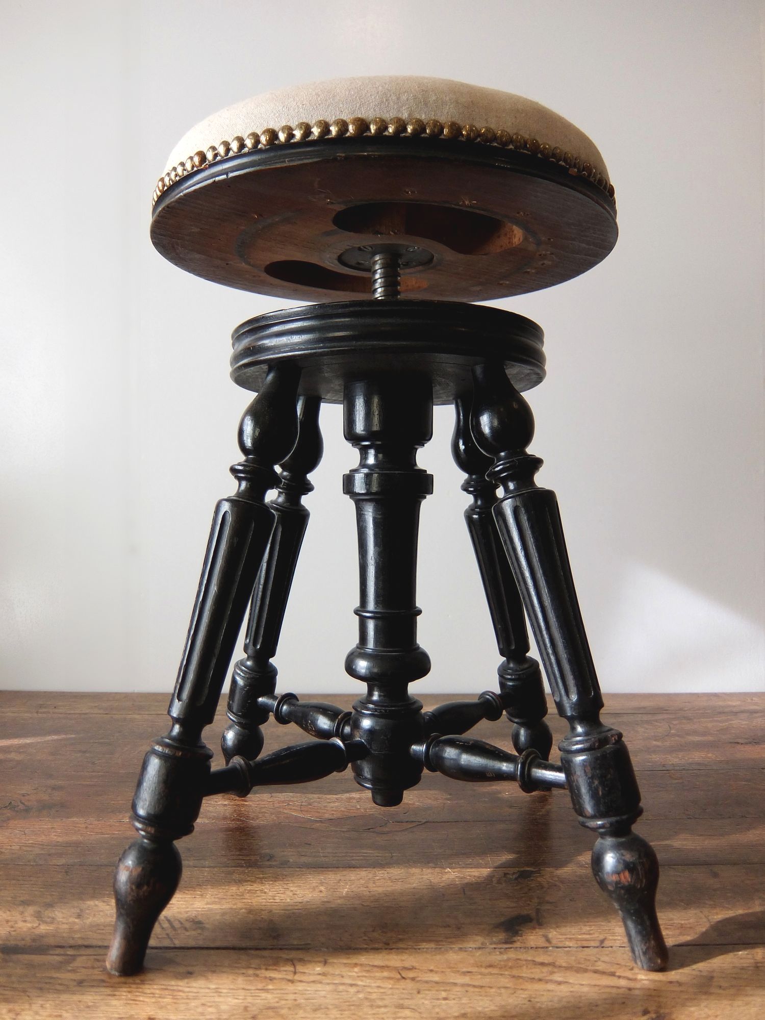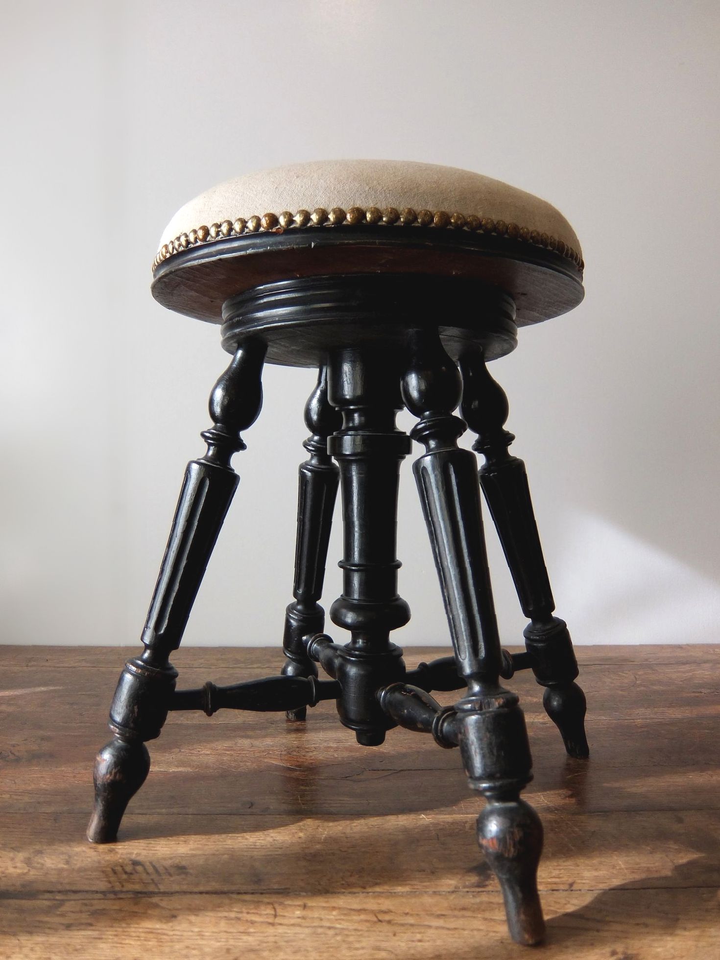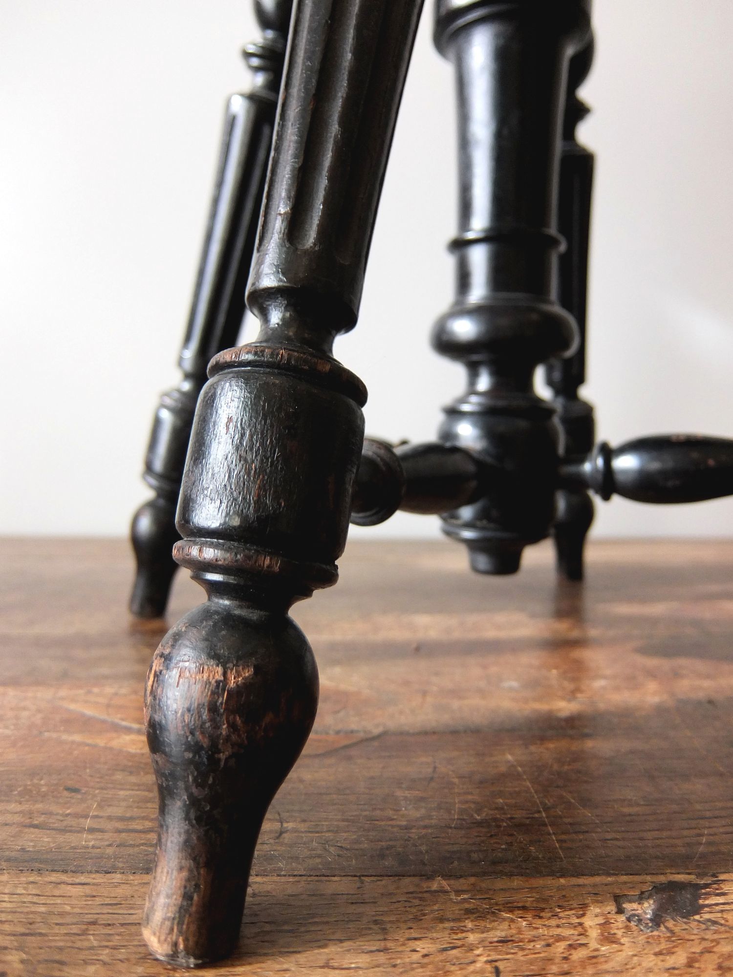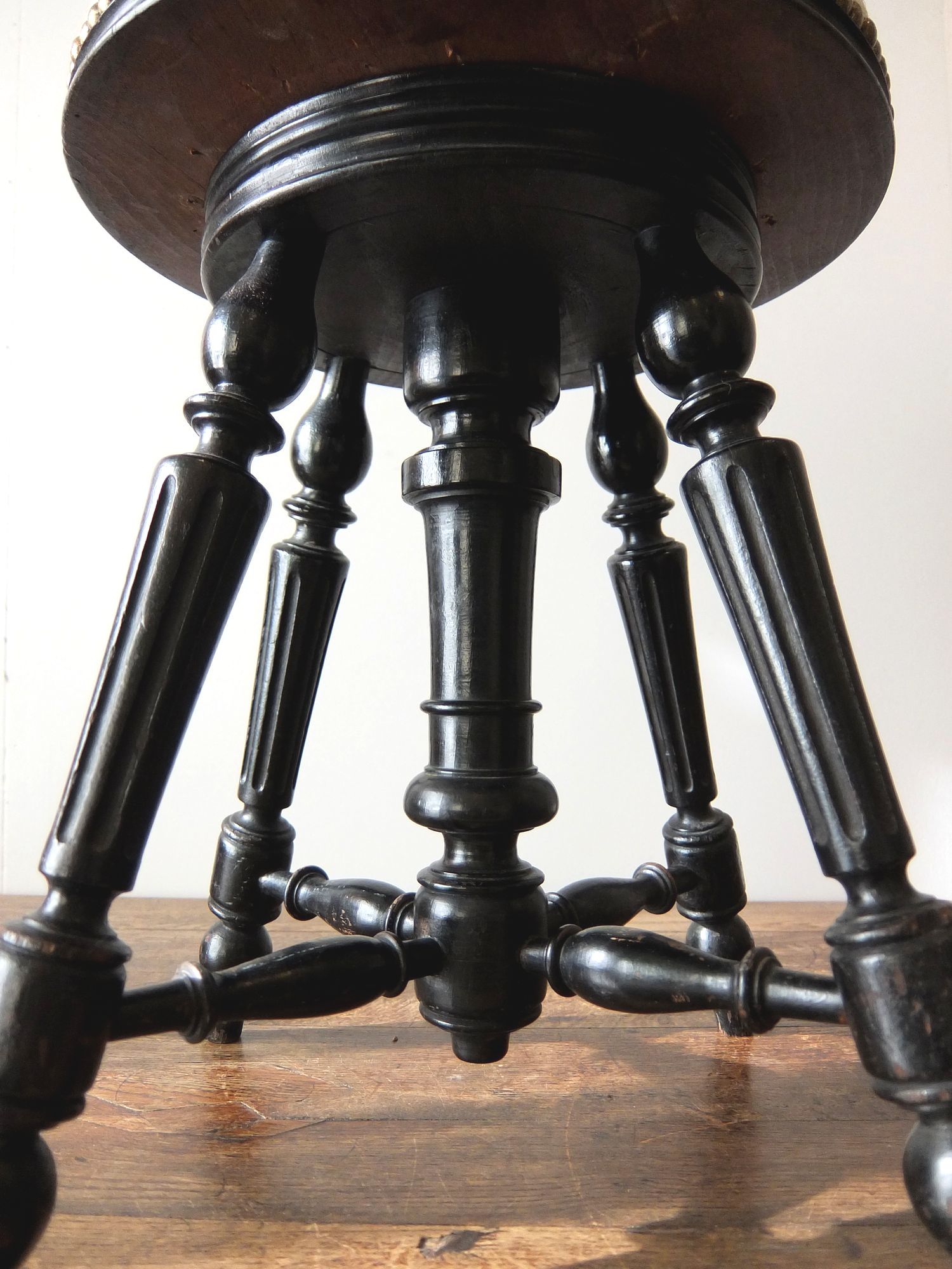 黒の塗装と意匠が美しいナポレオンⅢ世様式のピアノスツール
