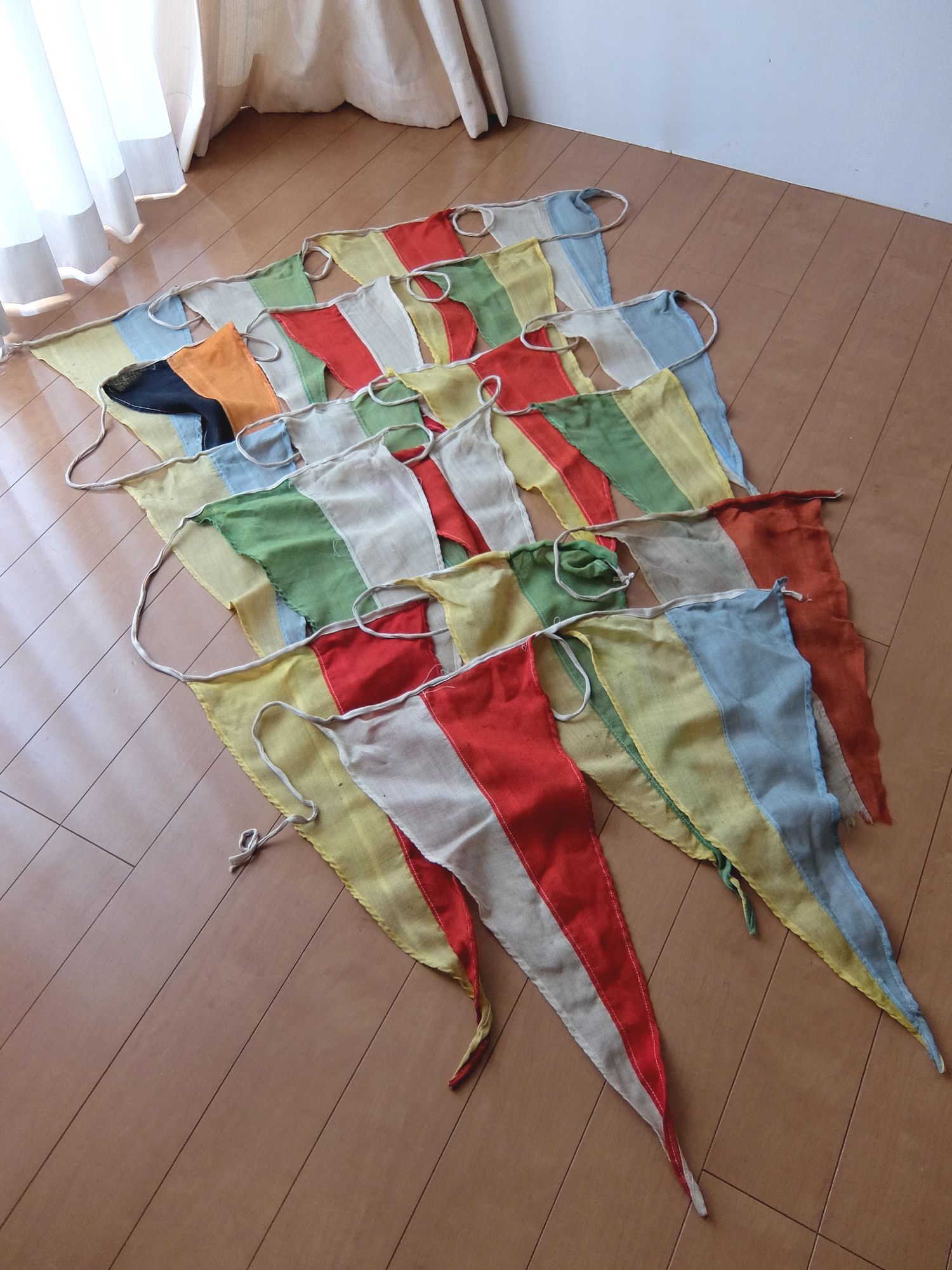 お祭り等の催事で使用されていた三角旗 (全19枚、全長10m)