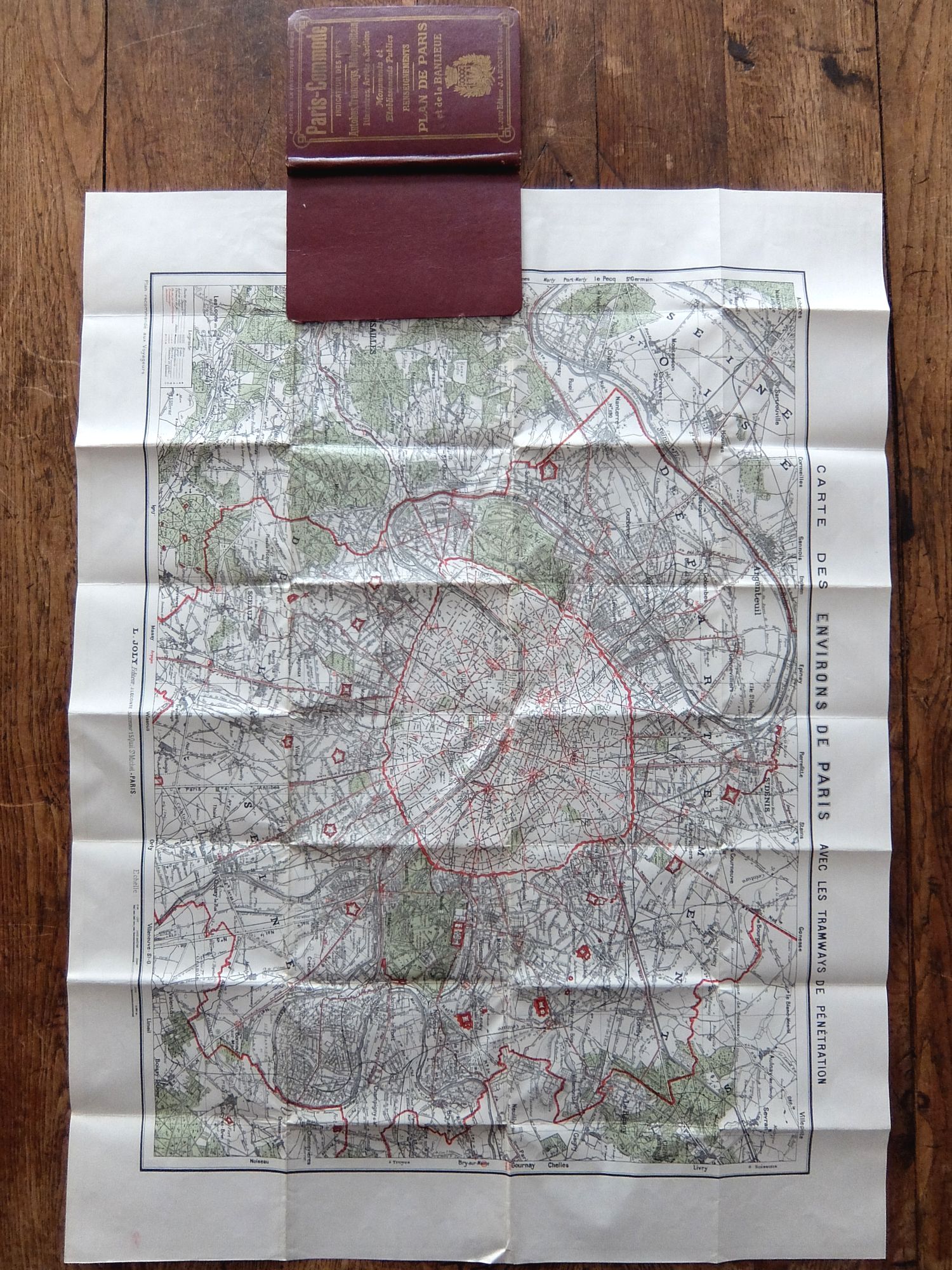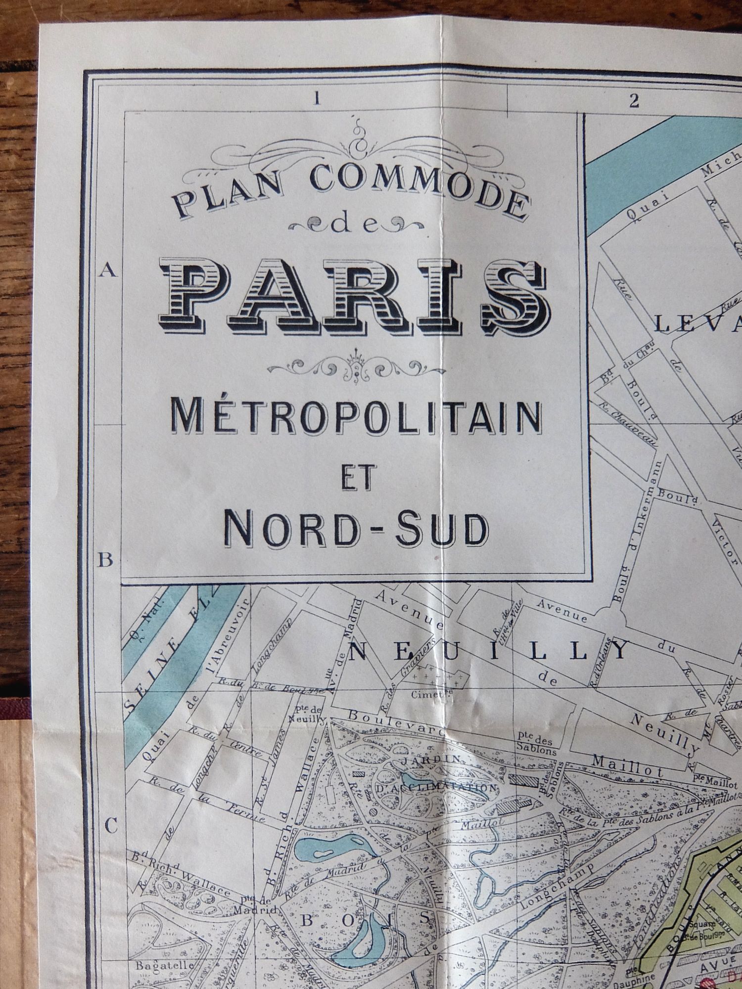 折り畳まれた地図がついたパリ市内のガイドブック(176頁)