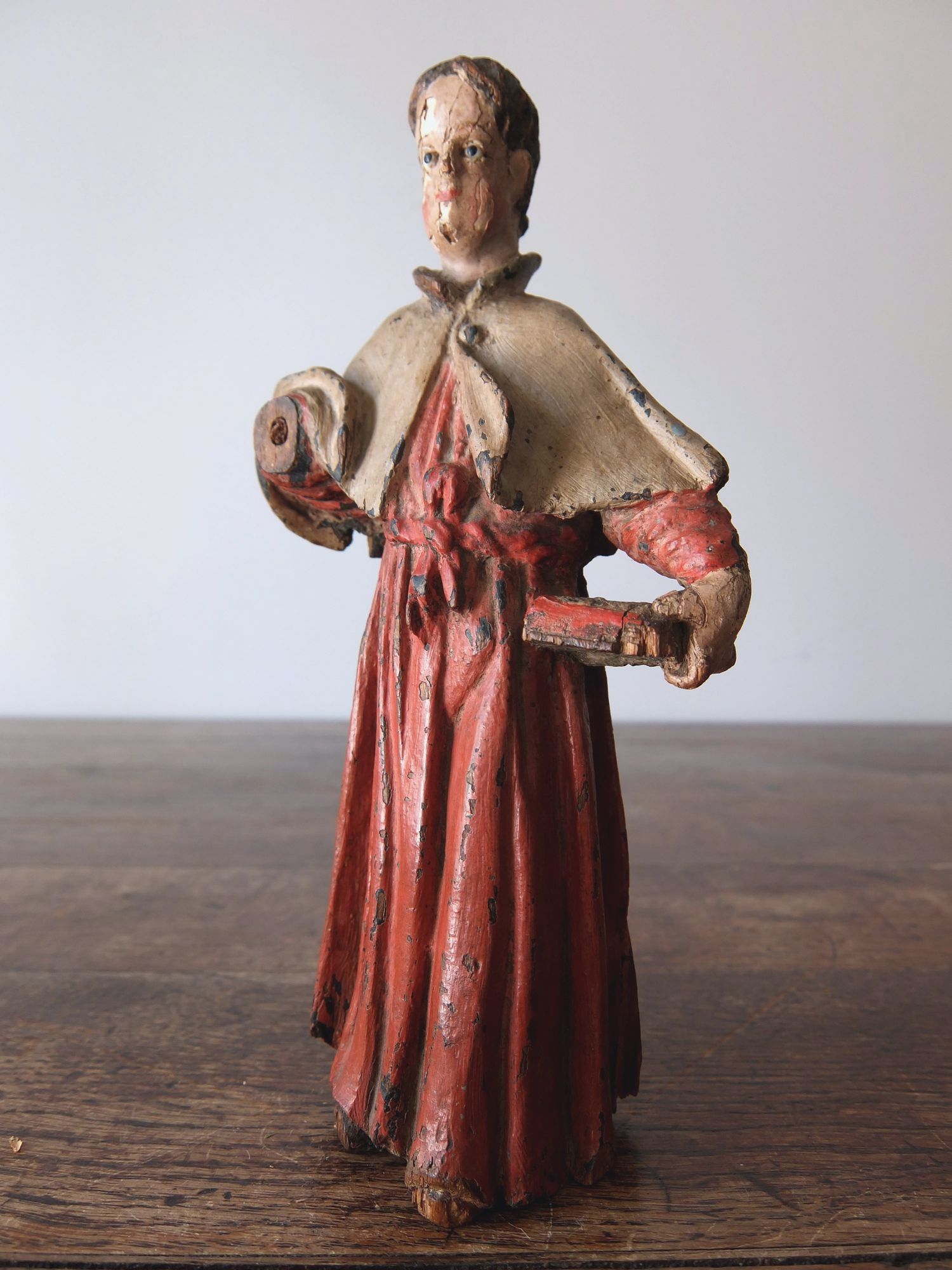 オーク材を精巧に模して製作された憂いの表情が美しいワックス製のマリア像