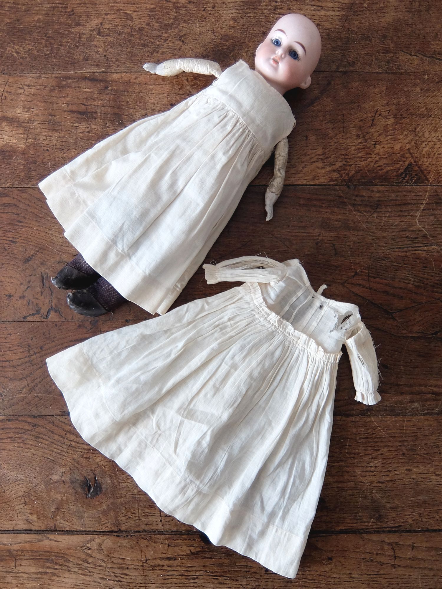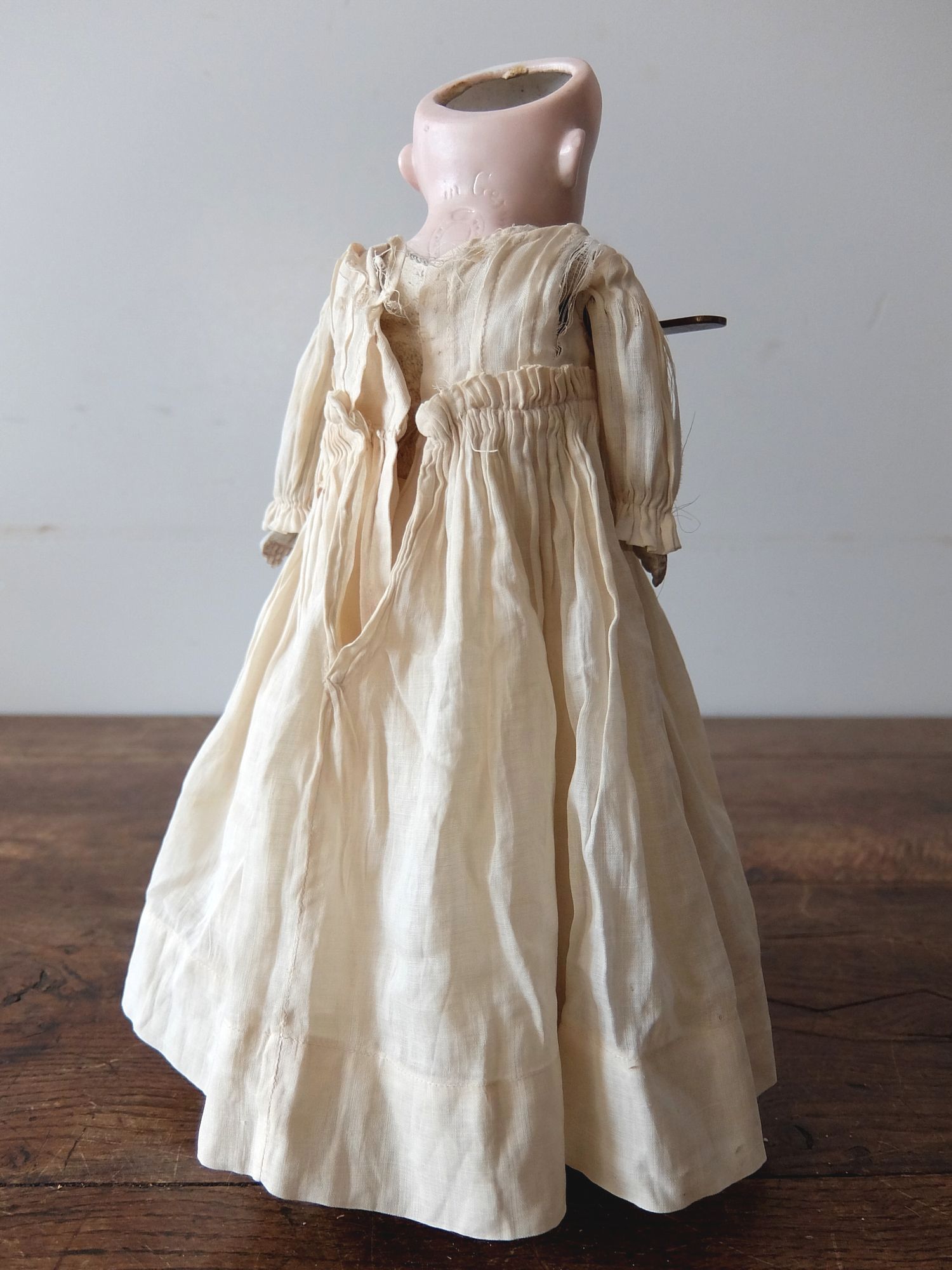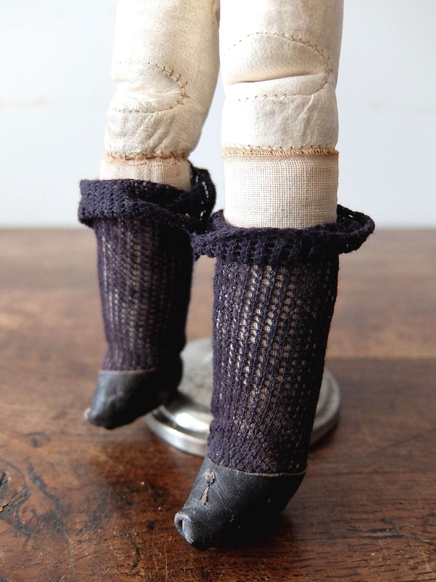 頭部と両腕は陶器、身体は本革でできたブルーの目の人形(ワンピース2点・パンタレット1点付)