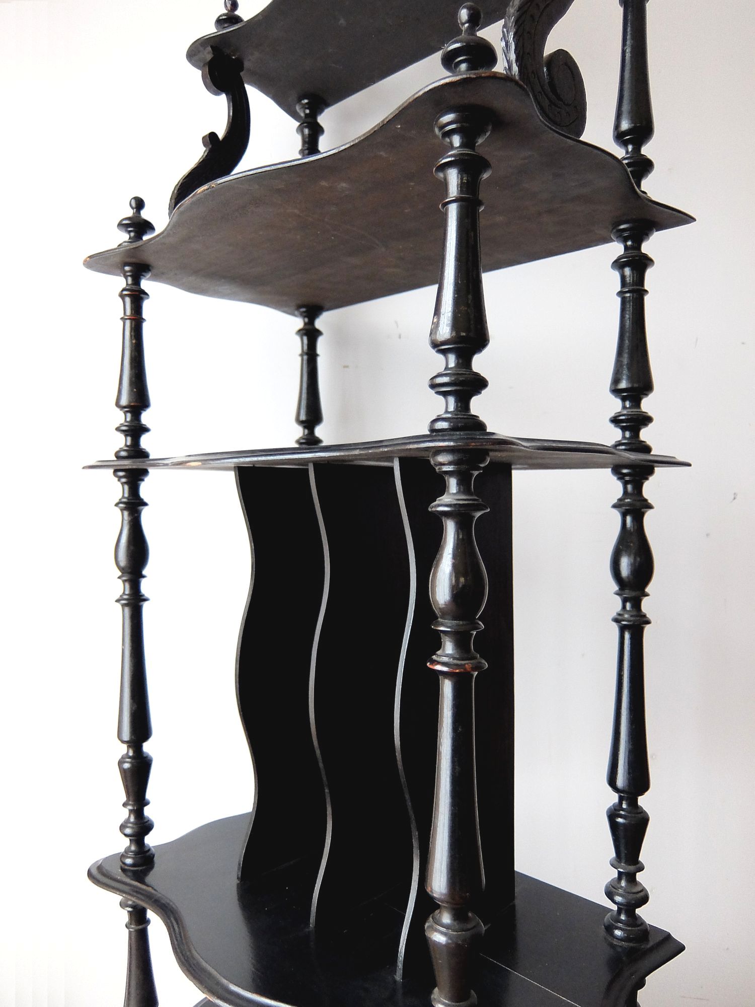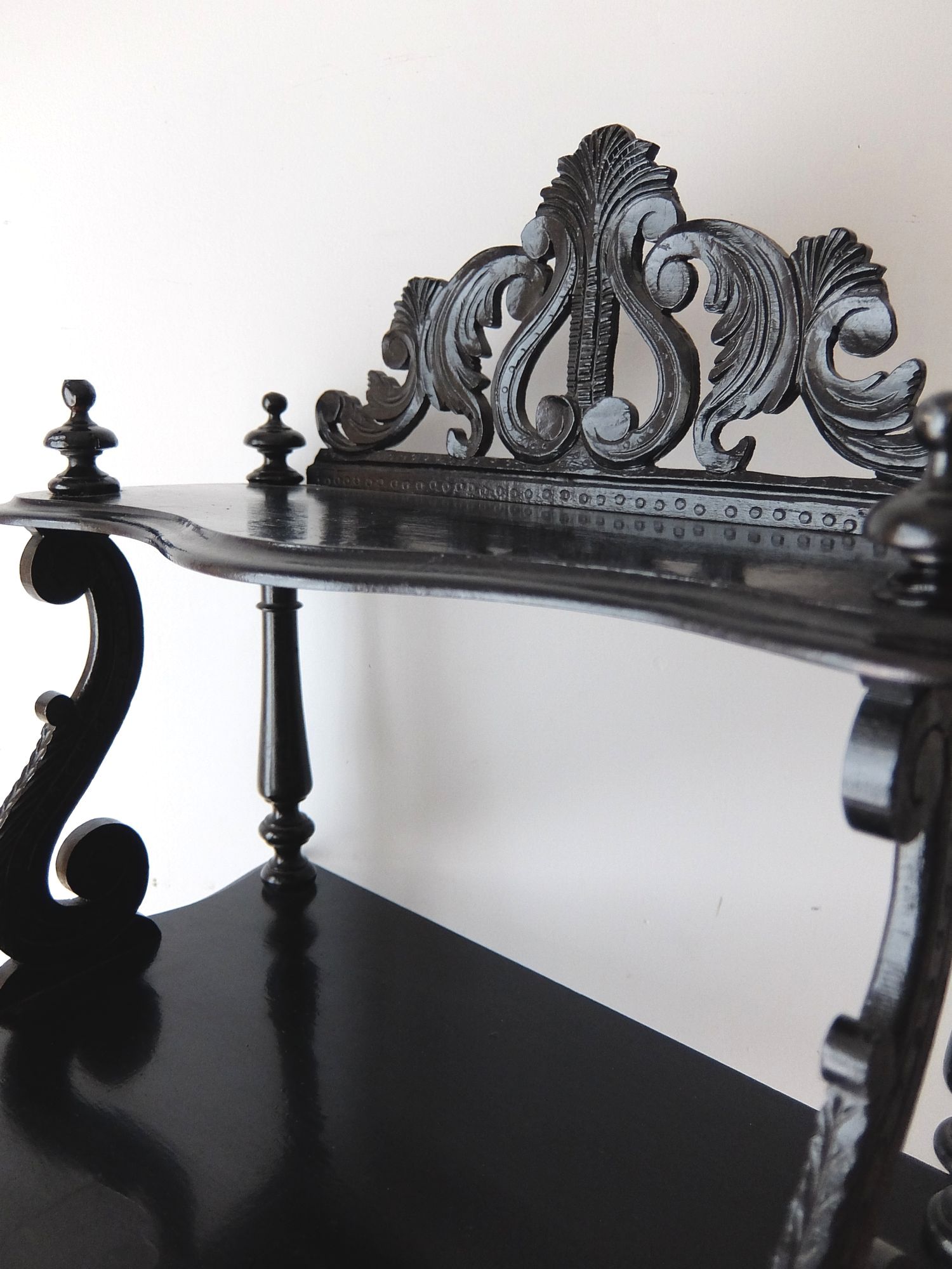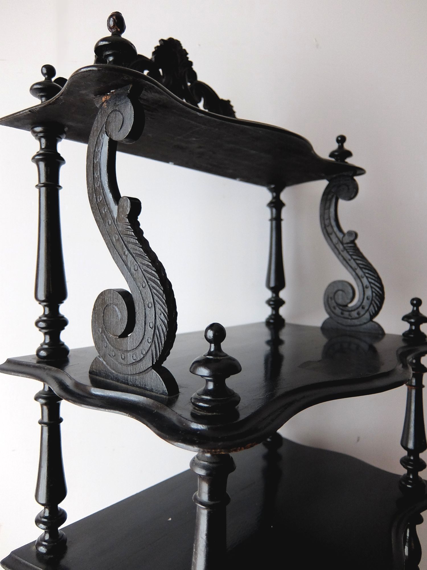 繊細な彫刻と漆黒の塗装が美しいナポレオンⅢ世様式のシェルフ