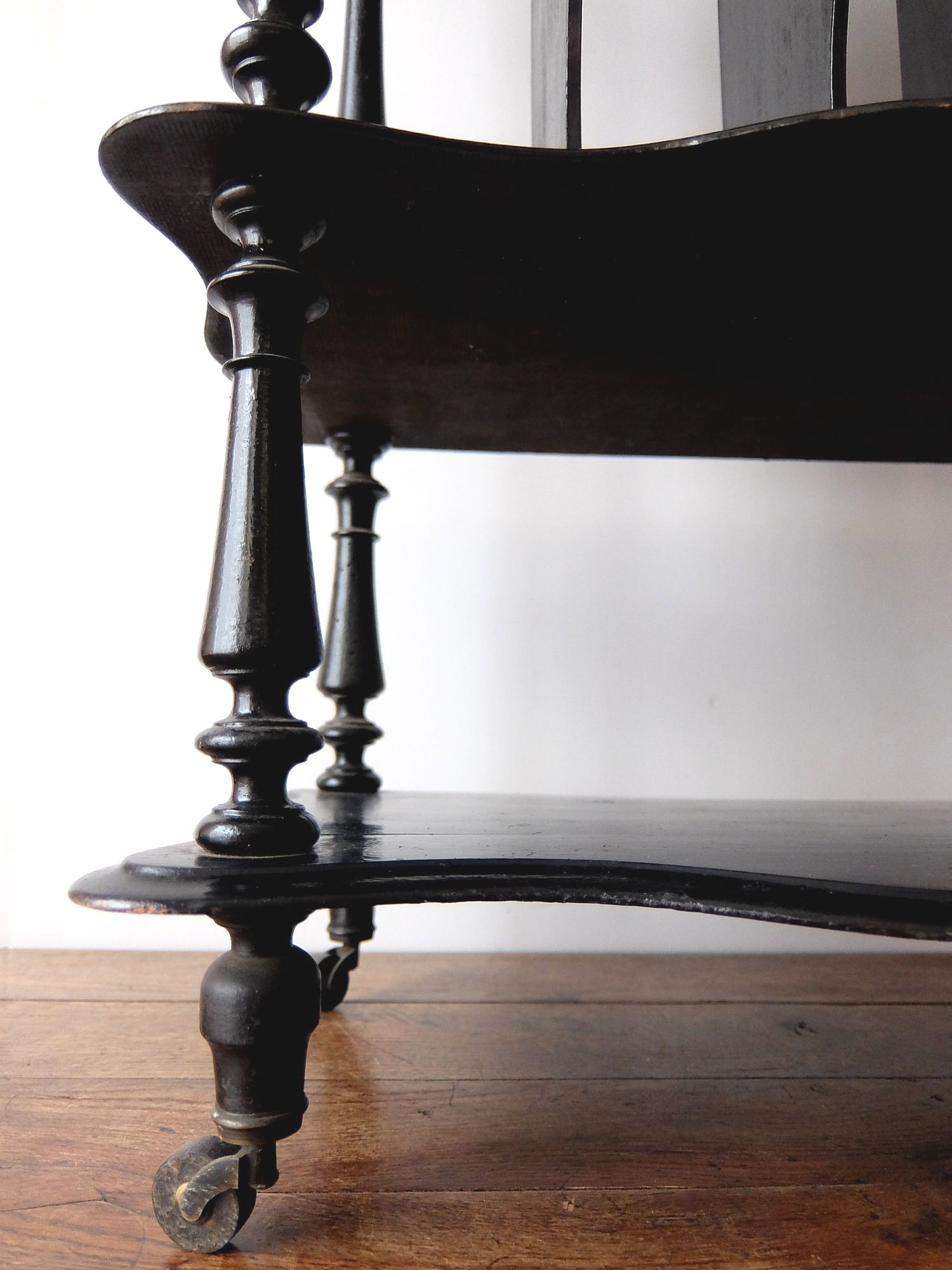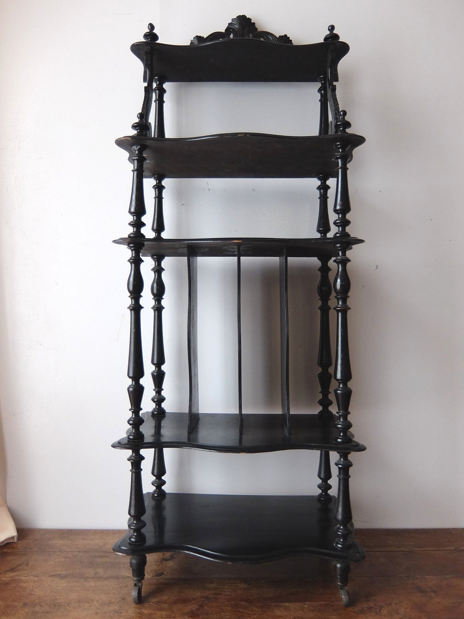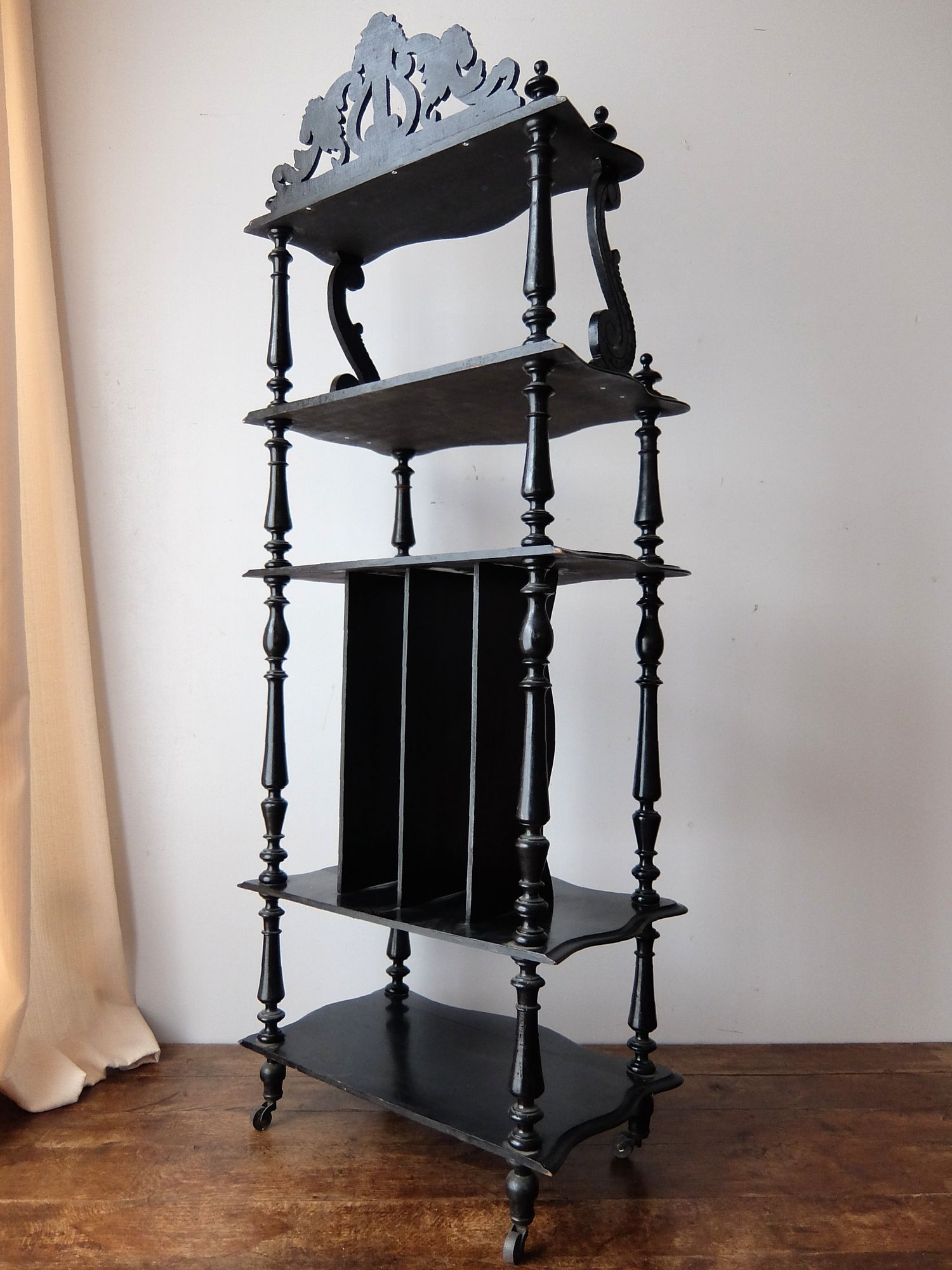 繊細な彫刻と漆黒の塗装が美しいナポレオンⅢ世様式のシェルフ