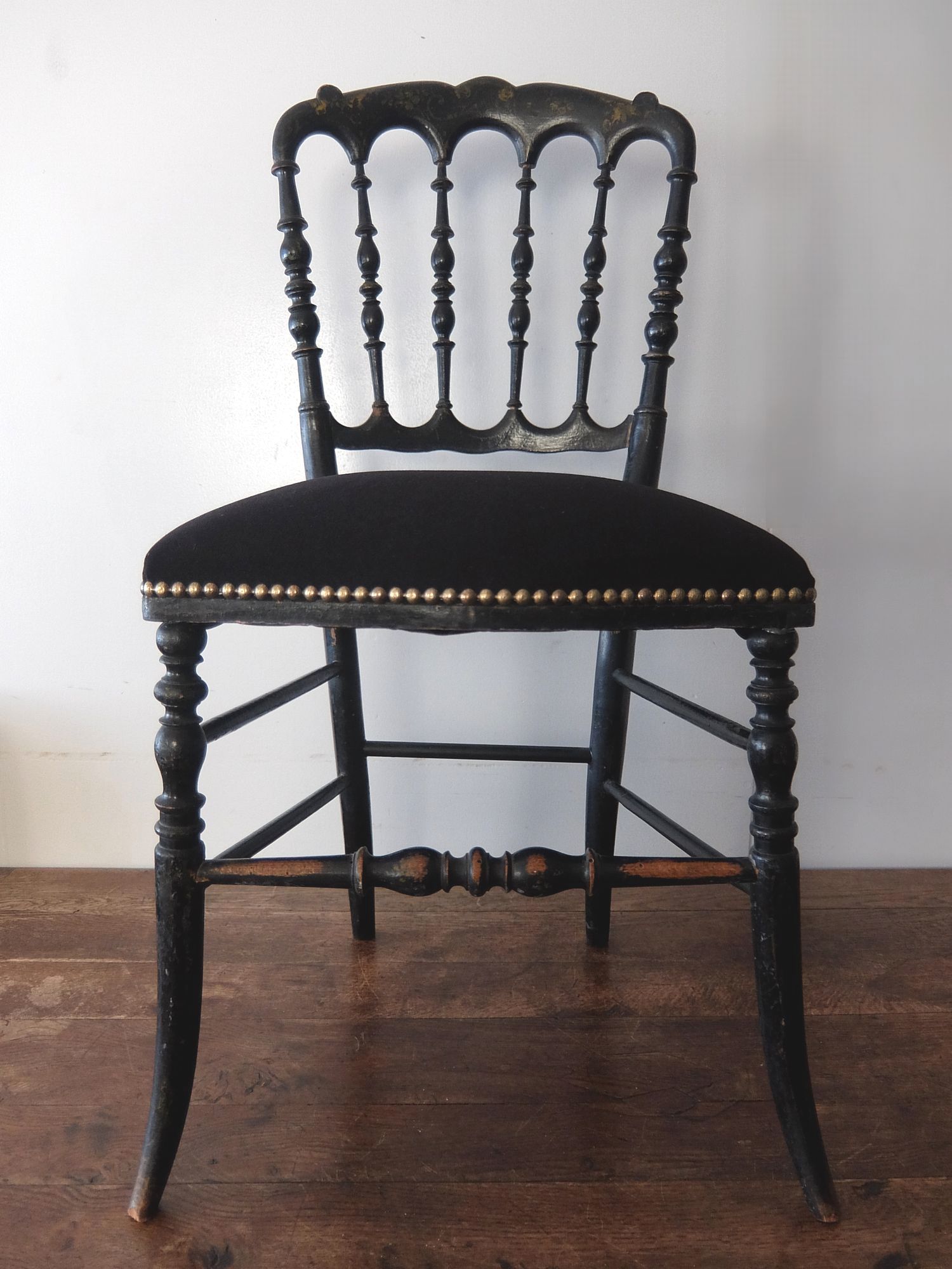 黒と金の塗装が美しいナポレオンⅢ世様式のチェアー