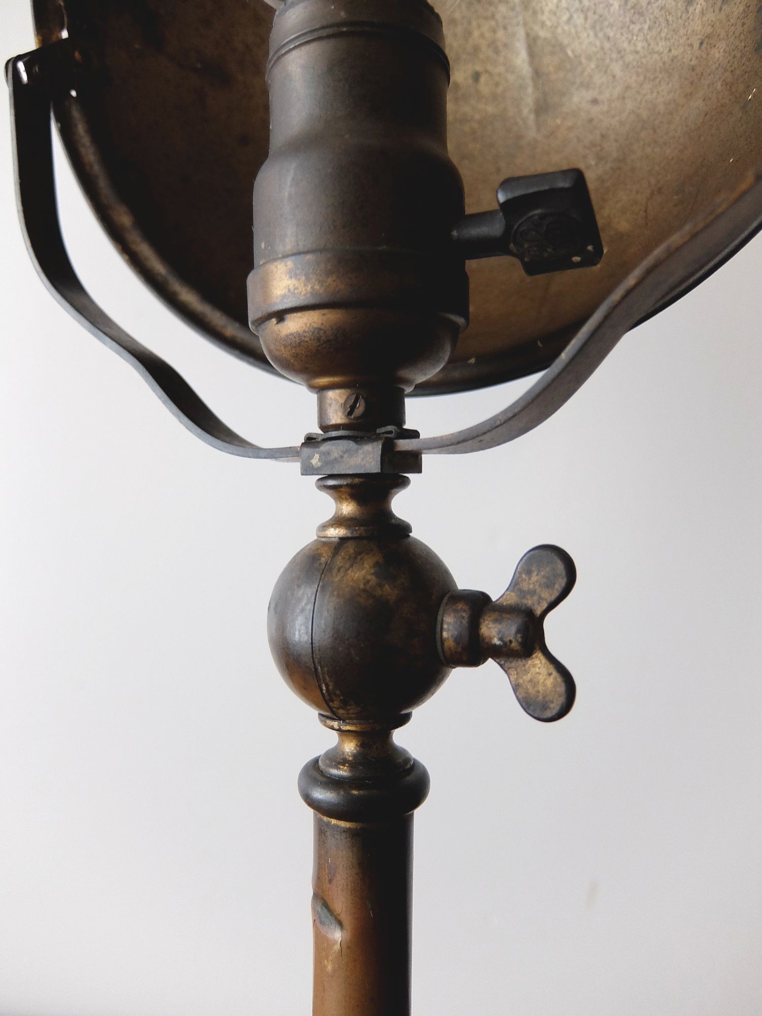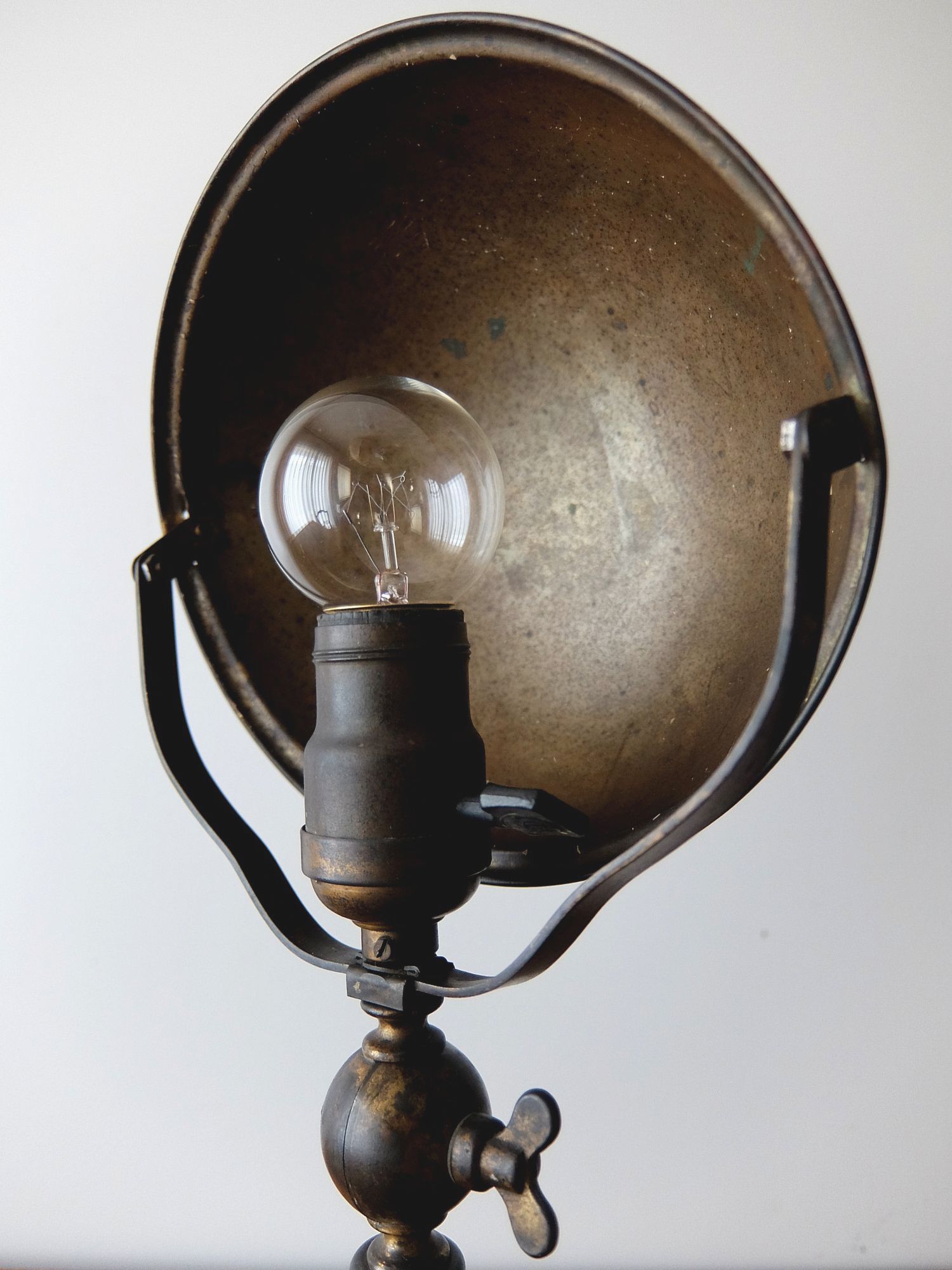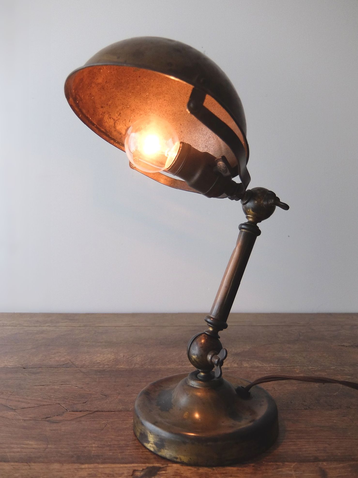 真鍮の経年の色彩が美しい多関節による広い可動域をもつデスクランプ