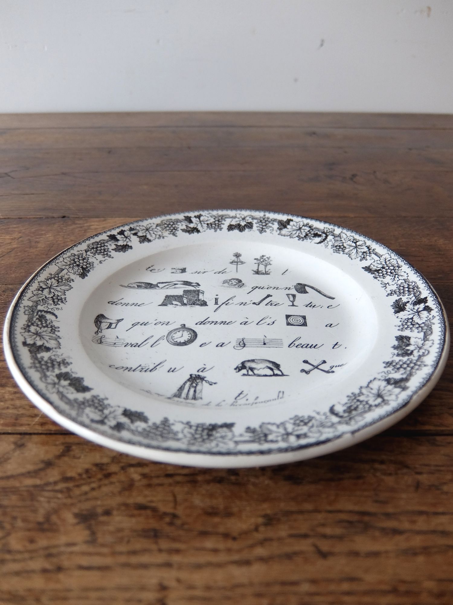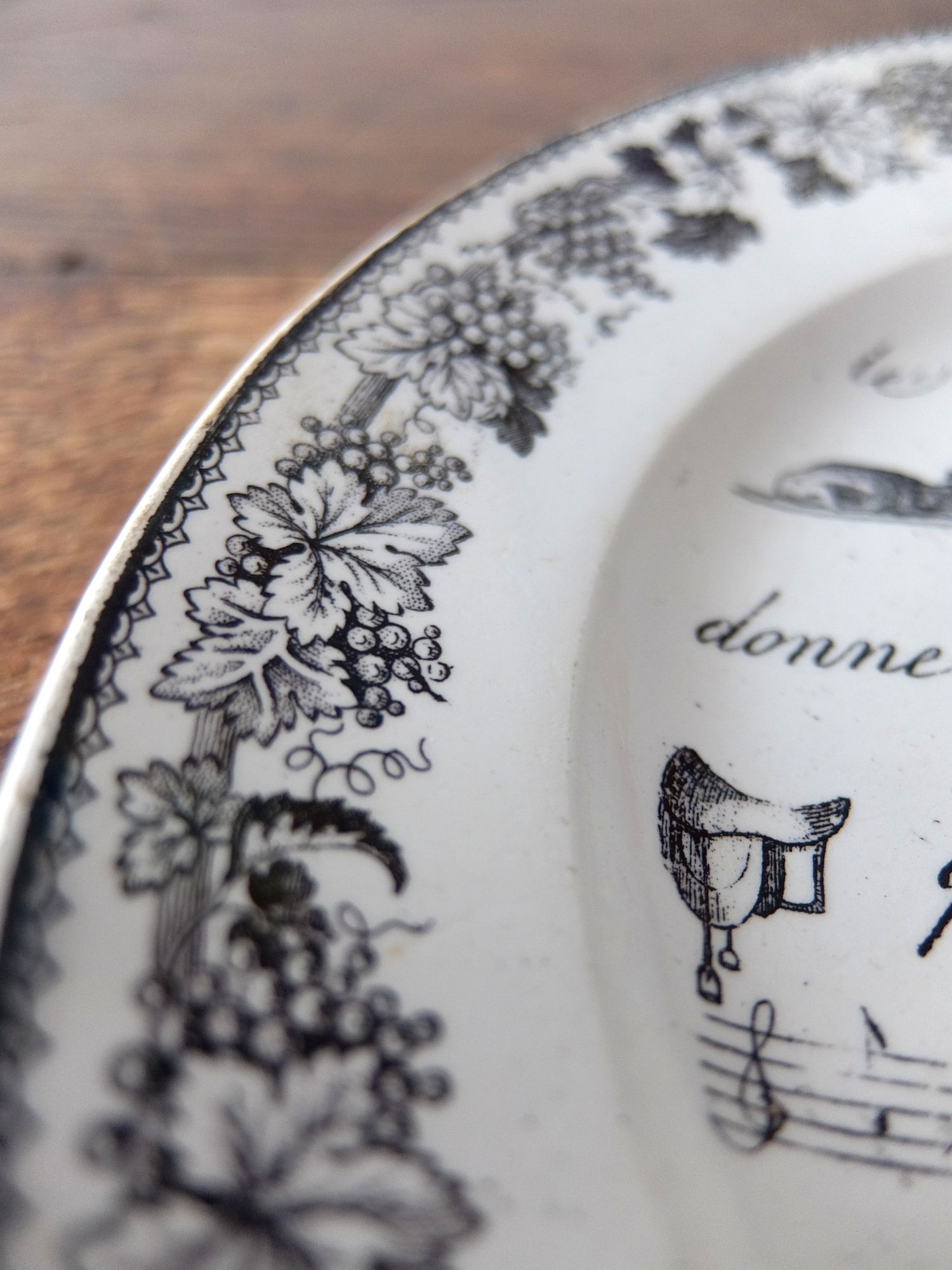 19世紀初期に作られた【Creil(クレイユ)】のグリザイユのなぞなぞ皿
