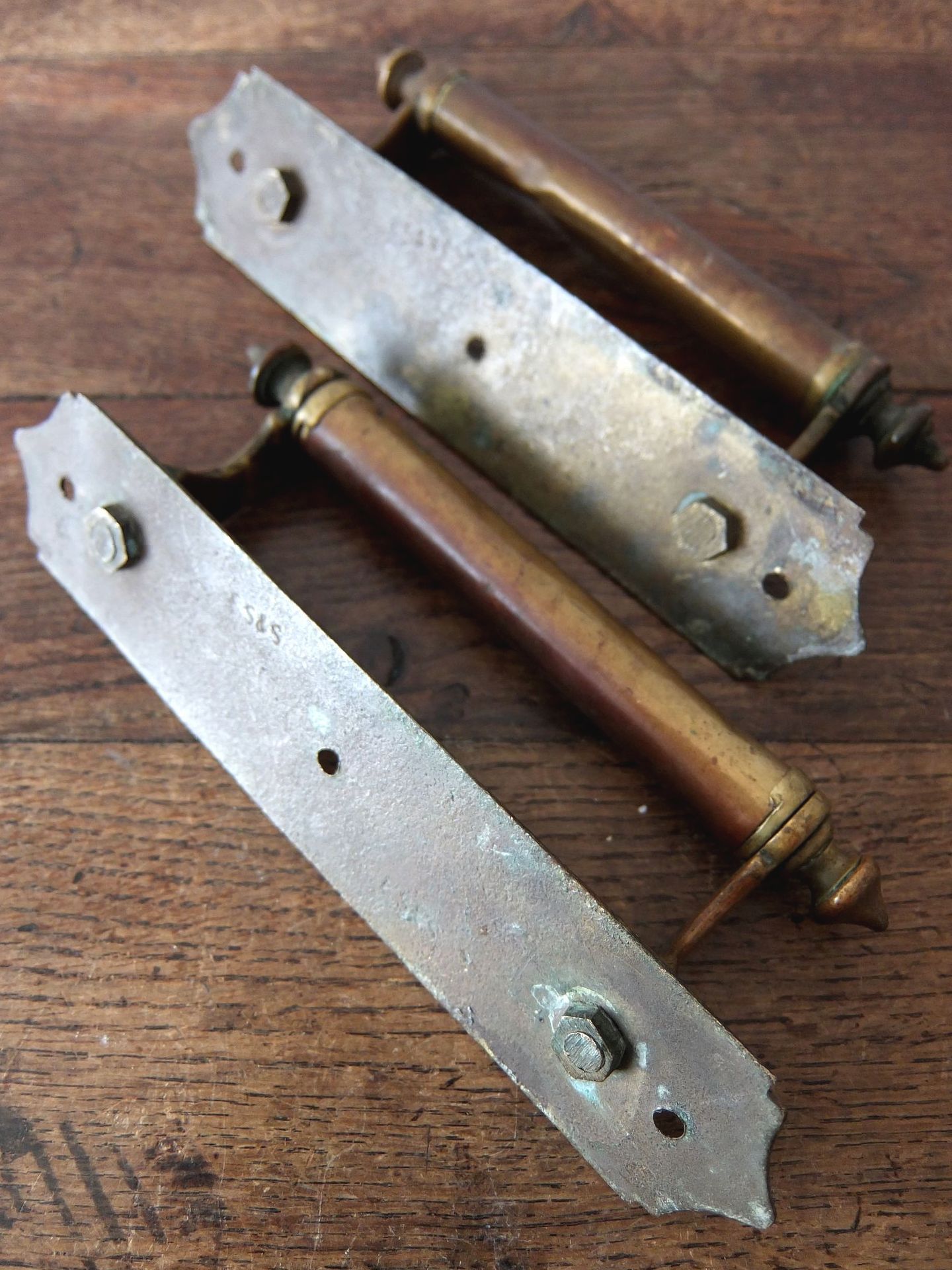 真鍮の経年劣化の状態が美しいドアハンドル(セット)