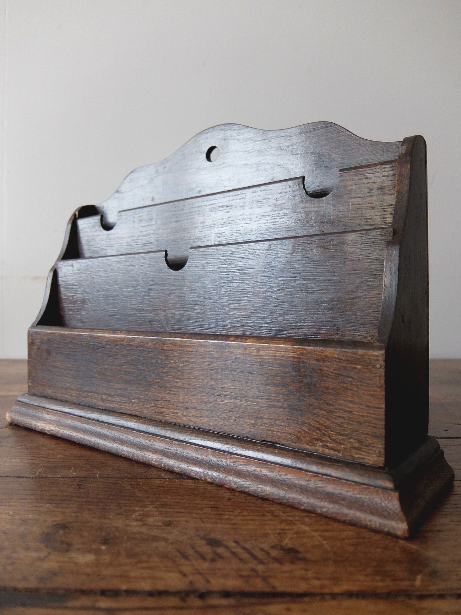 手紙や書類を整理するオーク材の収納ケース (カギ付)