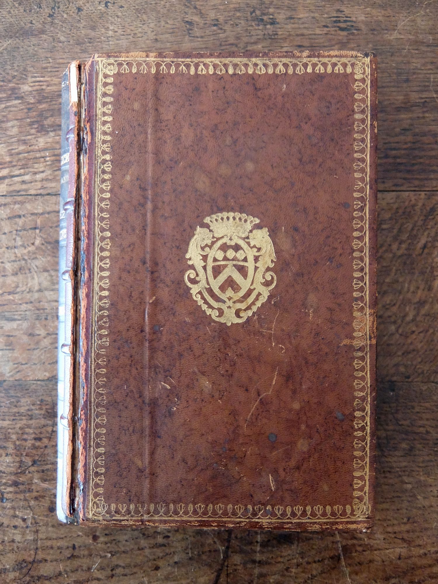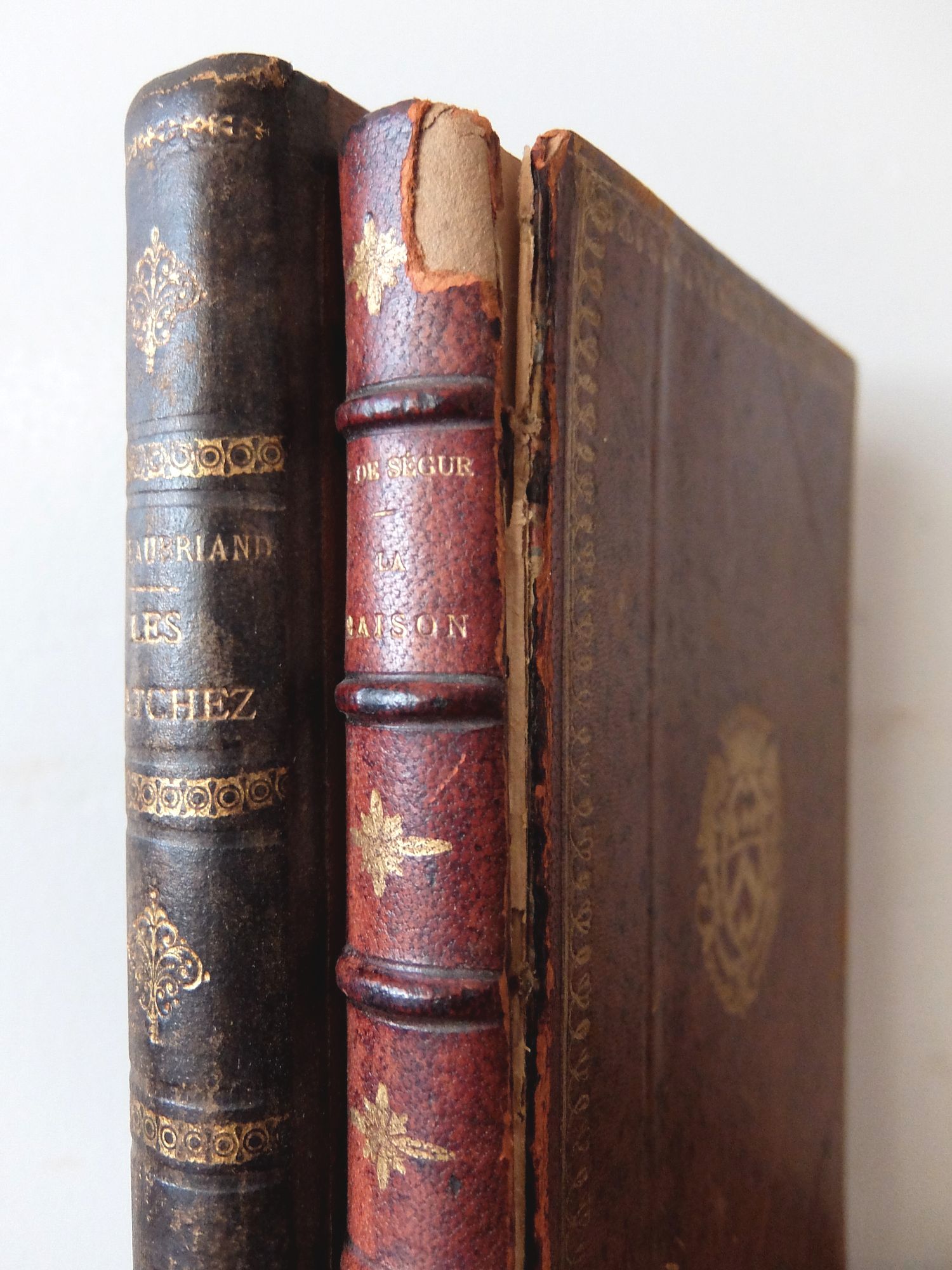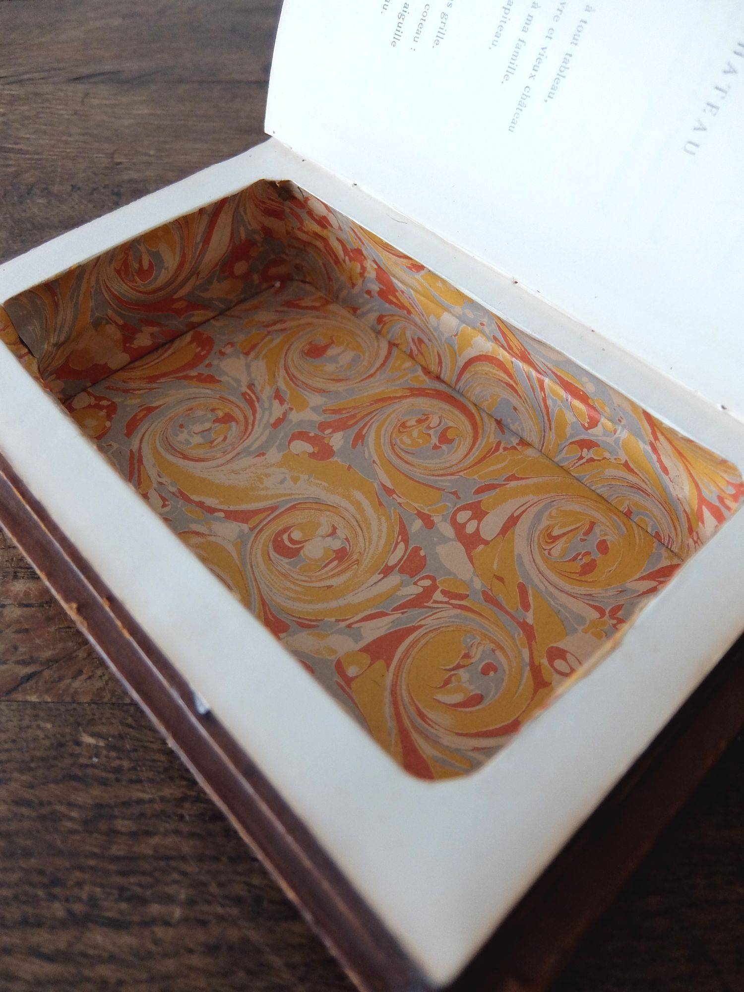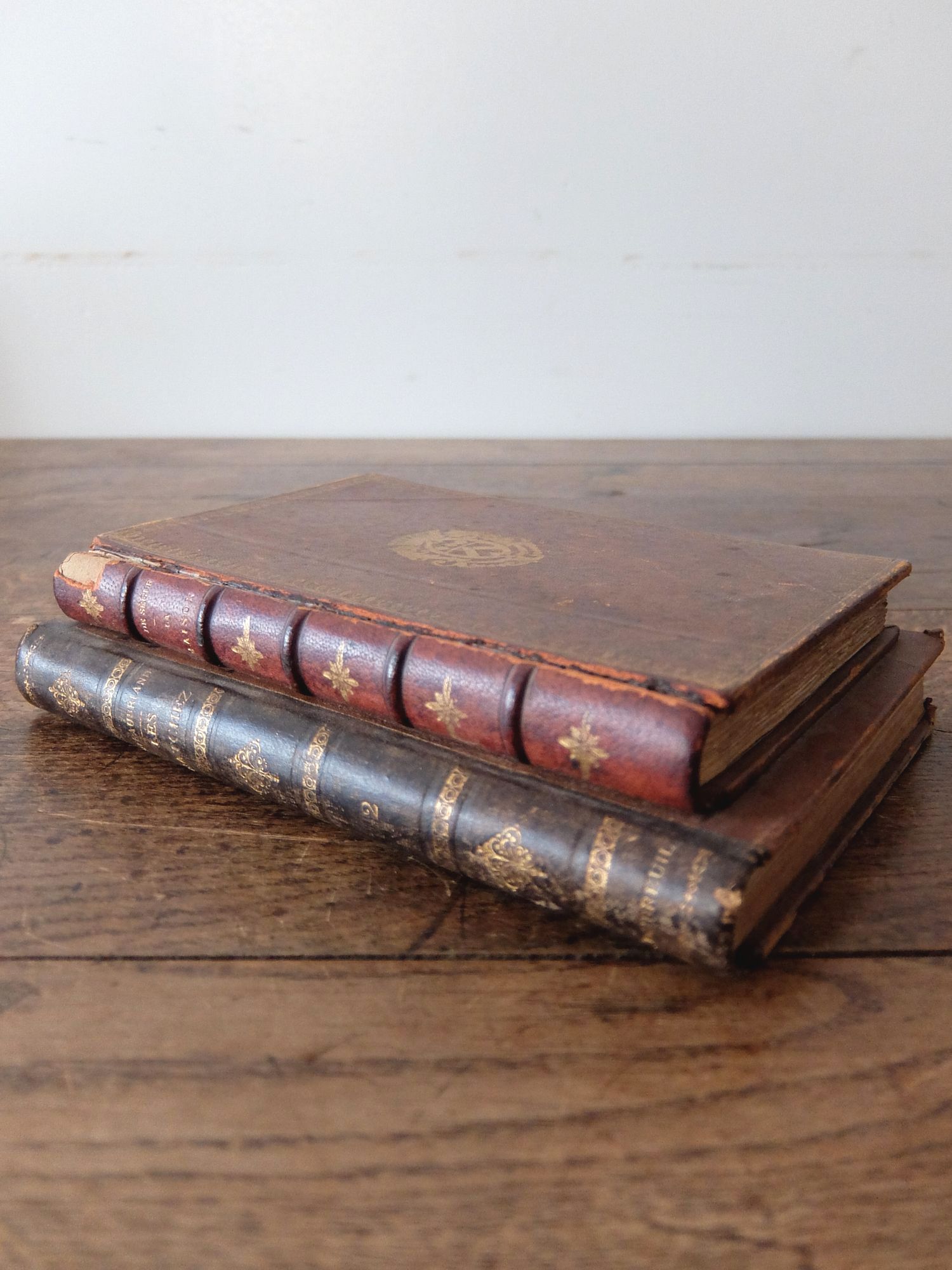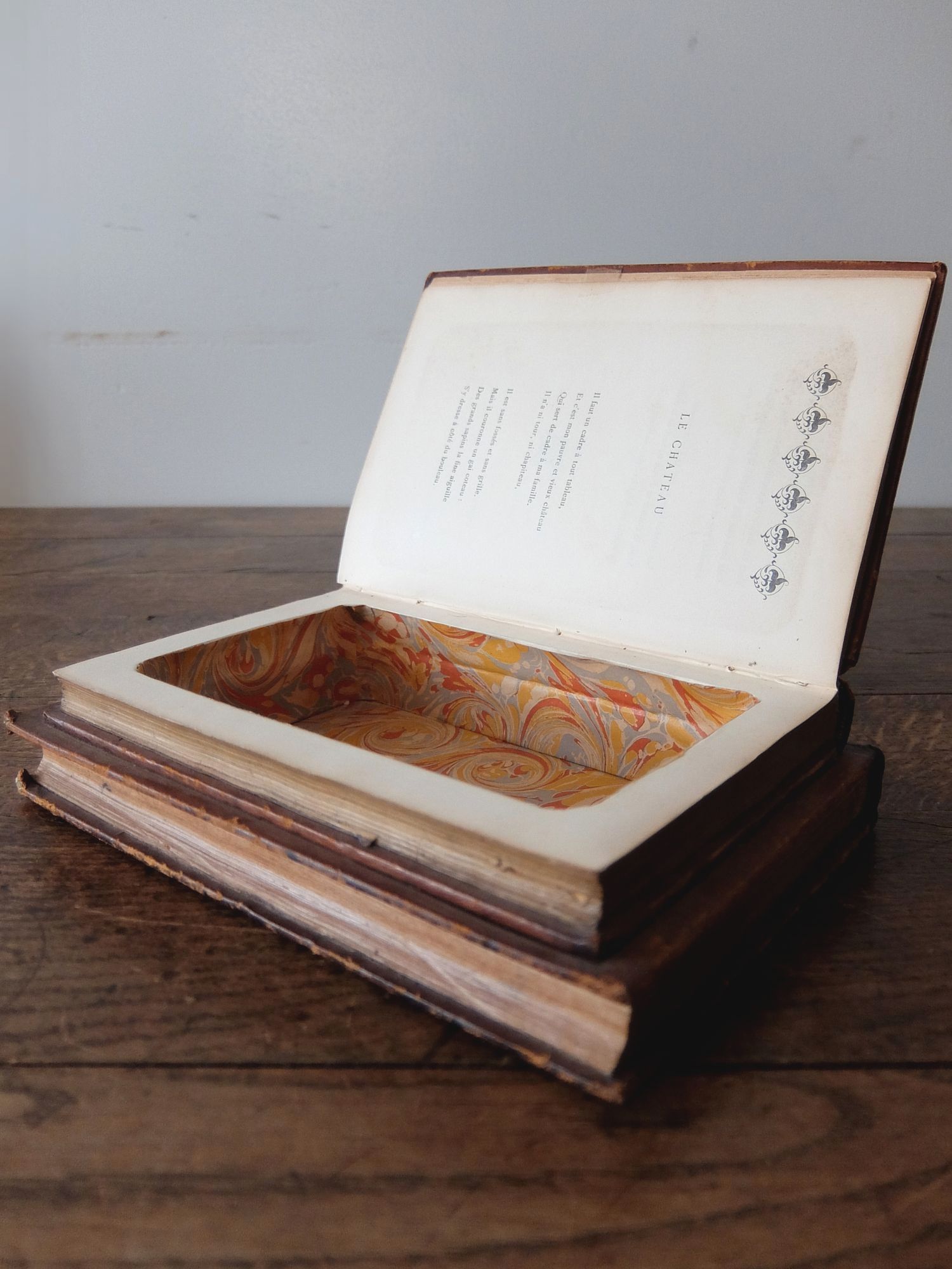 2冊の革表紙の古書を繰り抜いて作られた秘密の小物入れ