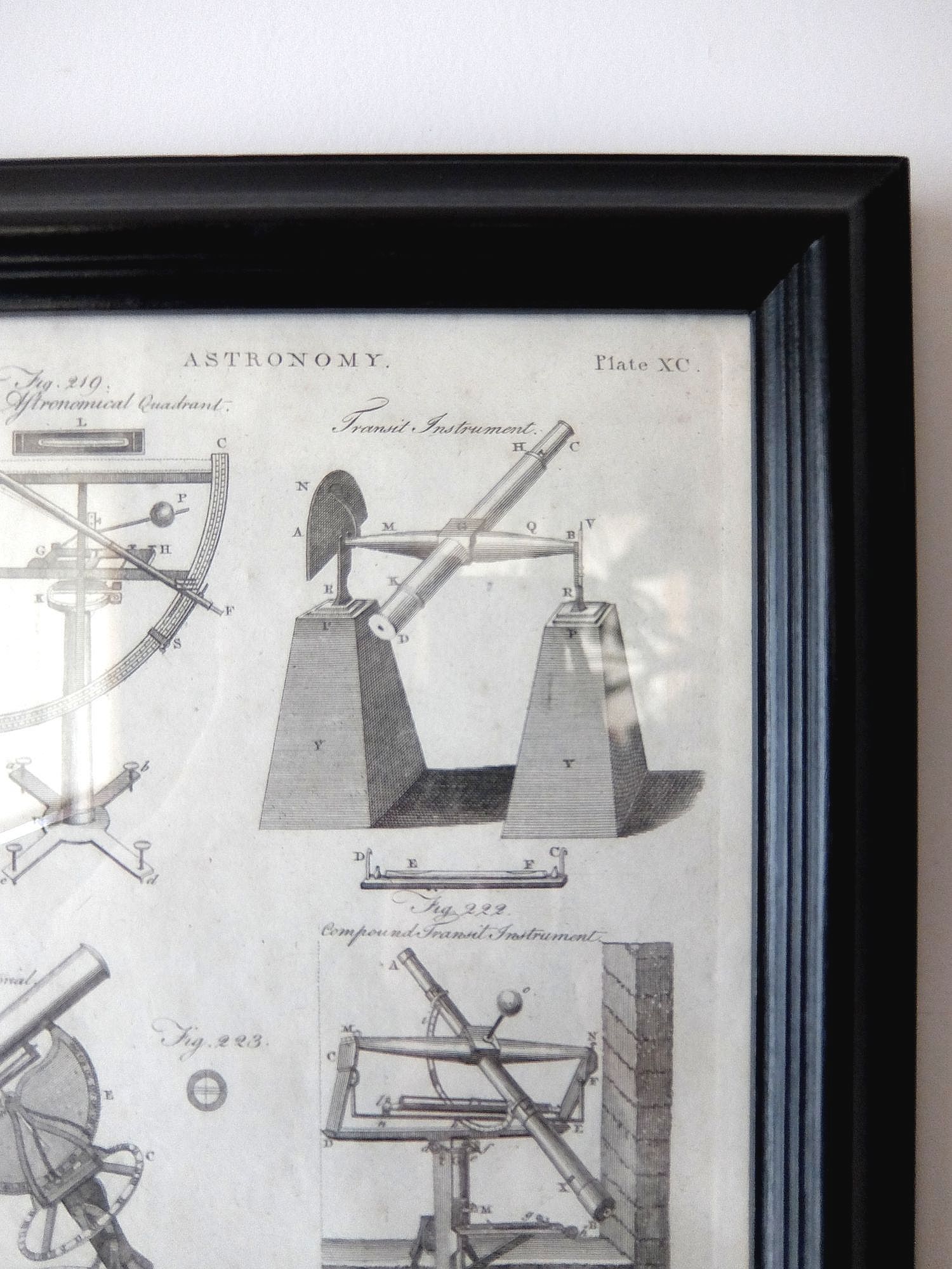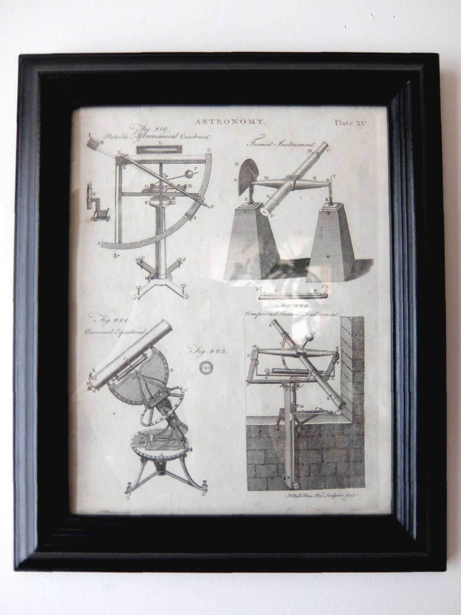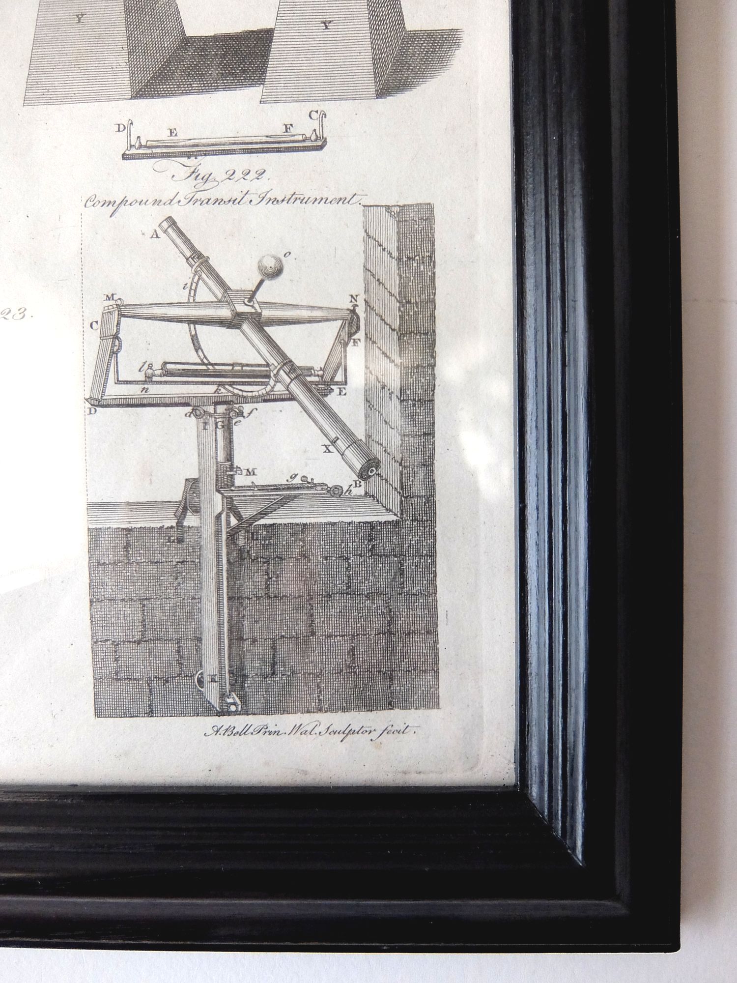 1796年に製本された【ブリタニカ天文学百科事典】より天文機器の銅版画(【Andrew Bell】作図)の額装品 (Fig219 : Portable Astronimical Quadrant・Transit Instrument, Fig221 : Universal Equatorial, Fig222 : Compound Transit Instrument)