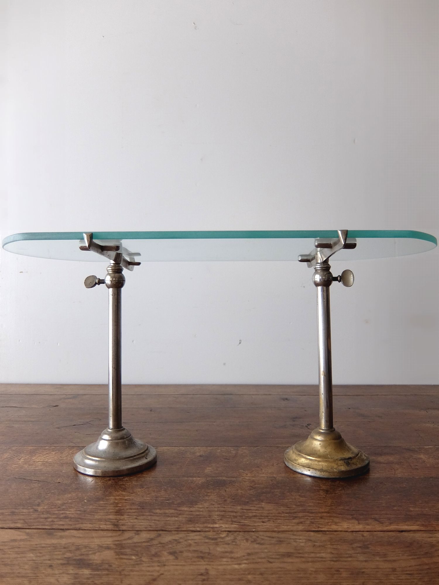 昇降可能なガラス天板のディスプレイスタンド