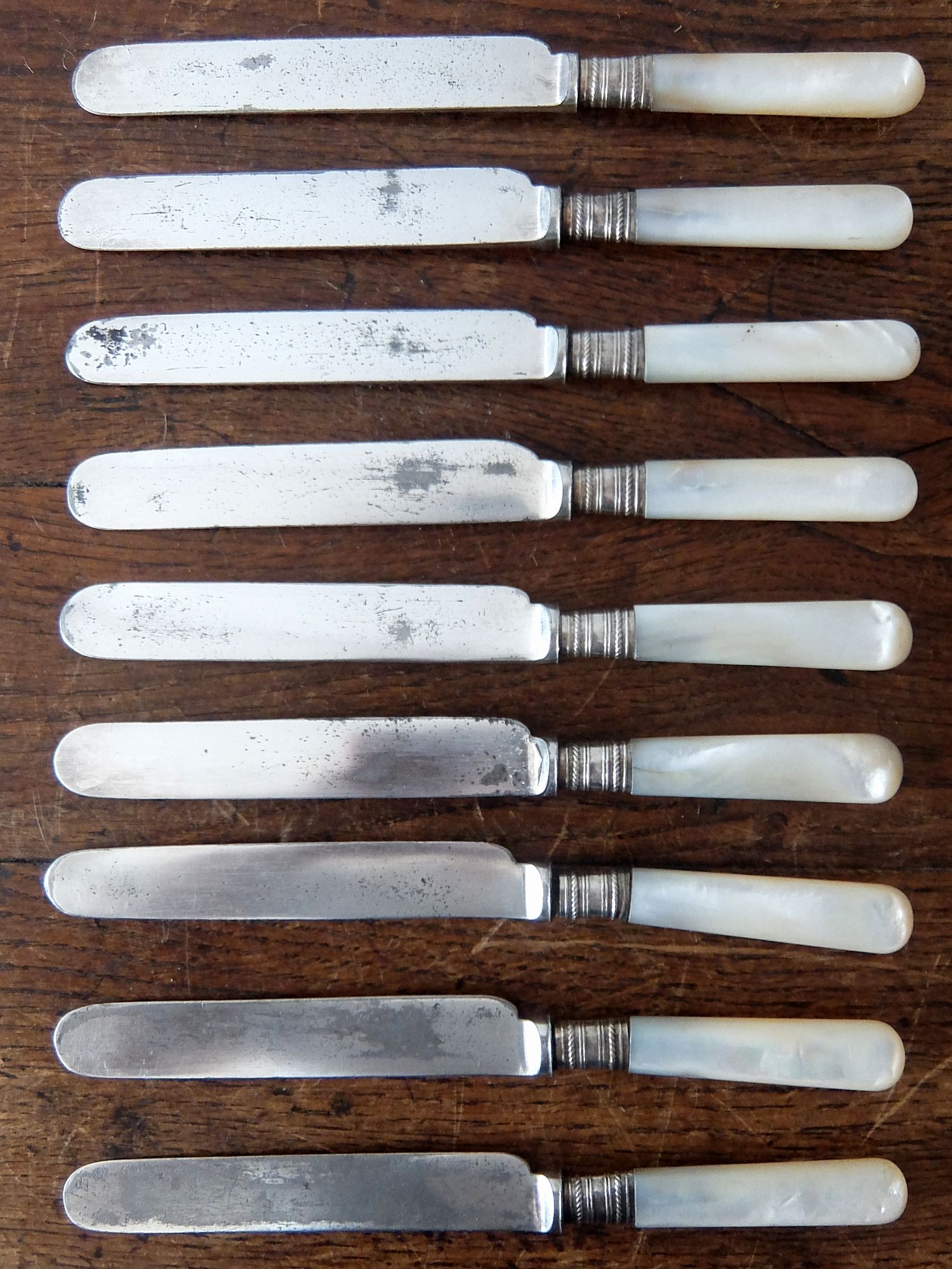 白蝶貝の持ち手が美しいシルバープレートのナイフとフォークのセット