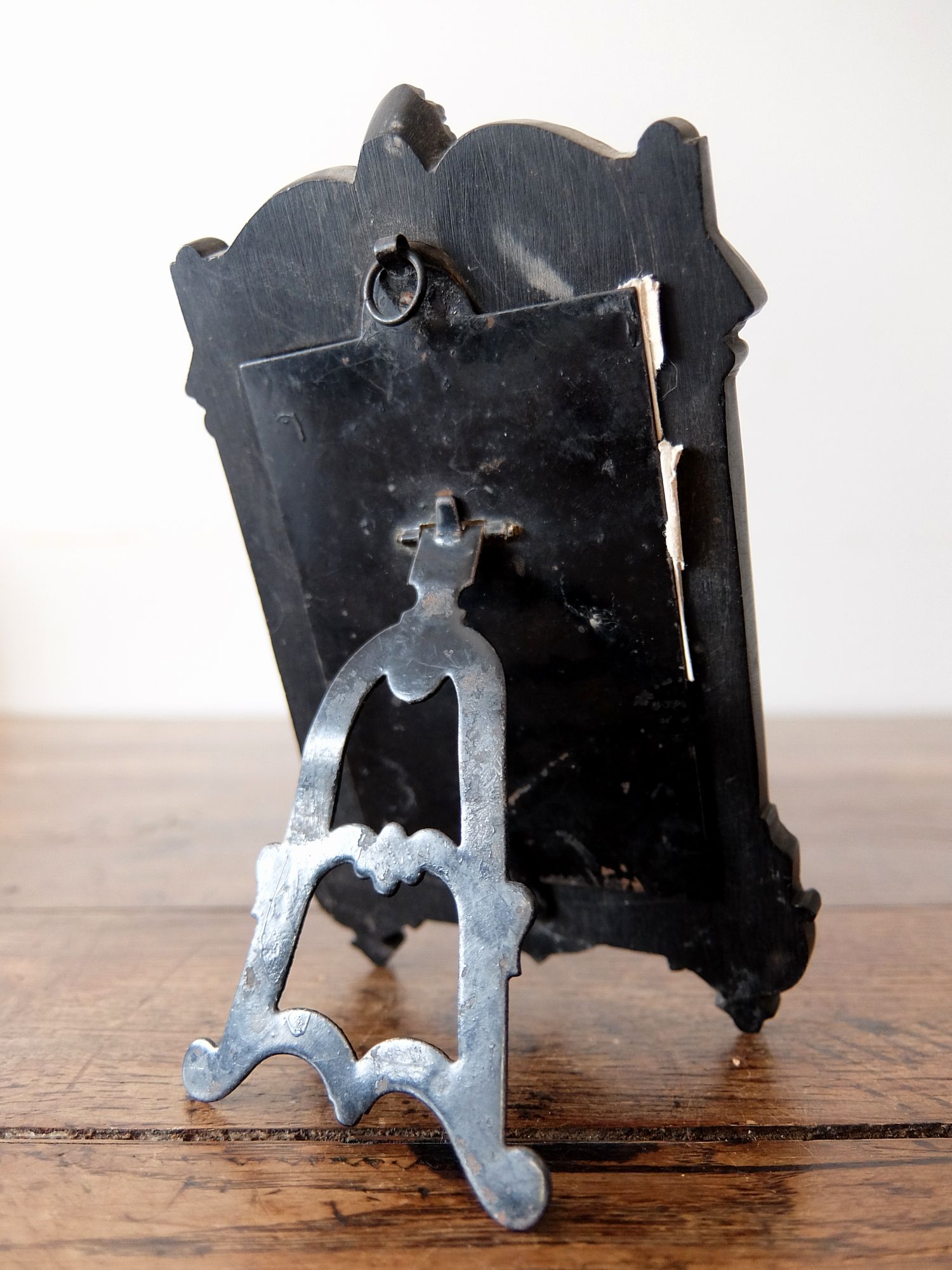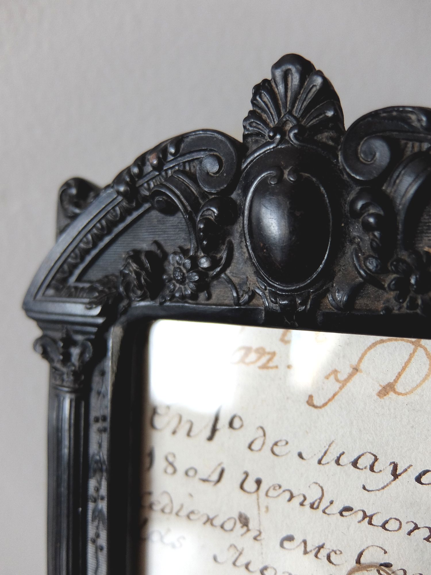 雄牛の血液と木屑を混ぜて熱圧縮した素材【Bois Durci】で作られたナポレオンⅢ世様式の写真たて(古紙・ドライフラワー入り)
