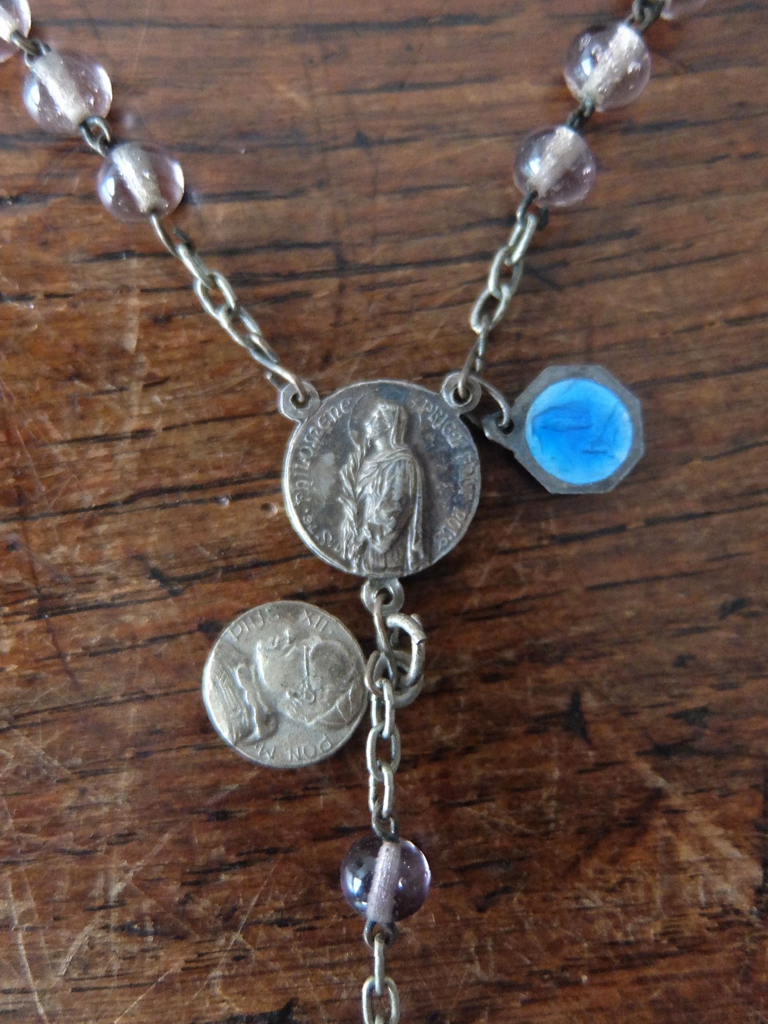 アメジスト色のビーズが美しいメダイ (チェーン長:530mm) ※ケース付き