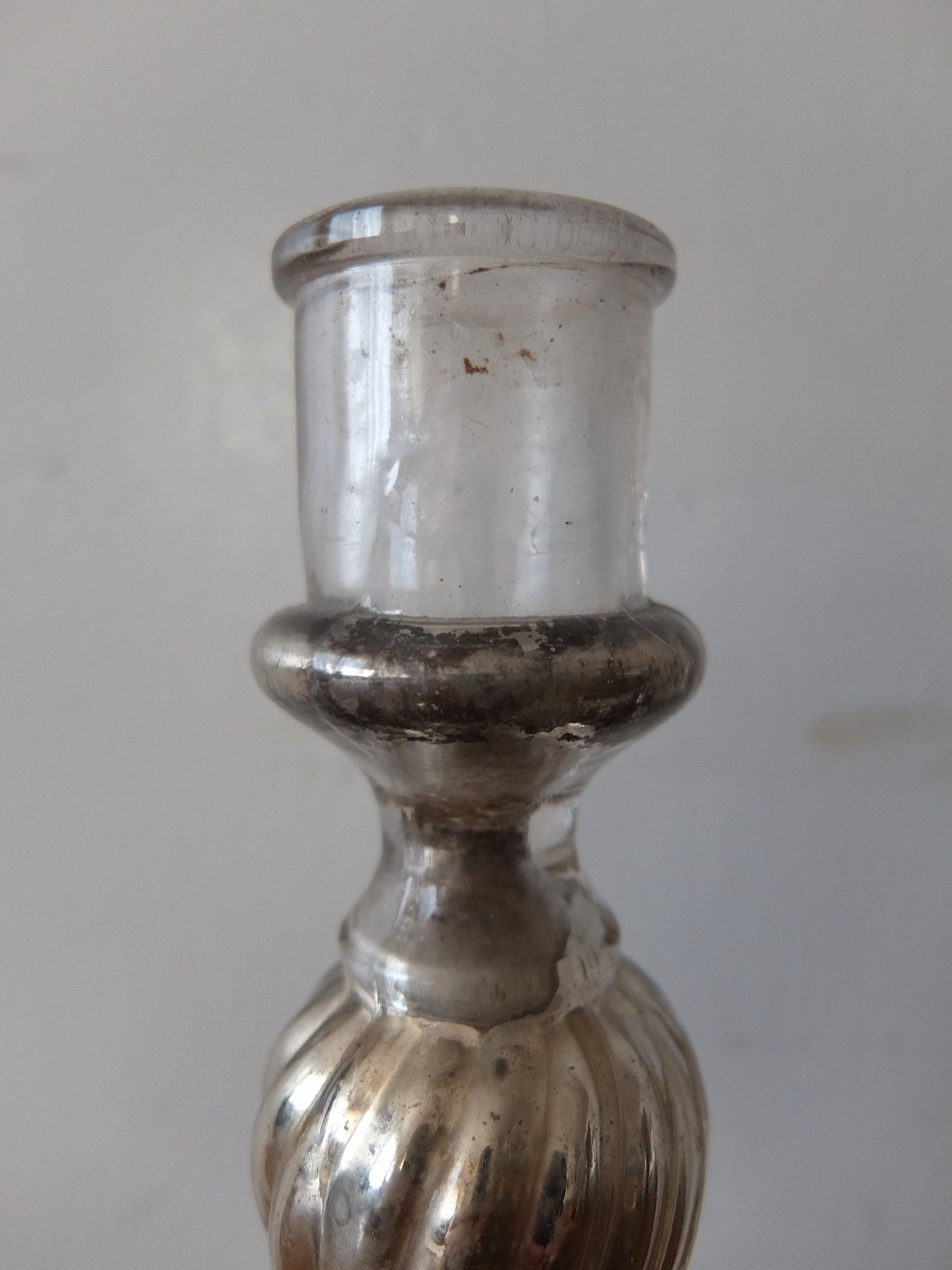 ガラスの内側に水銀を施した中空のキャンドルスタンド