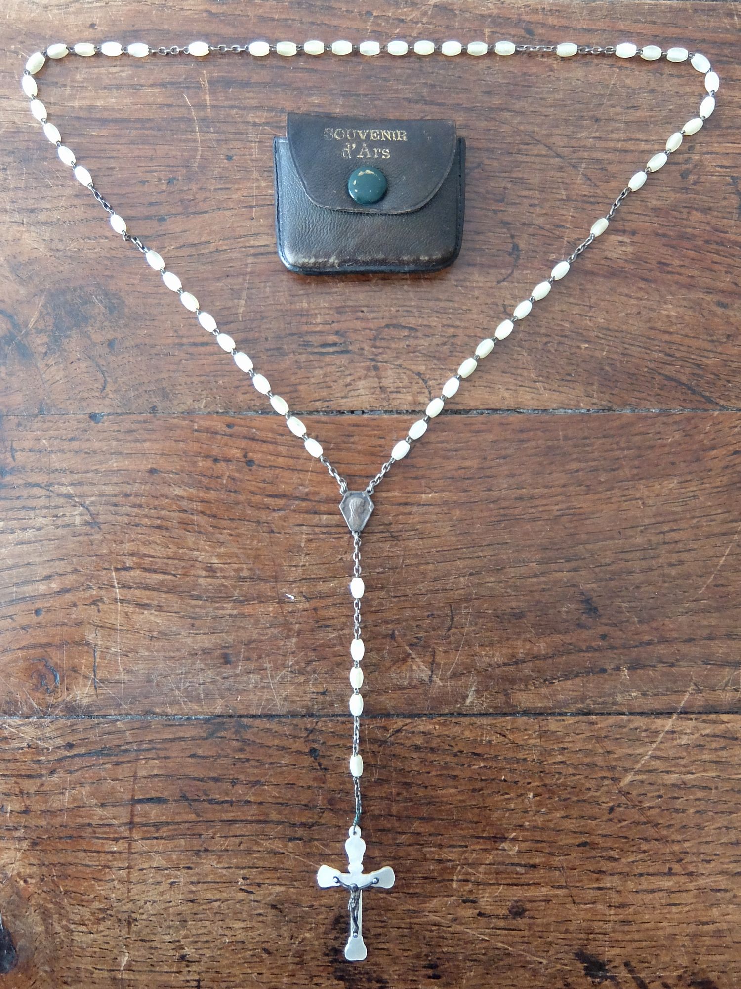 経年の雰囲気が美しい白蝶貝のビーズのロザリオ (チェーン長:520mm) ※ケース付き