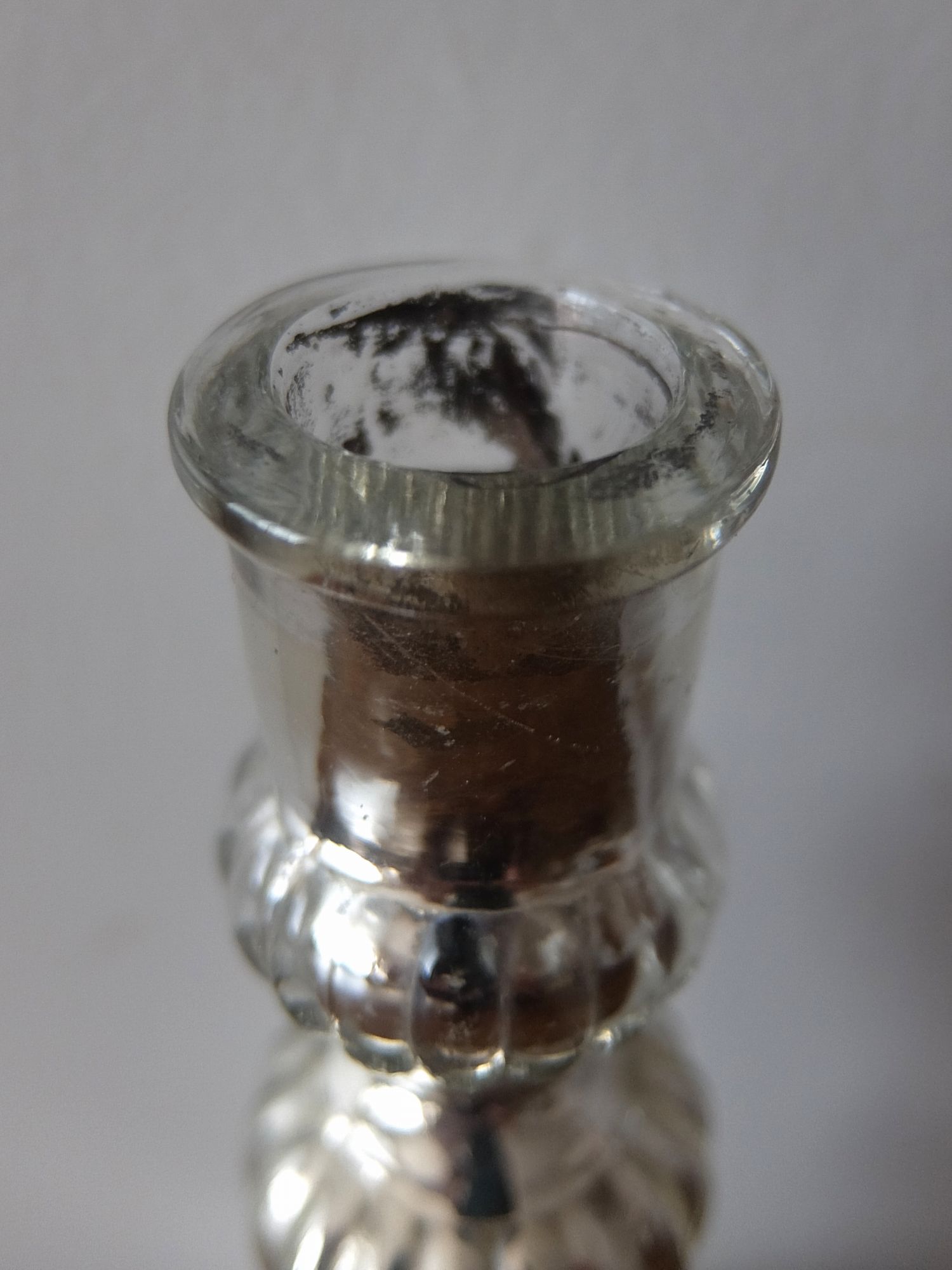 ガラスの内側に水銀を施した中空のキャンドルスタンド