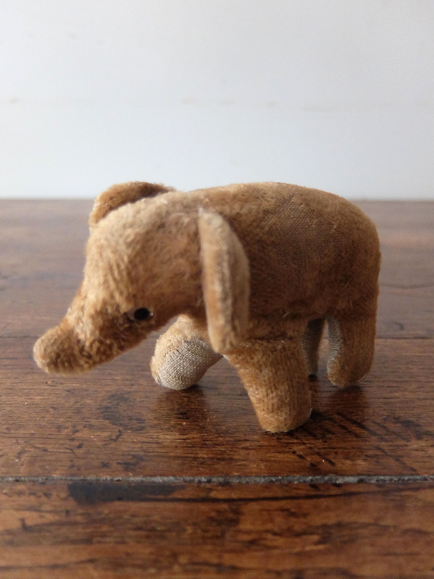 つぶらな瞳が可愛らしい藁が詰まった小さなゾウのぬいぐるみ