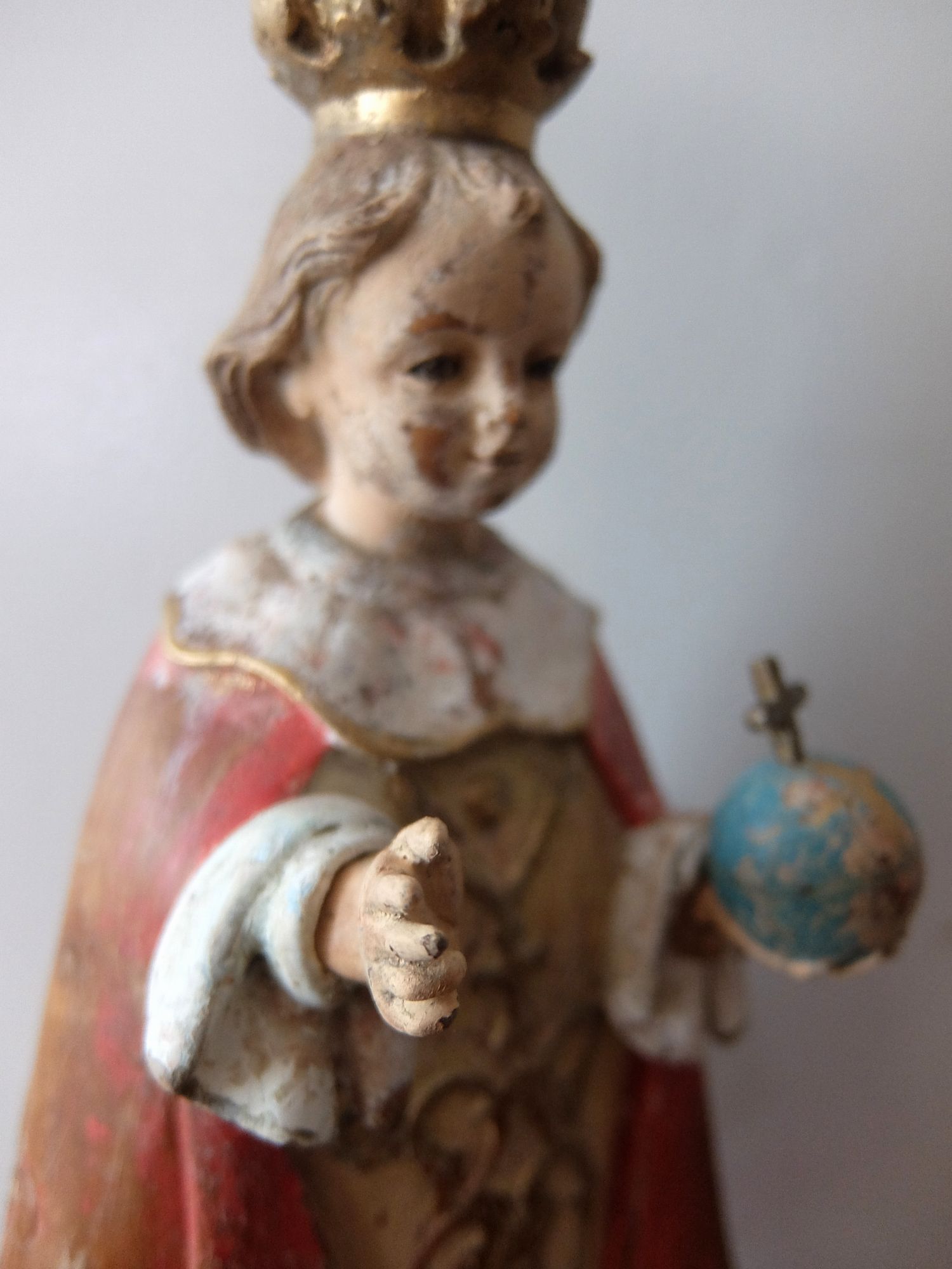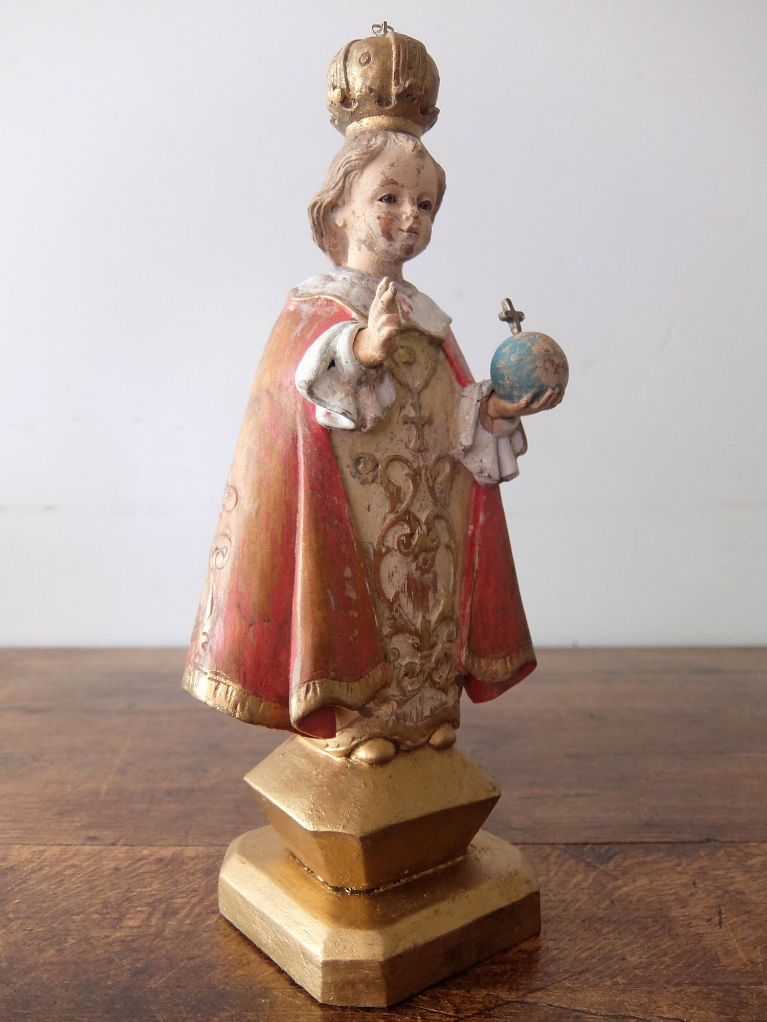 木製の朽ちた塗装の風合いが美しいグラスアイズの【Bambini・di・Praga(バンビーニ・ディ・プラガ):プラハの幼子イエス像】