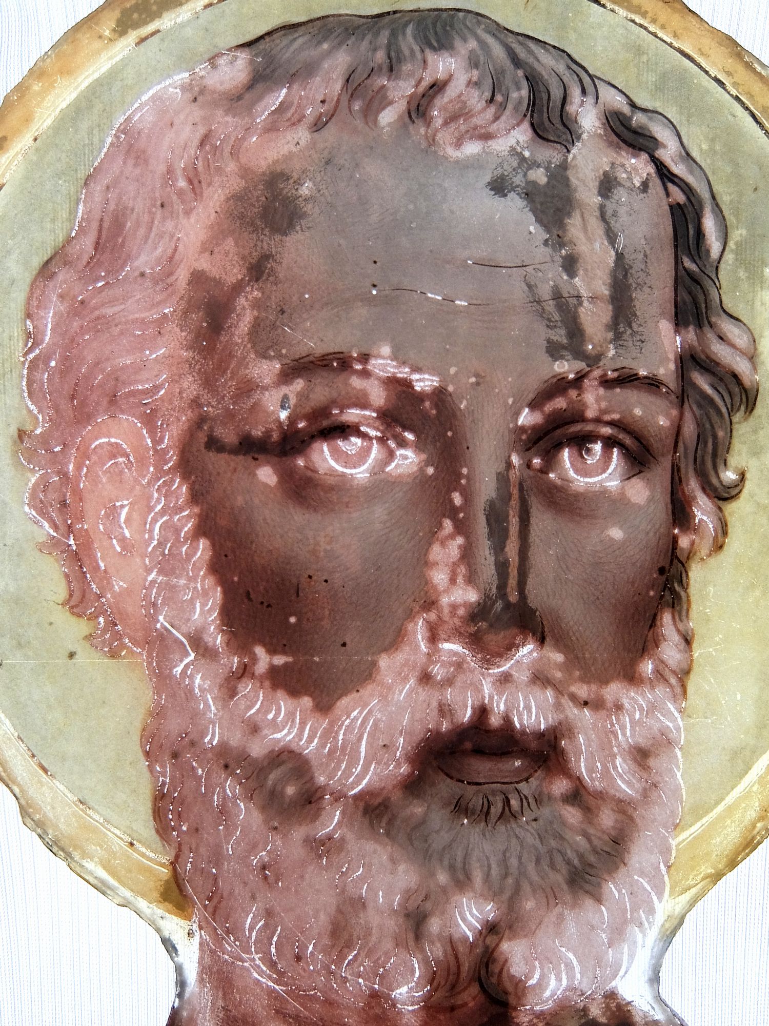 教会で使用されていた美しい手彩色のステンドグラス(聖ヨゼフと聖母マリア)