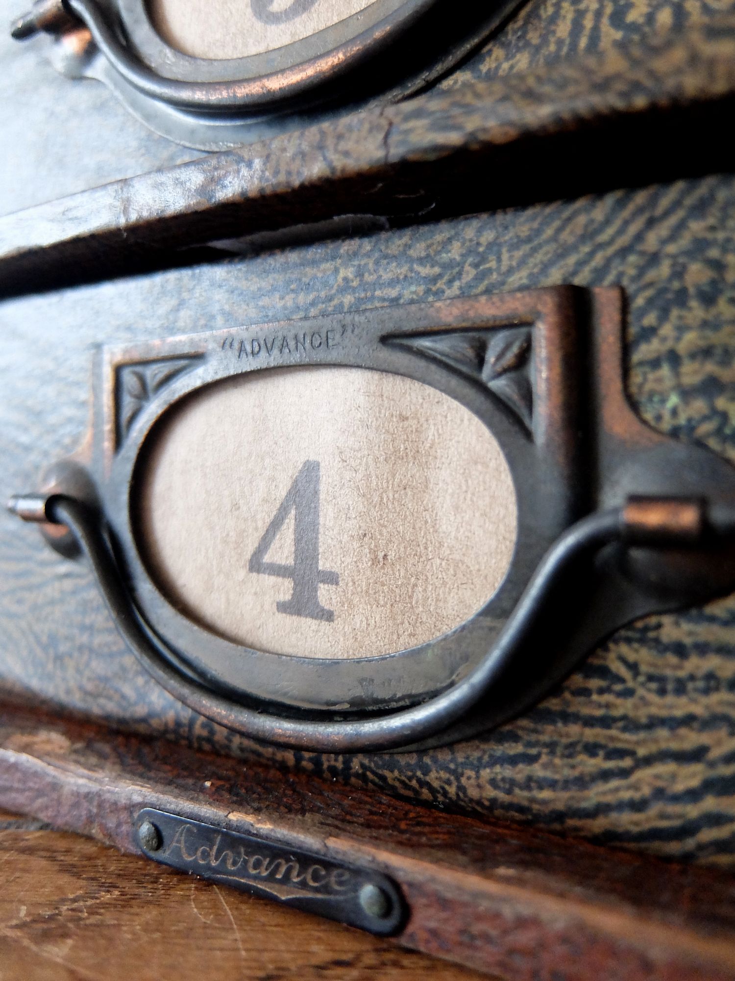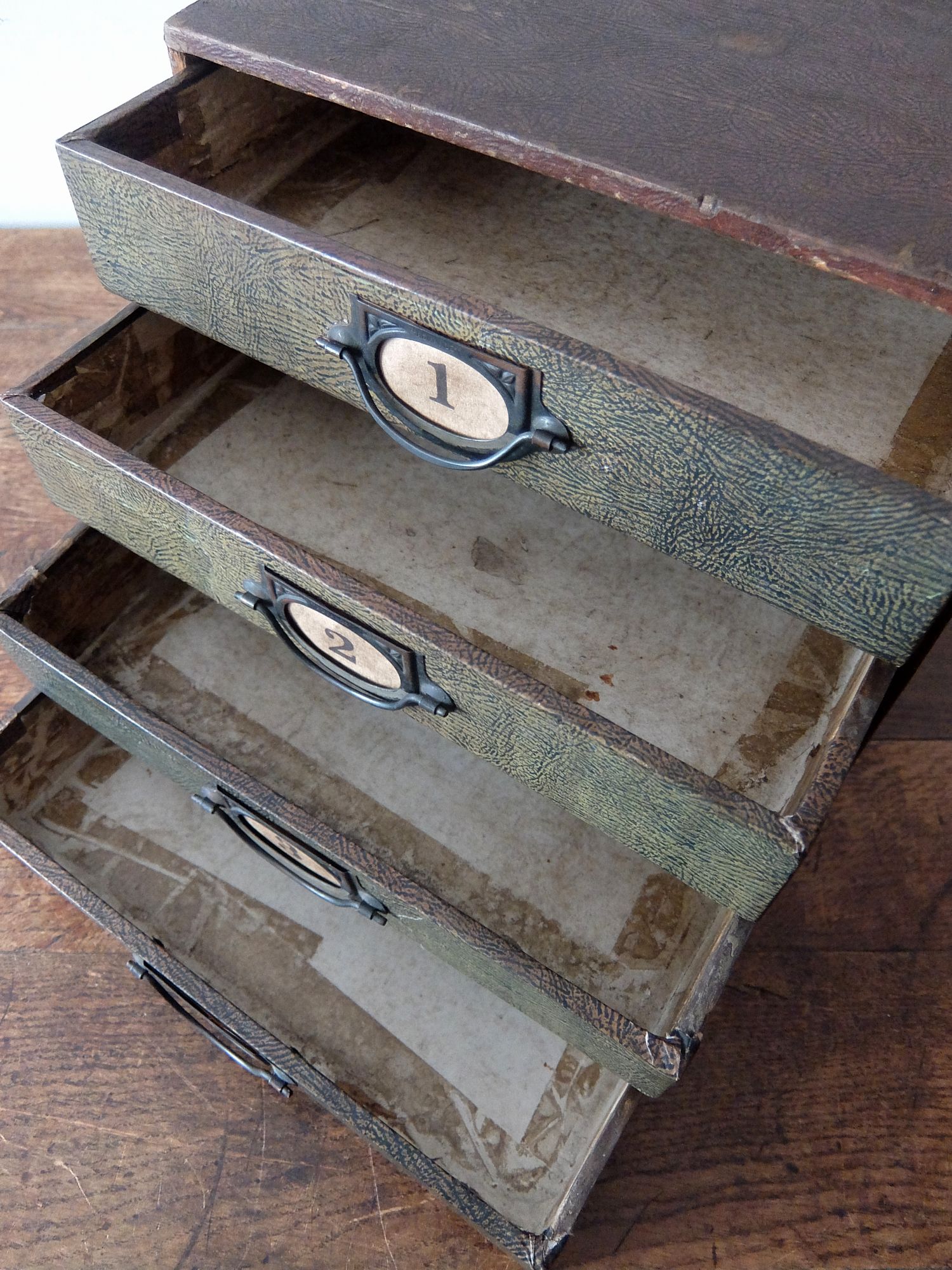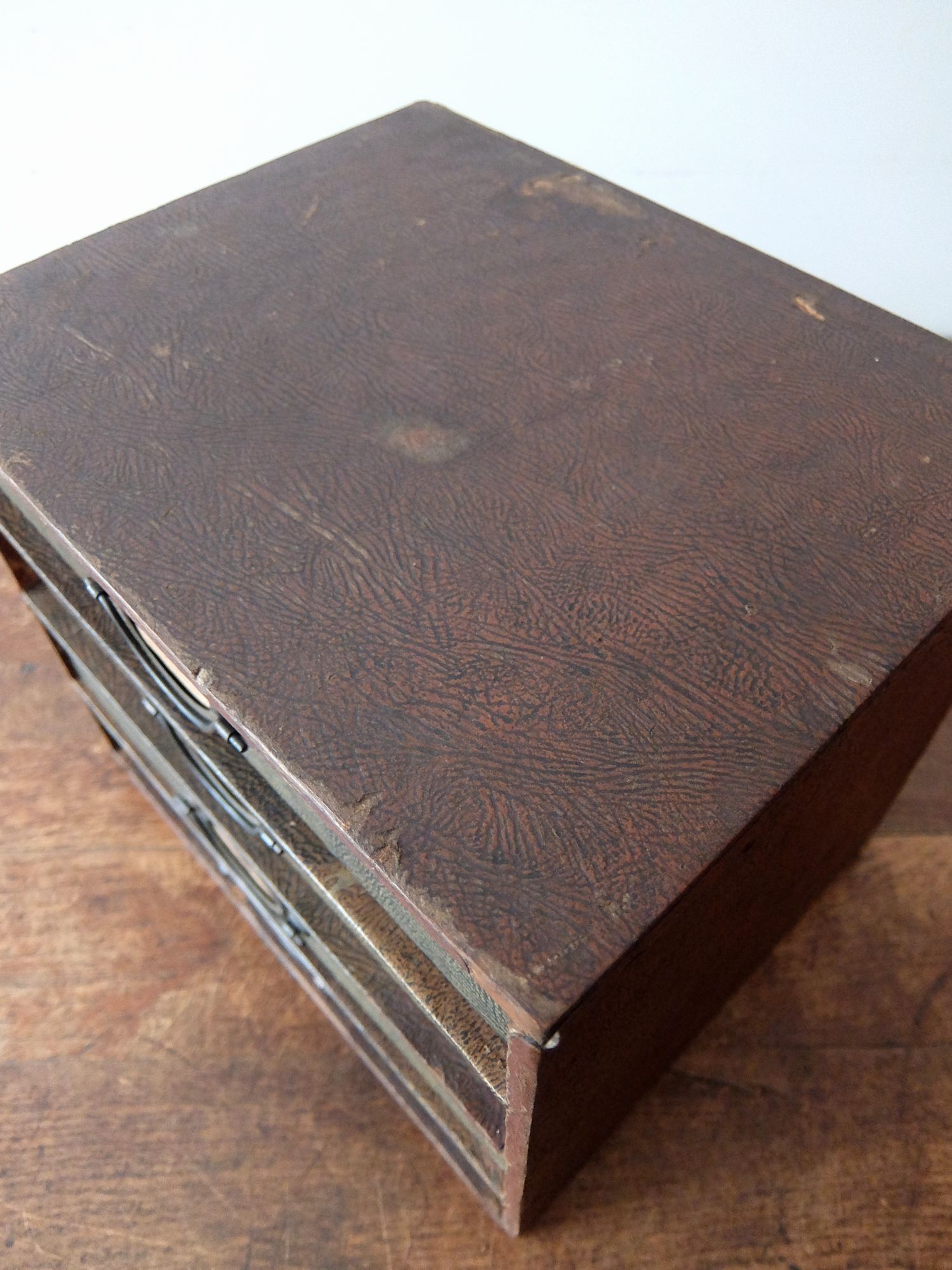 木製の土台に雰囲気のある紙を巻いて作られたファイルケース