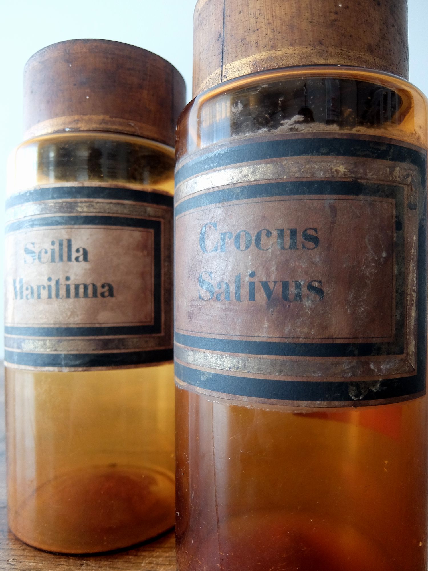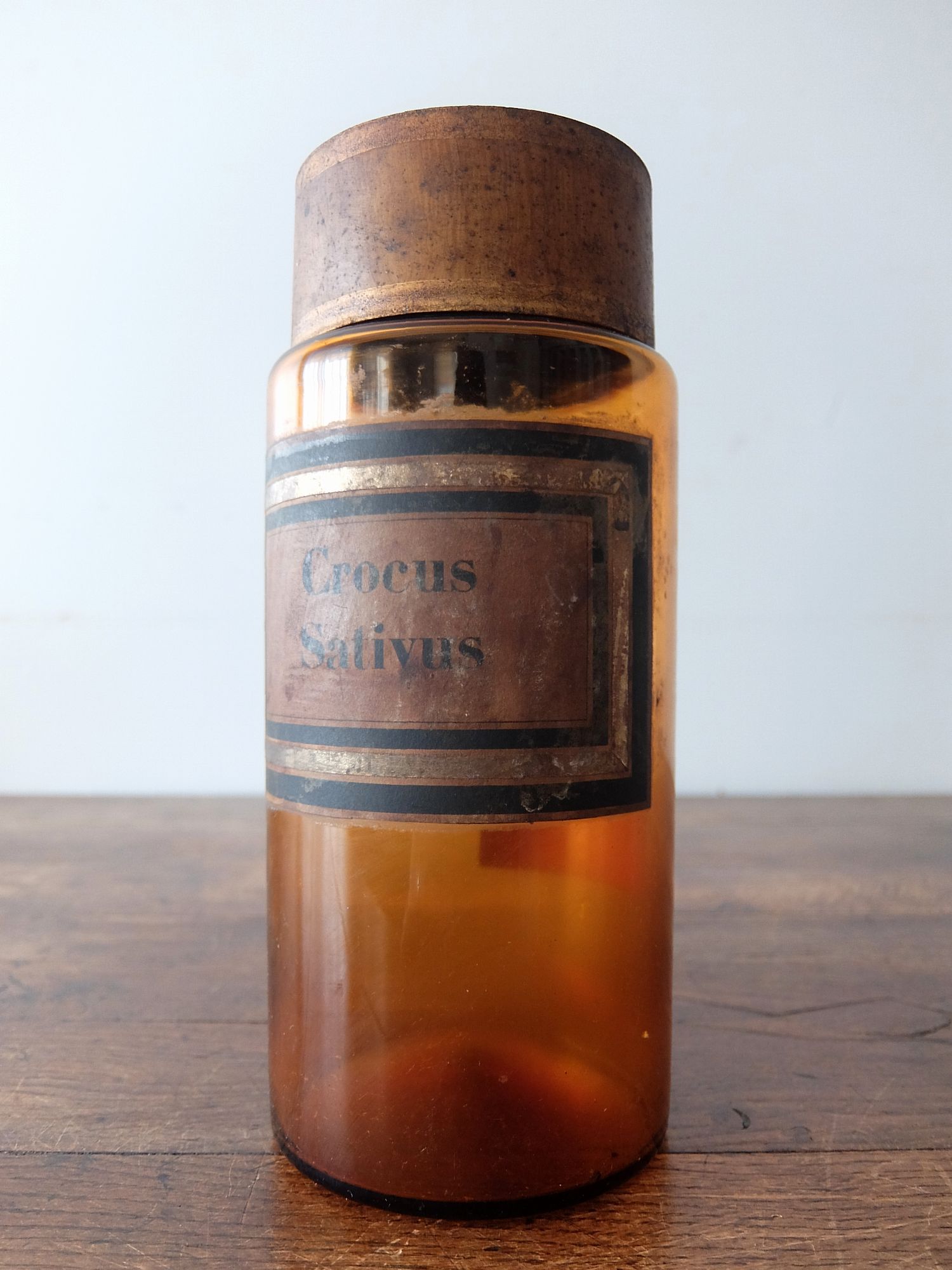 経年を感じさせる蓋とラベルがついた薬瓶