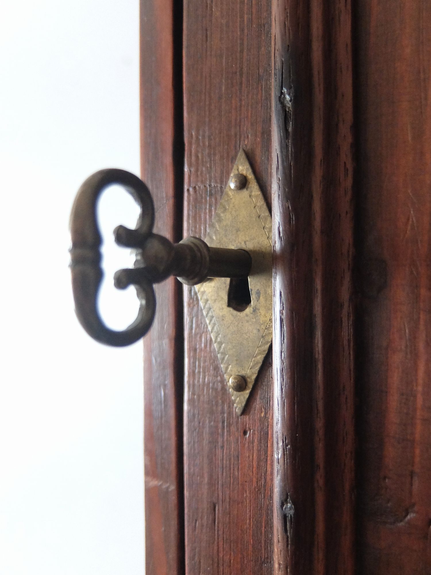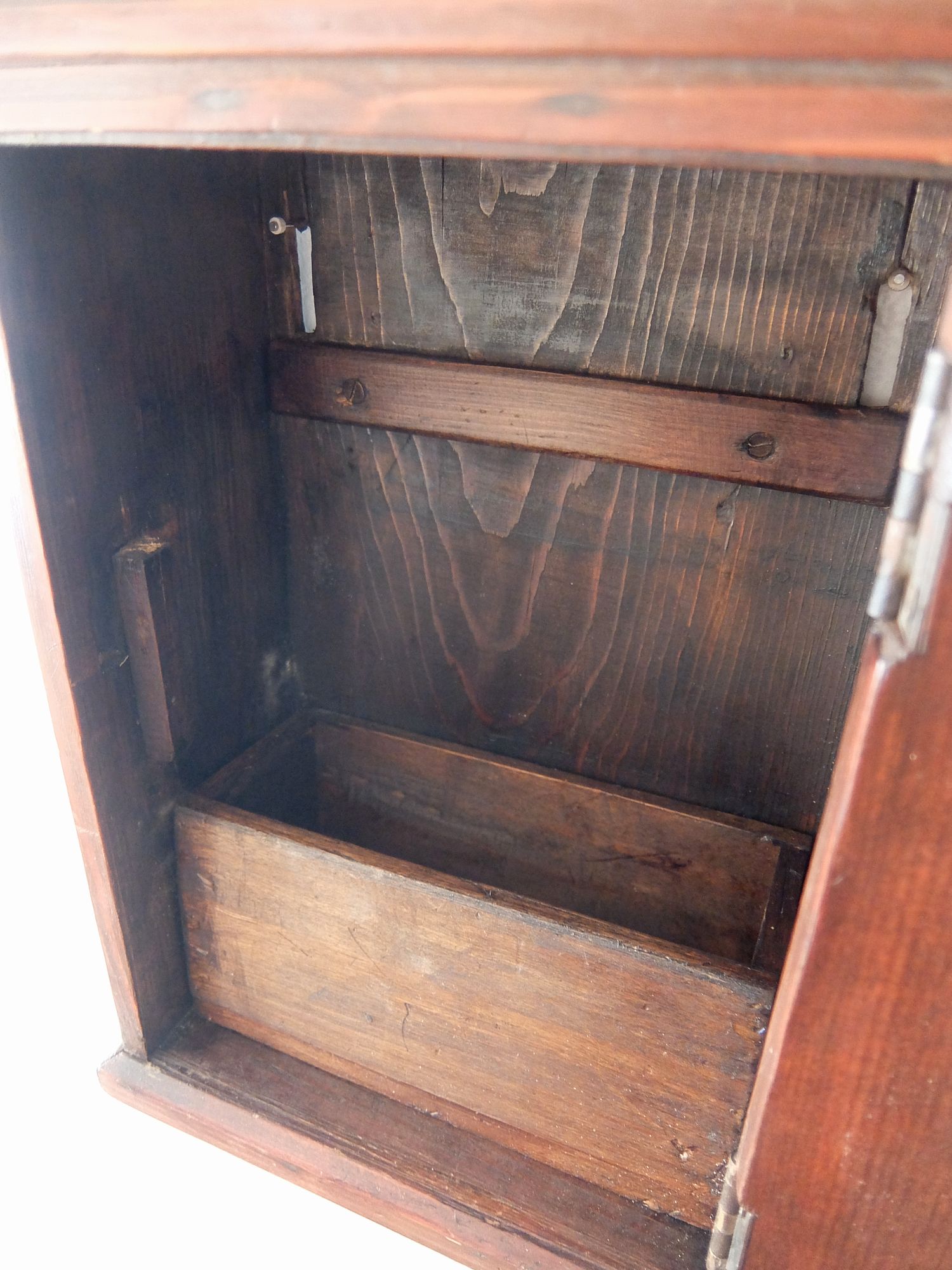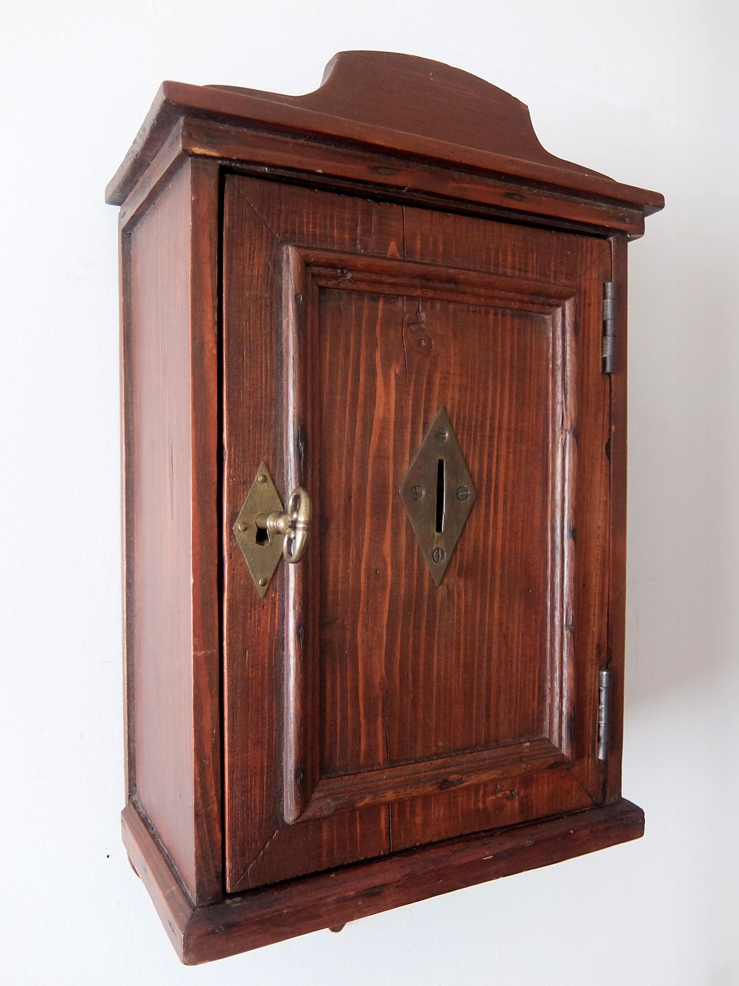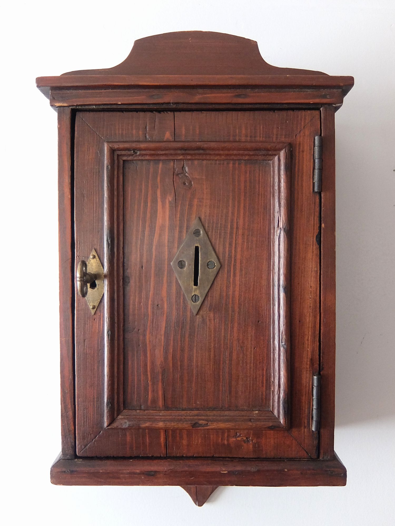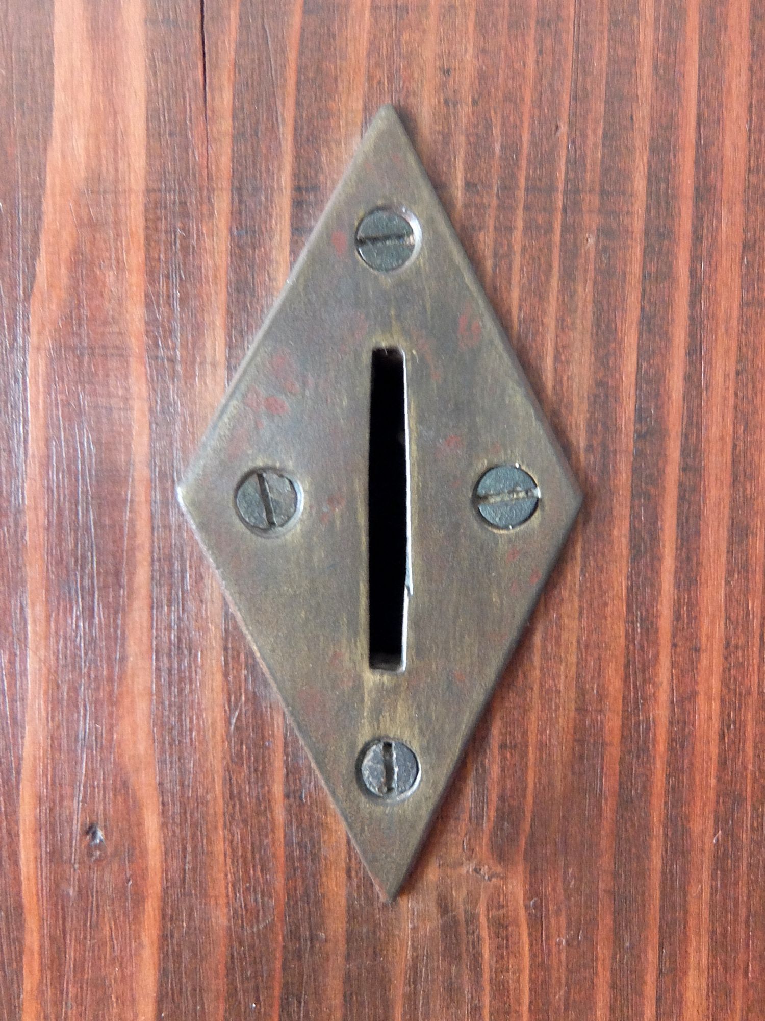 ピッチパイン材で作られた教会の壁付け募金箱(カギ付)