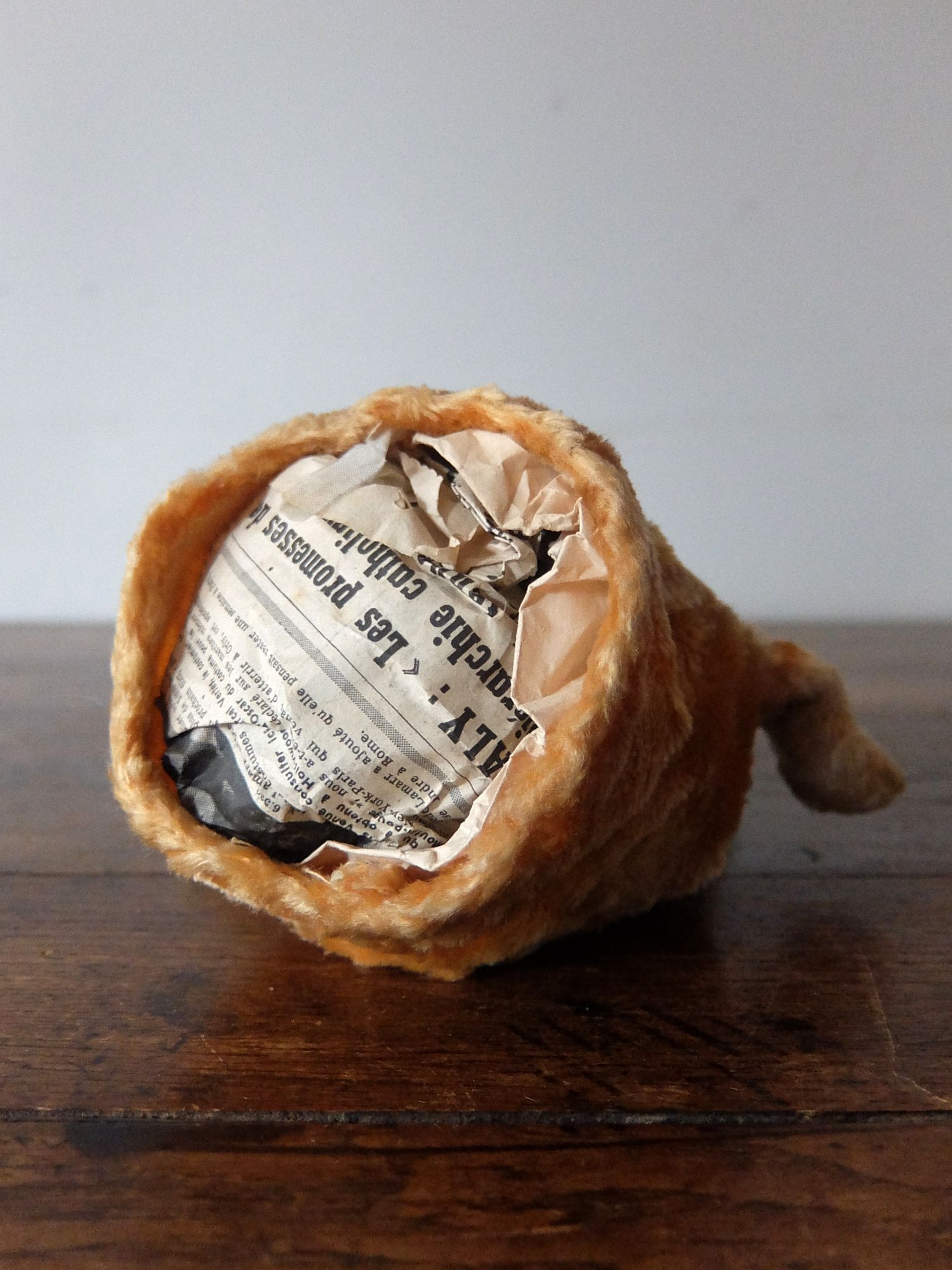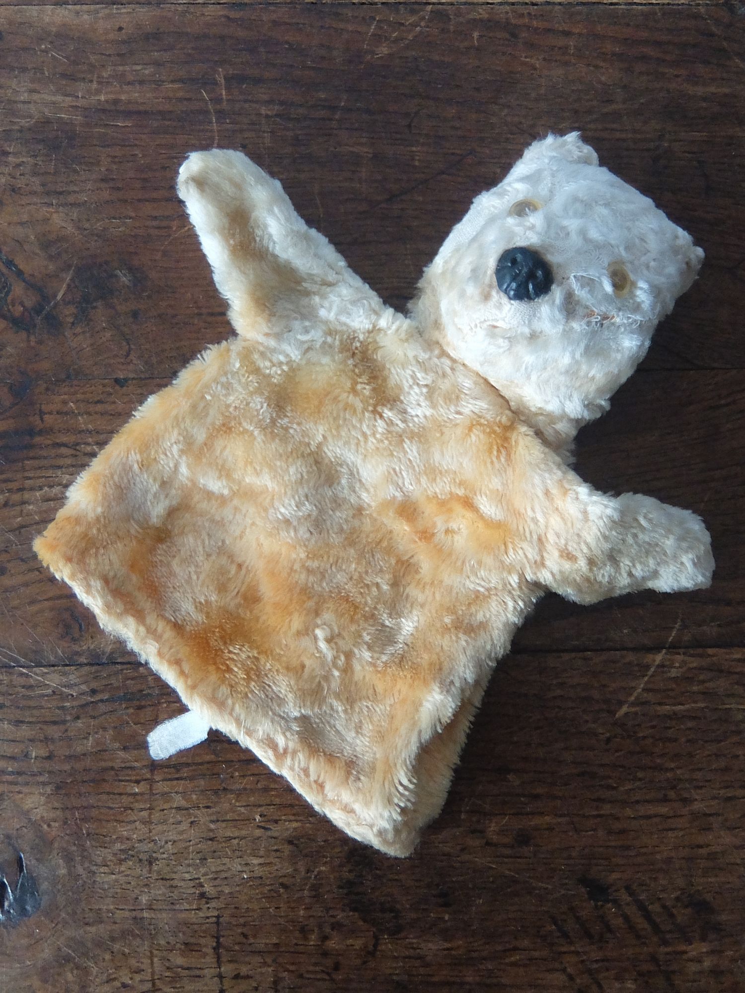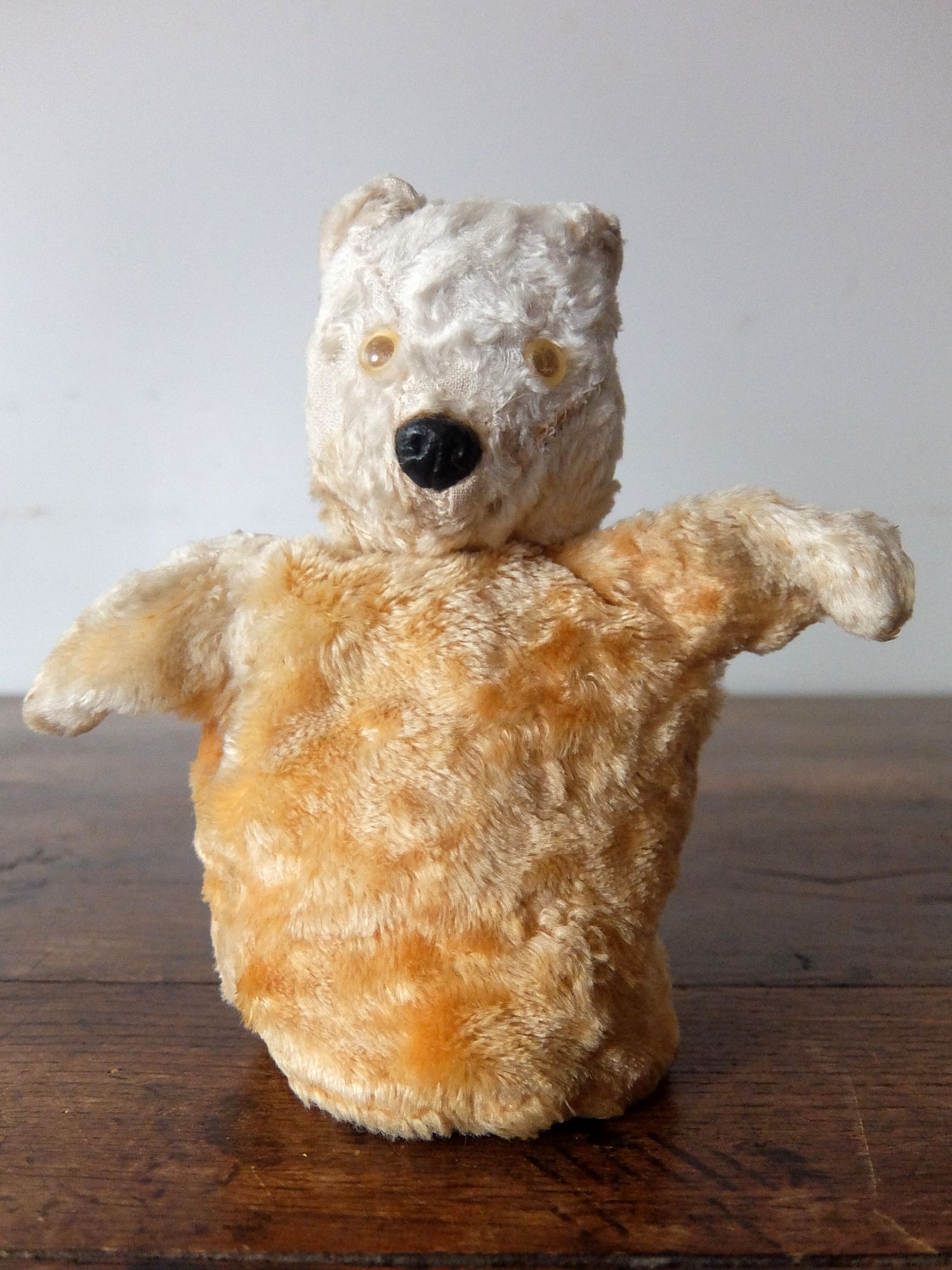 頭部に藁が詰まったテディベアの指人形(パペット)