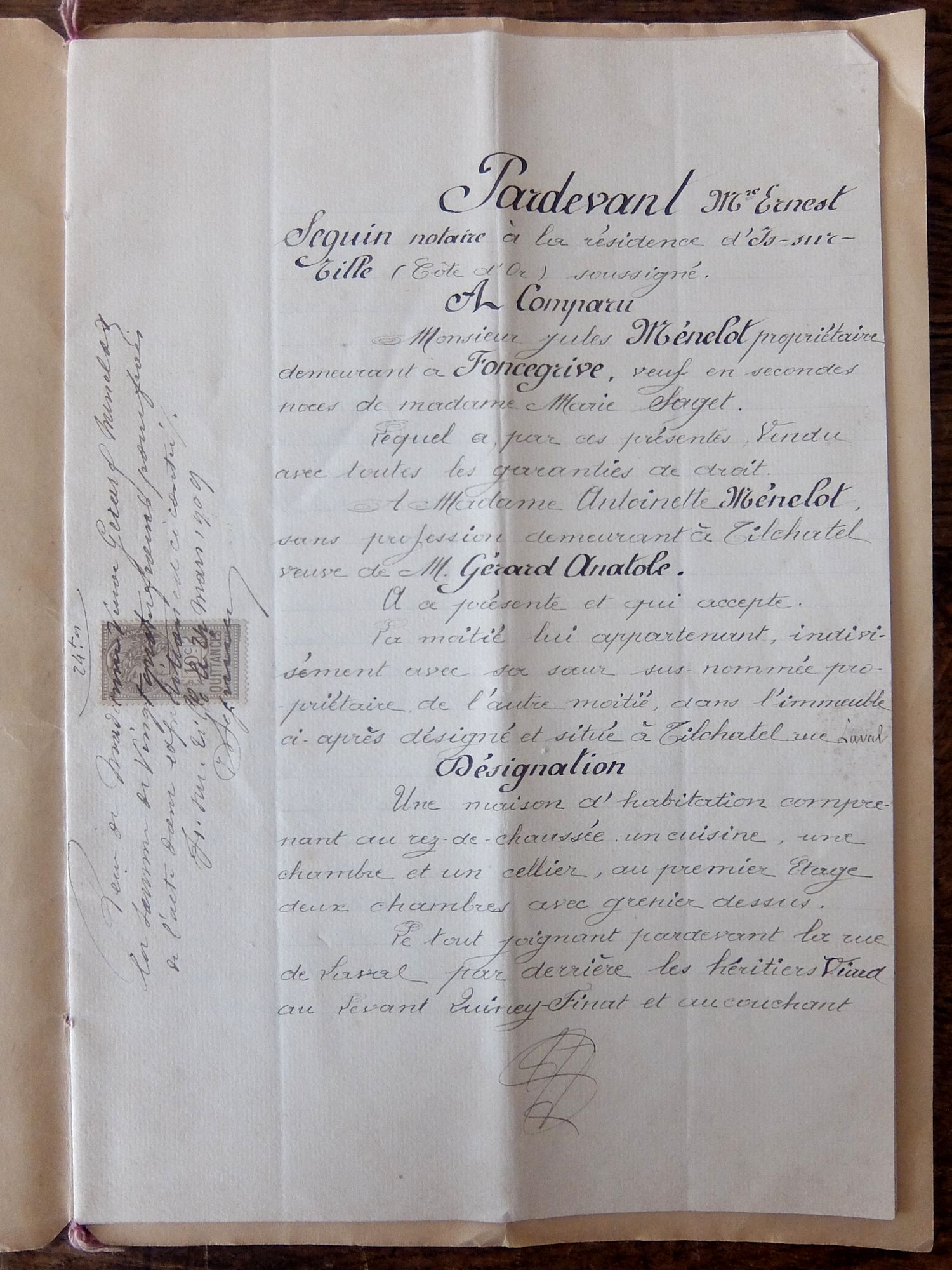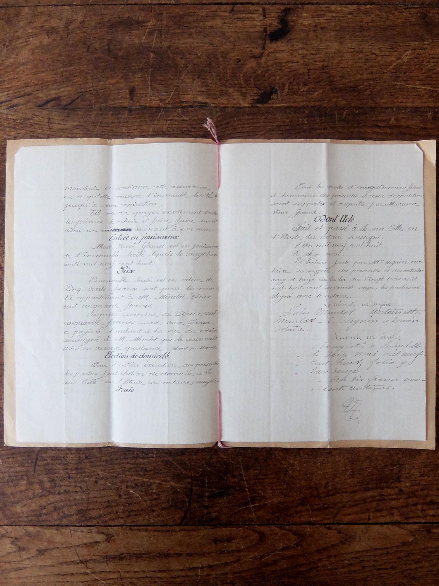 1900年代初期に記されたフランス語の手紙の綴り (表装と古紙8頁)
