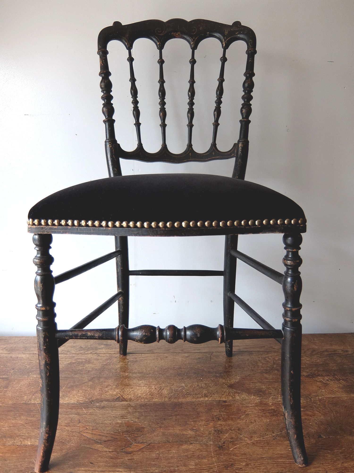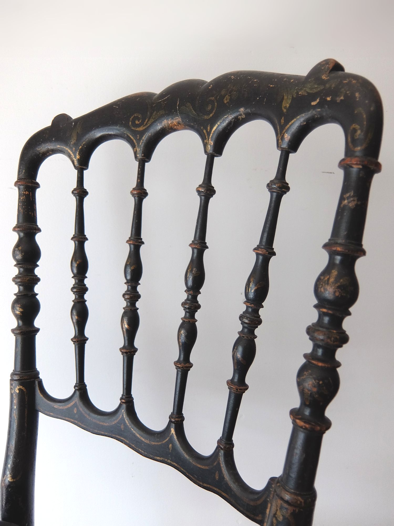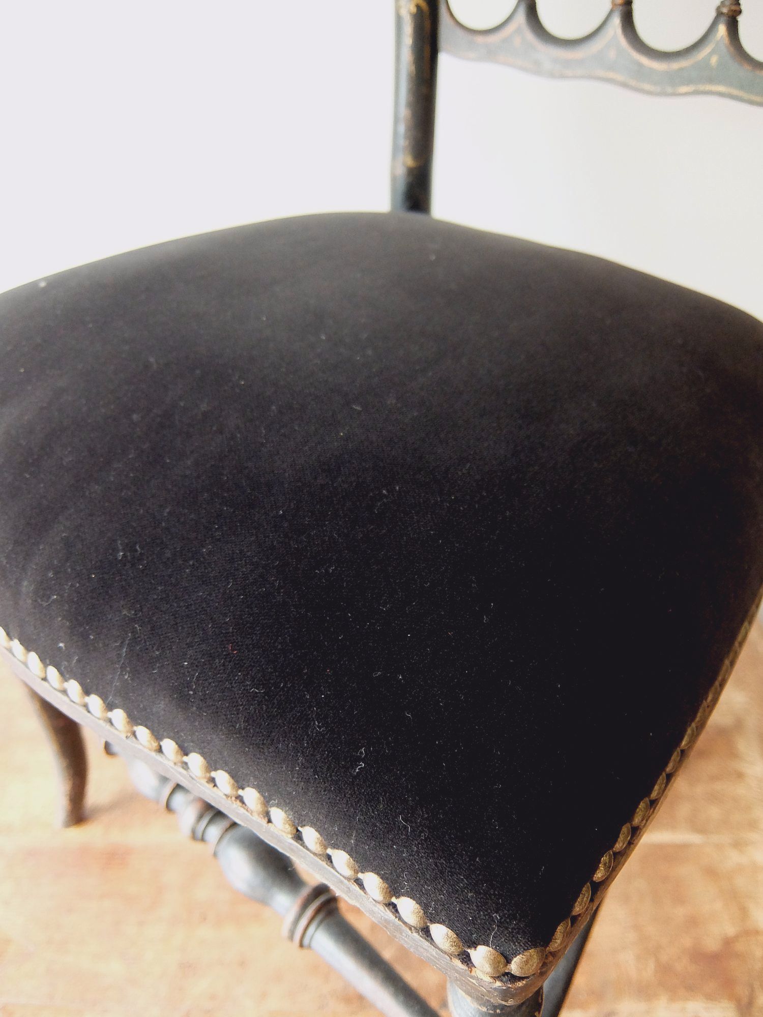 背もたれの意匠と黒と金の塗装が美しいナポレオンⅢ世様式のチェアー