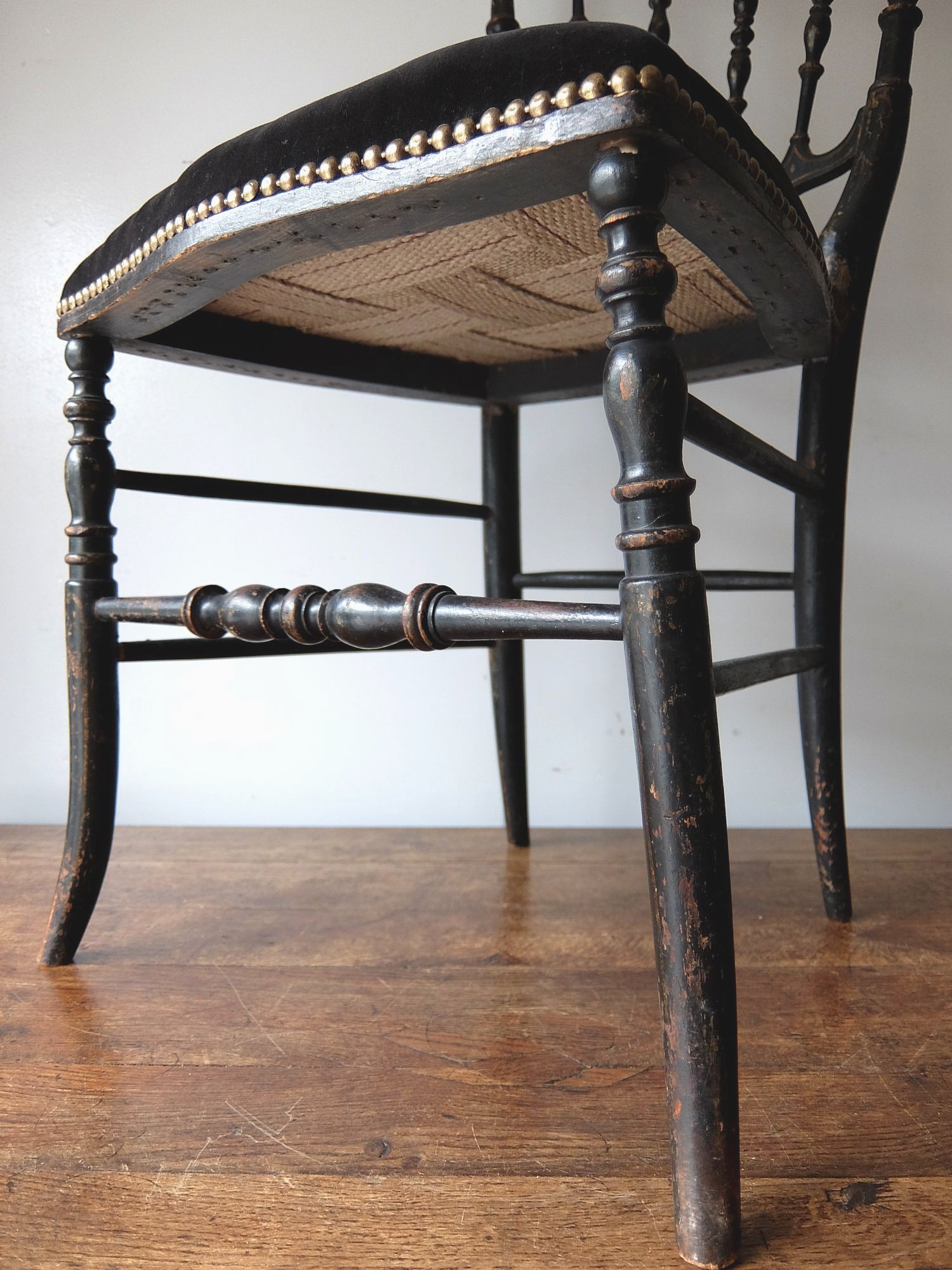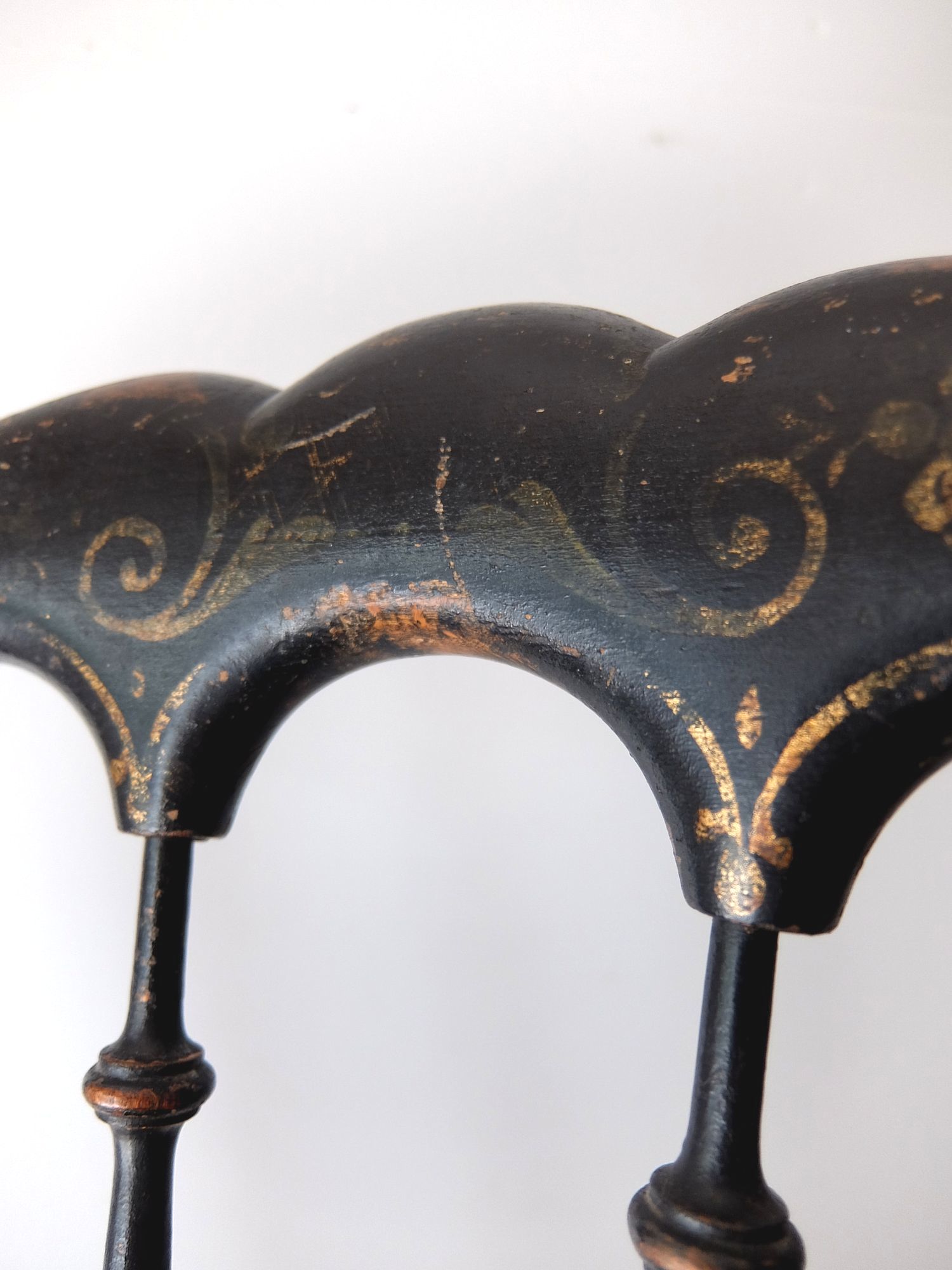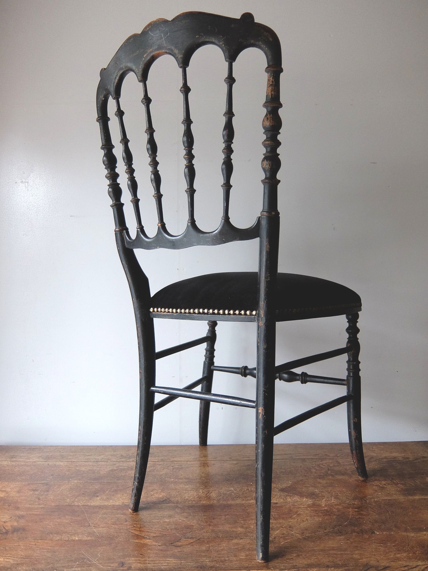 背もたれの意匠と黒と金の塗装が美しいナポレオンⅢ世様式のチェアー