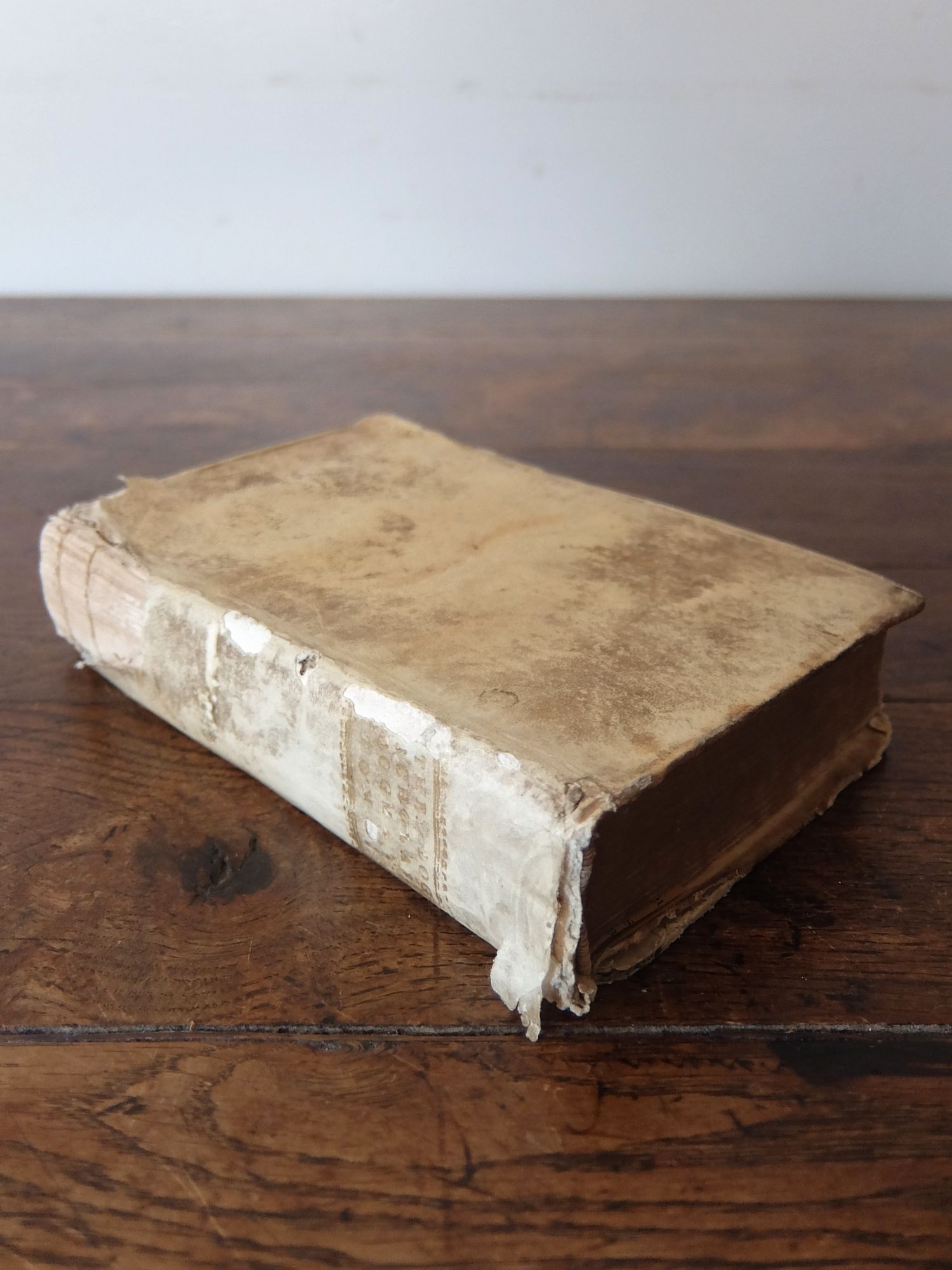 朽ち果てた羊皮紙の表装の神学書