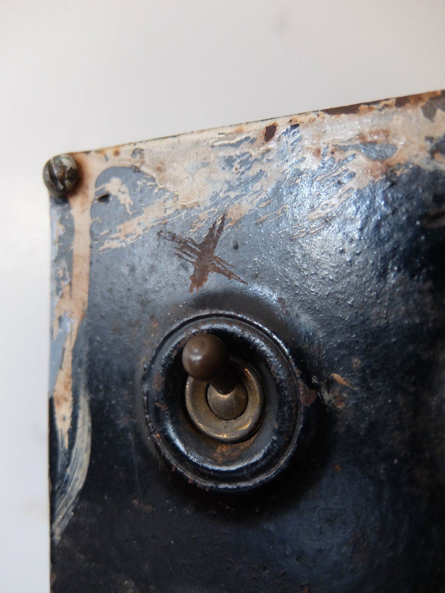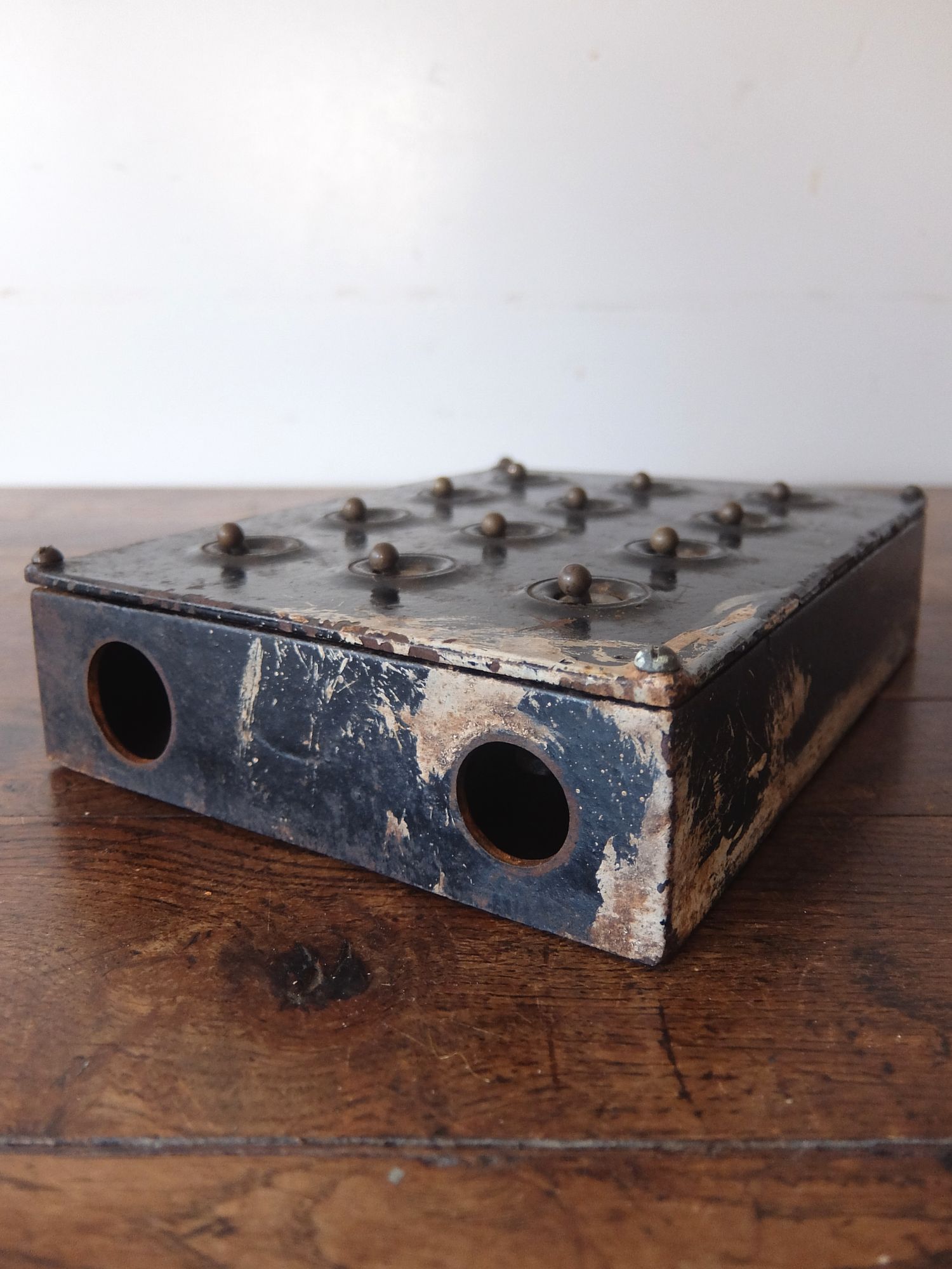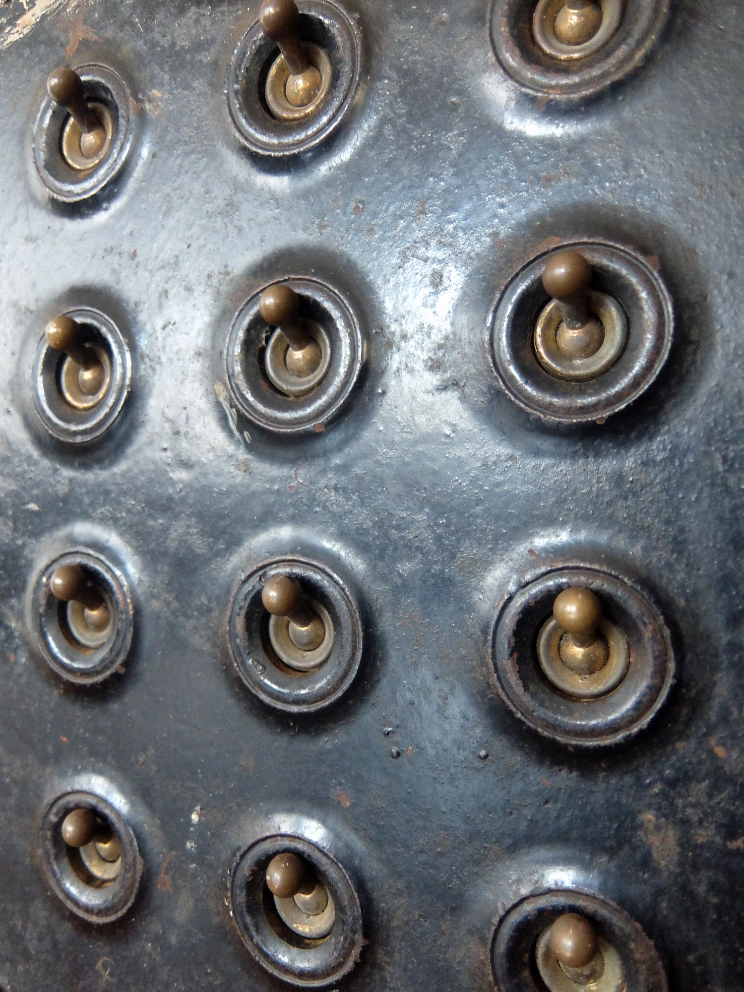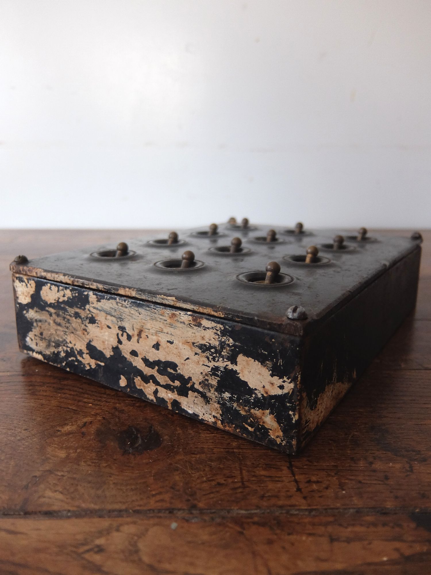 鉄のケースに収まった工業系の12連スイッチ