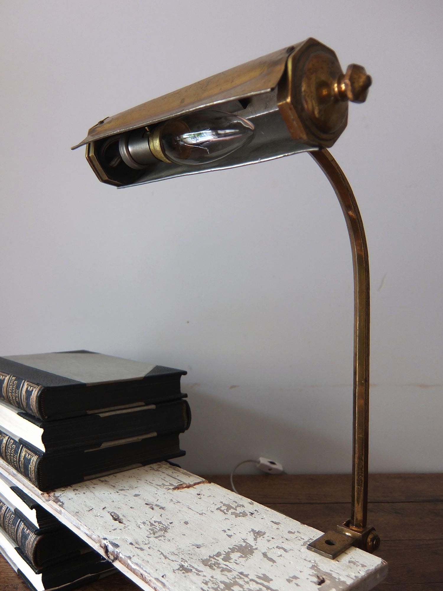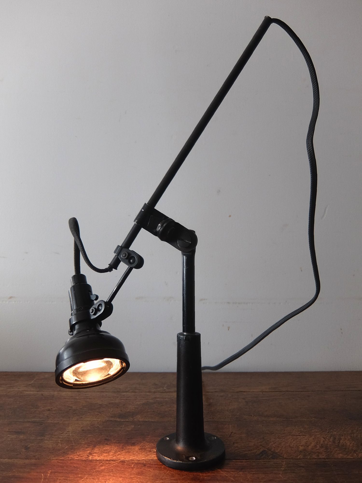 縫製工場で使用されていた【Singer】社製のデスクランプ (型番:SLF-2)