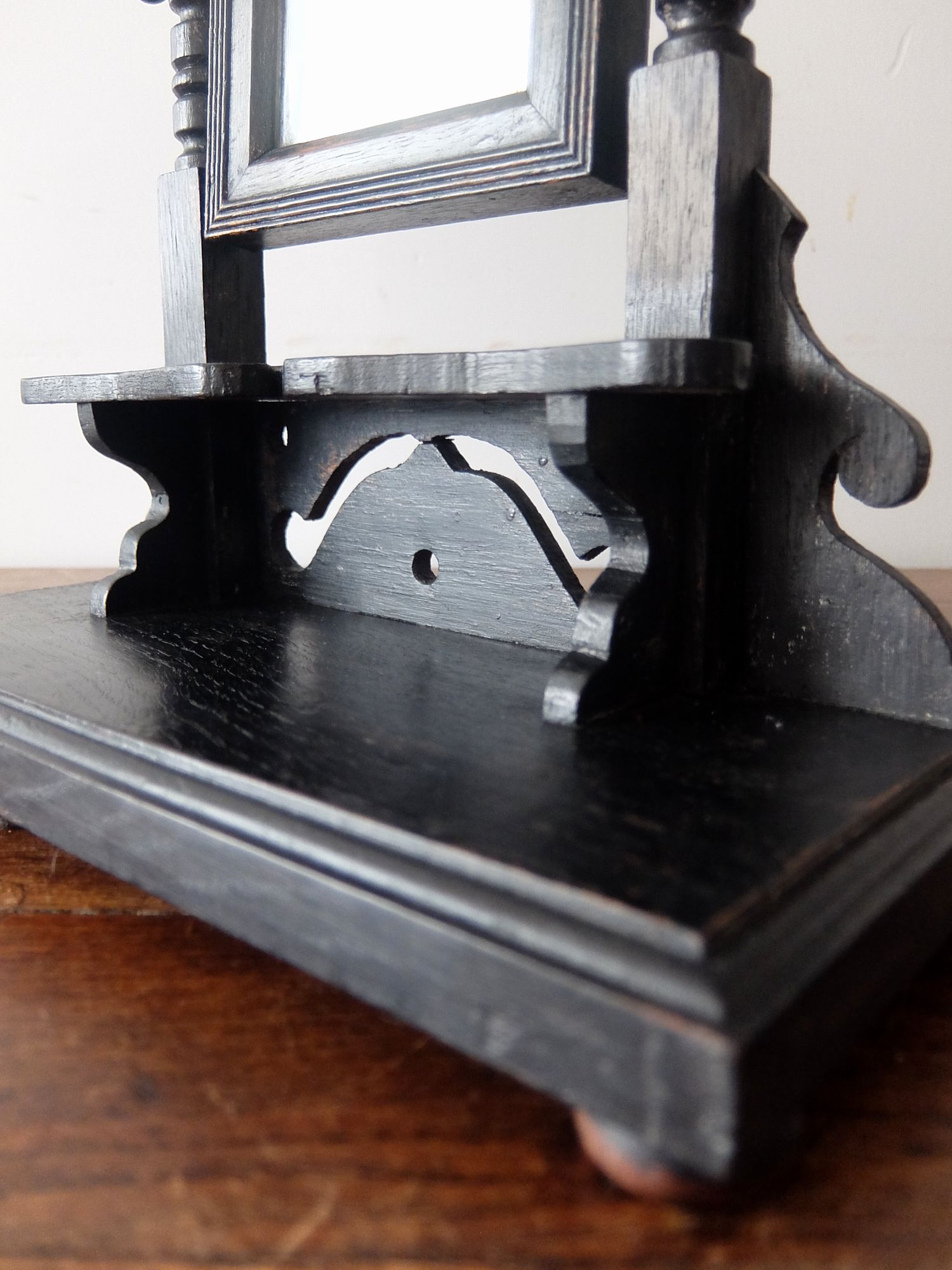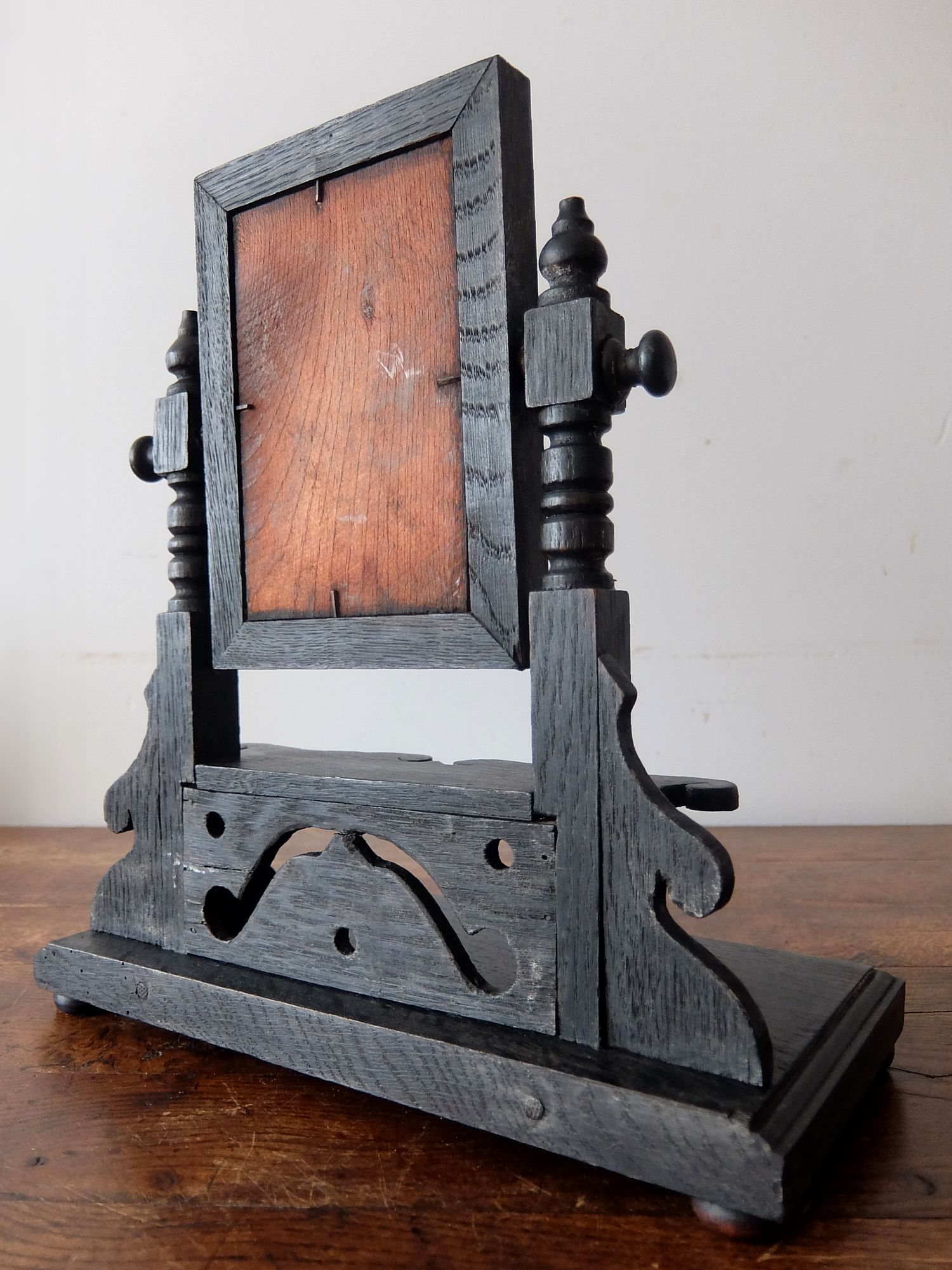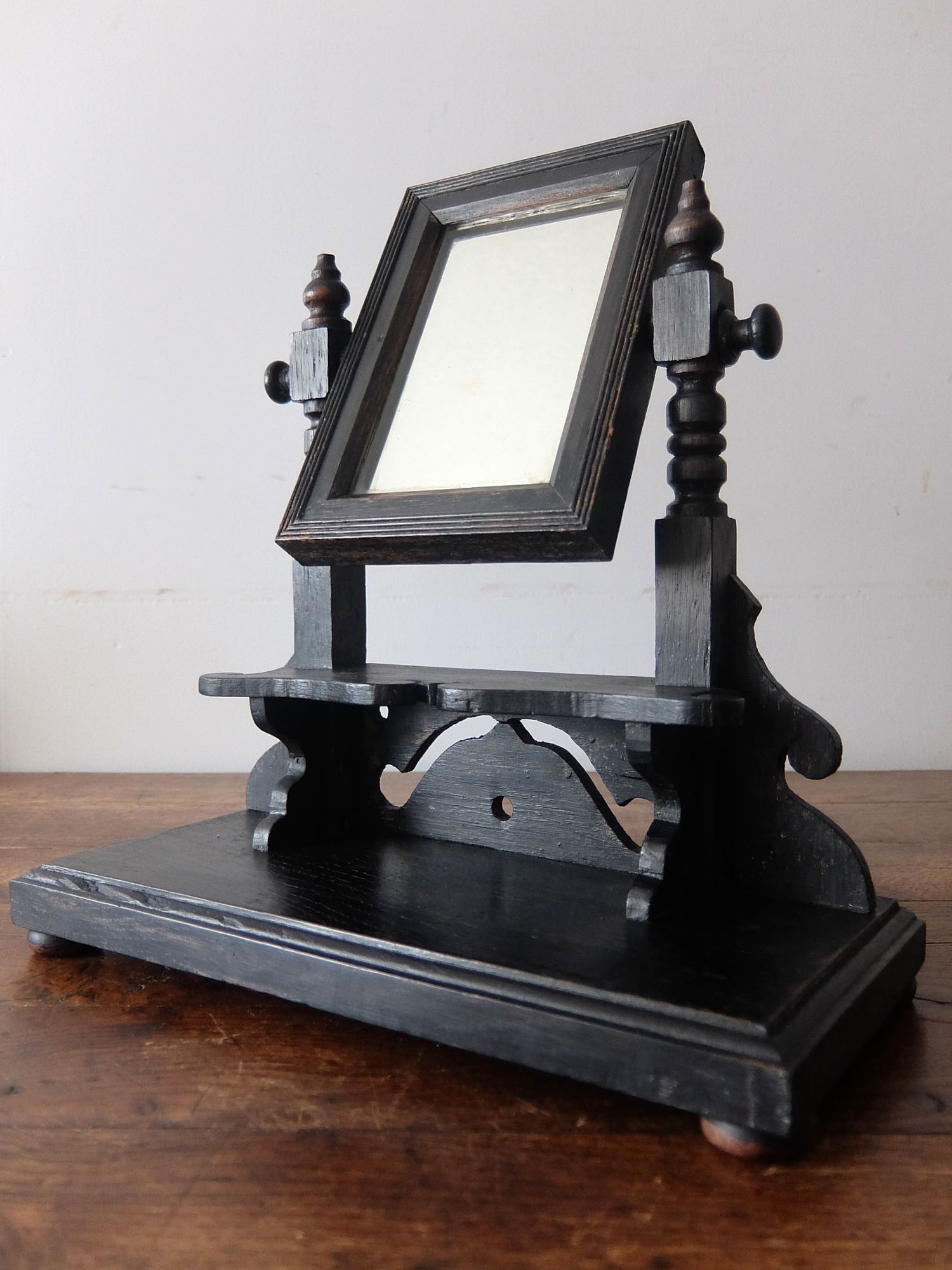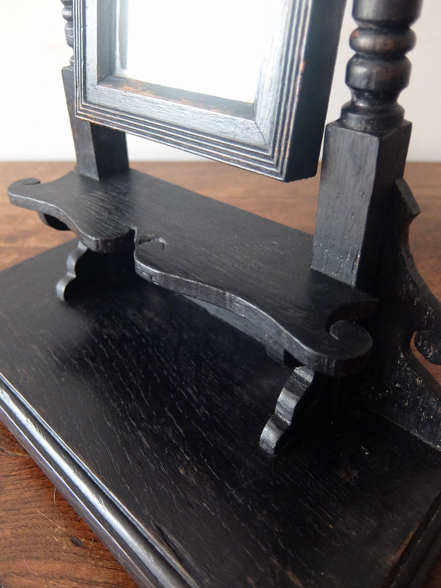 朽ちた黒の塗装が魅力的なオーク材の卓上ミラー
