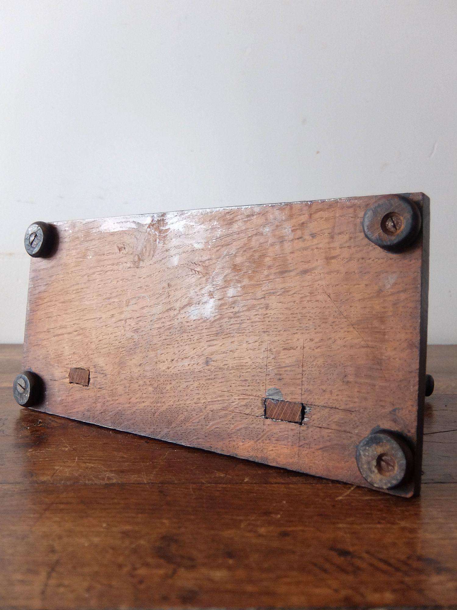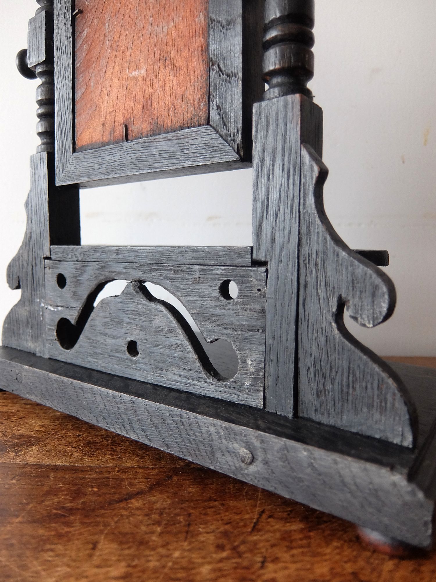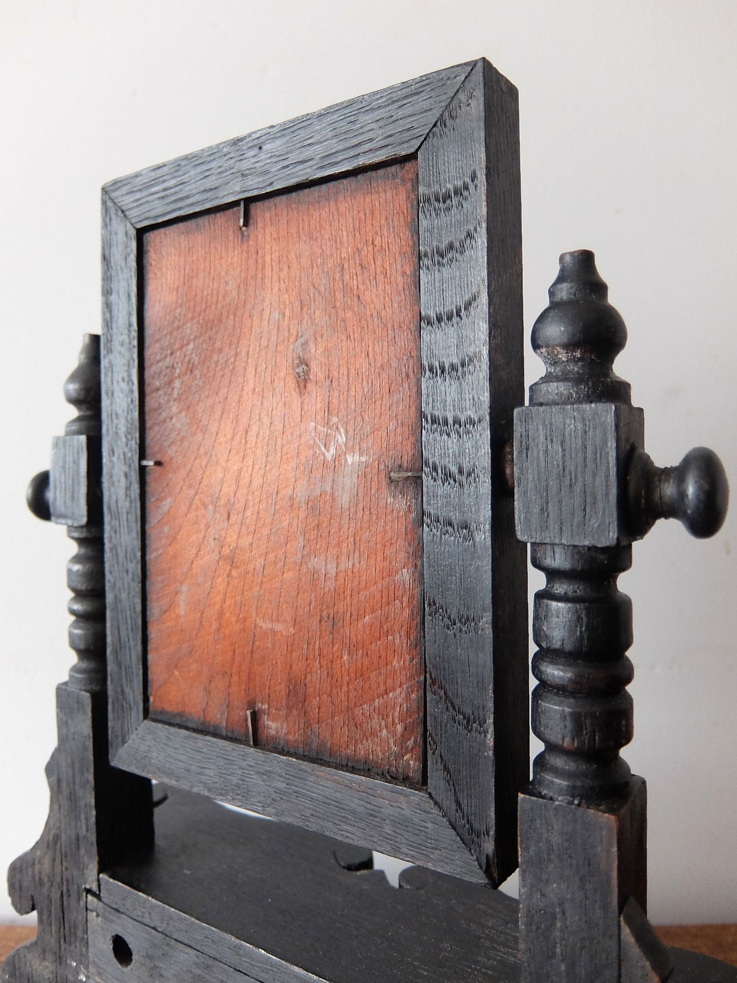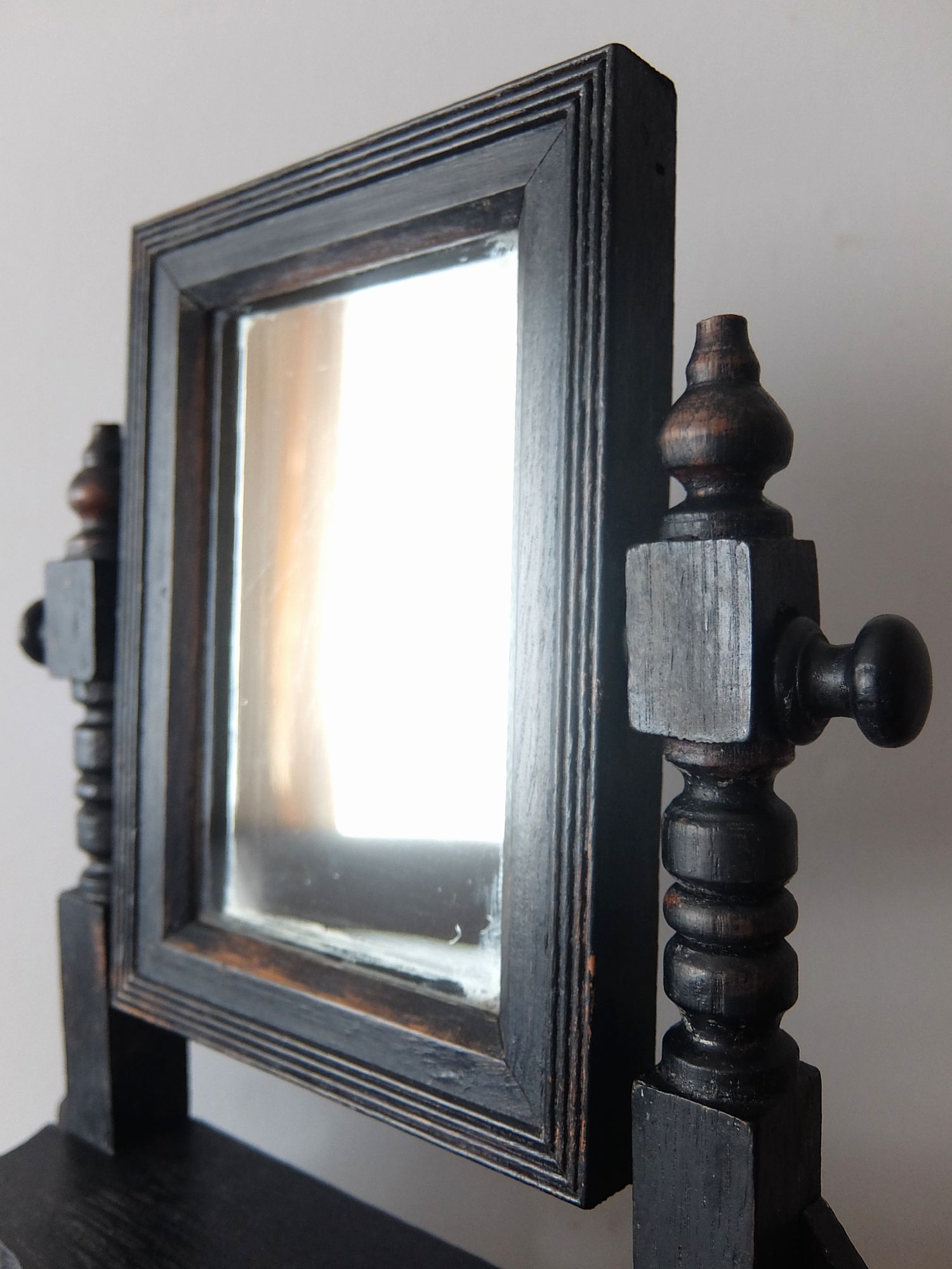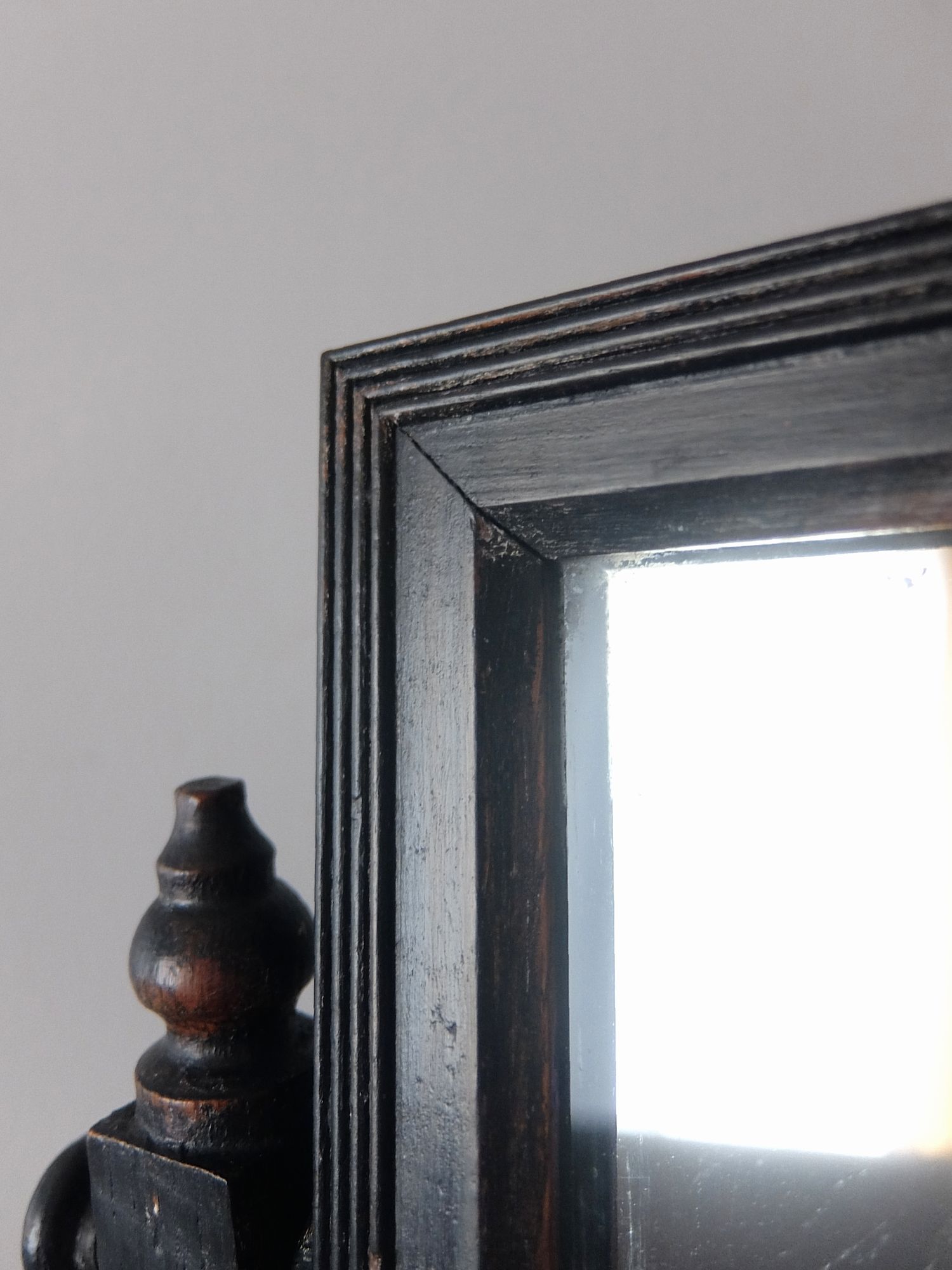 朽ちた黒の塗装が魅力的なオーク材の卓上ミラー
