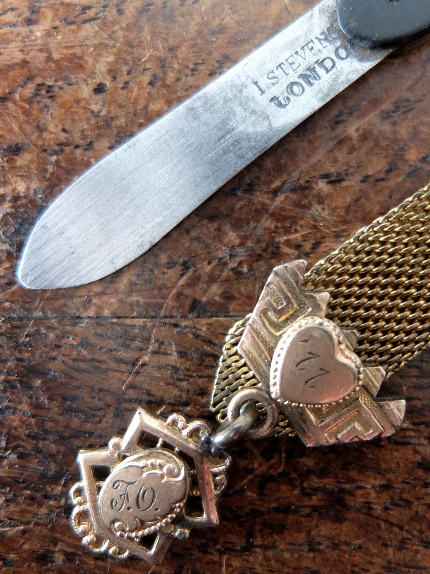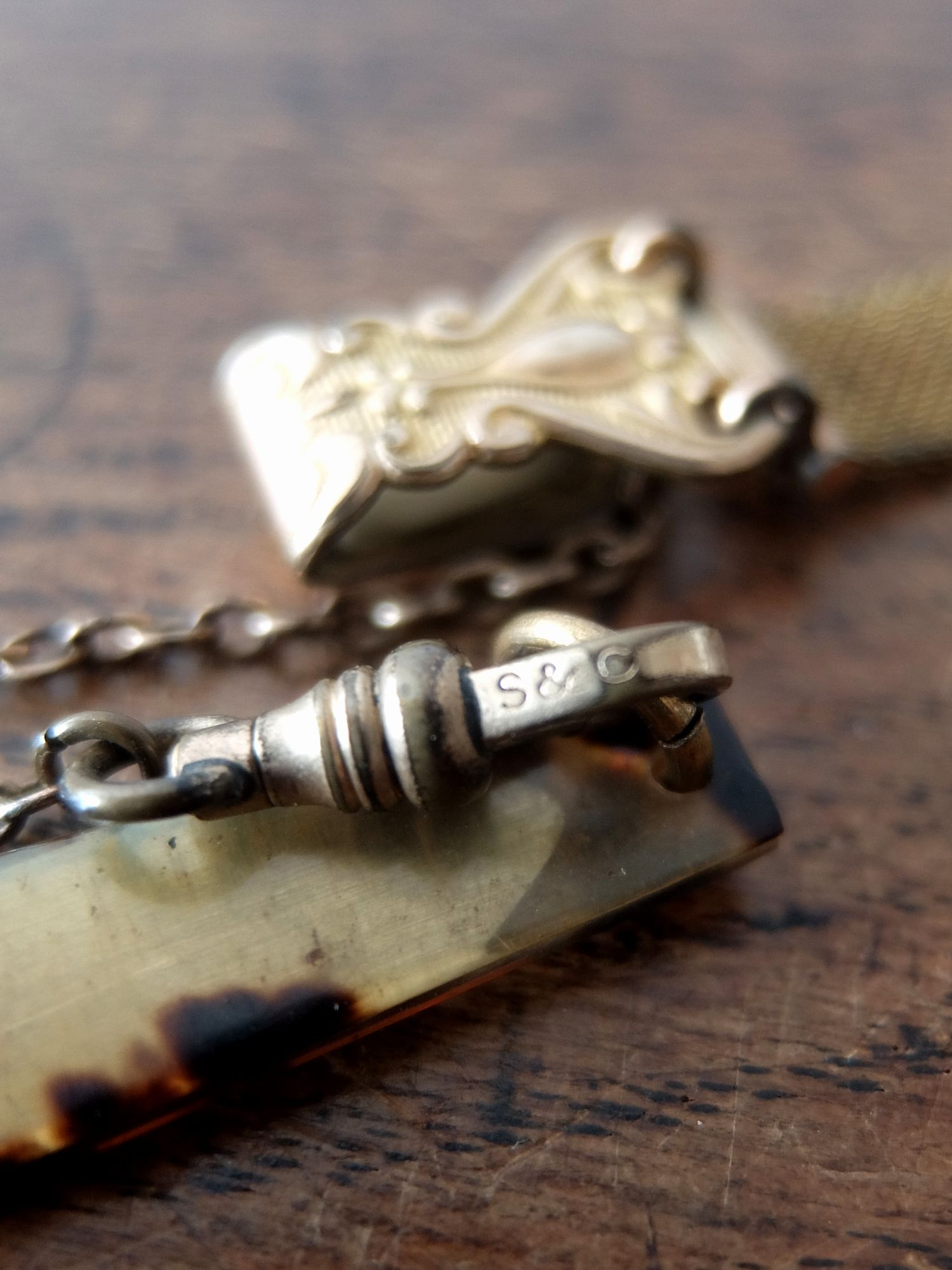 鼈甲の柄が美しい携帯用のペーパーナイフと金張りのフォブシール(印章)