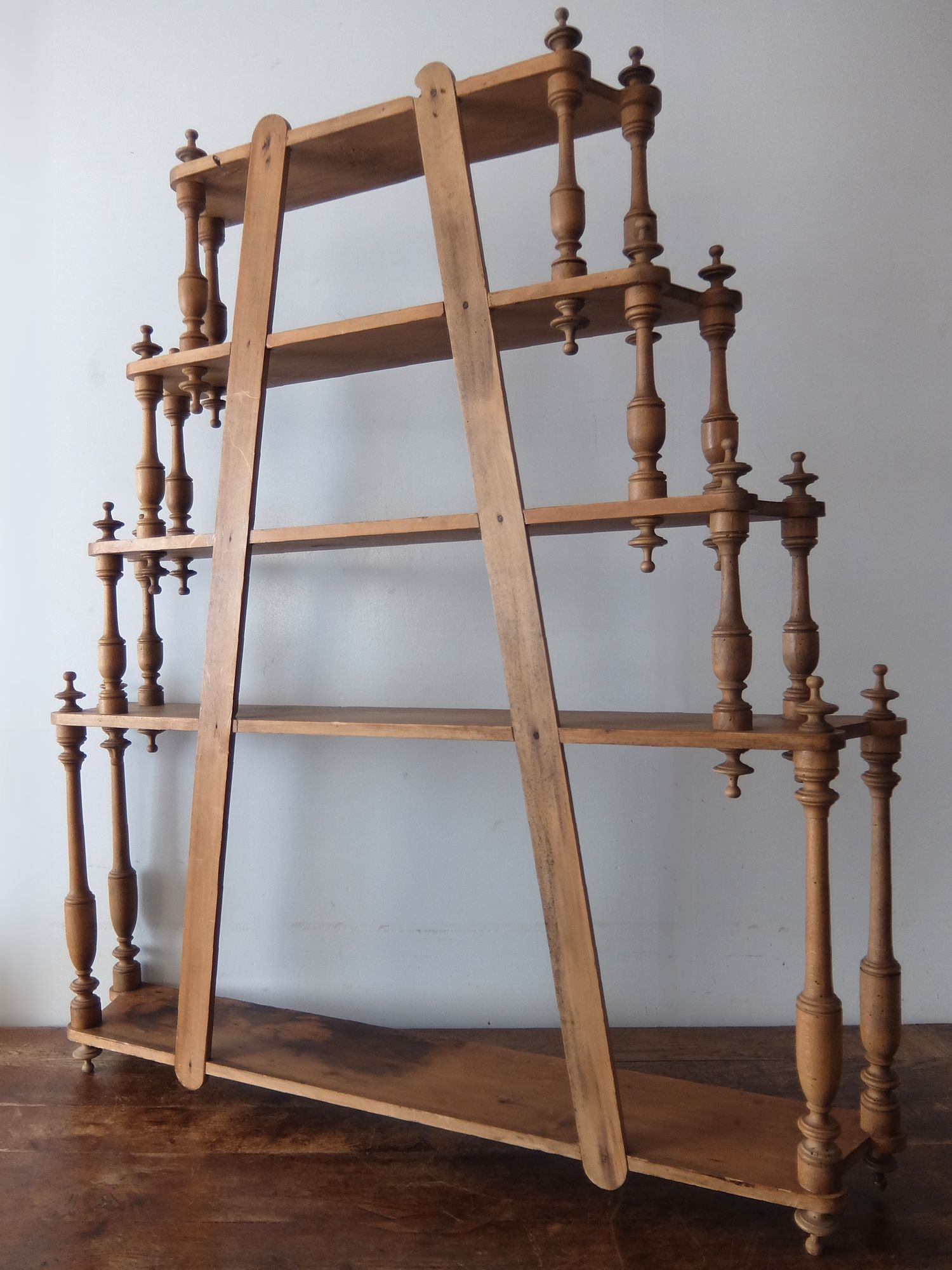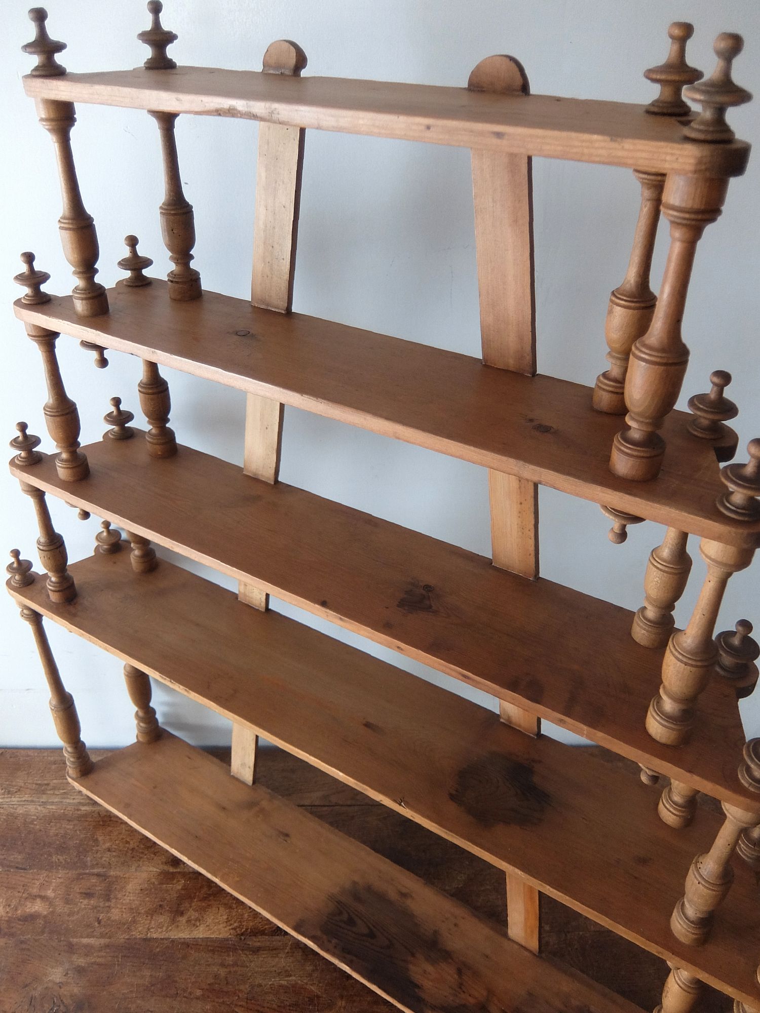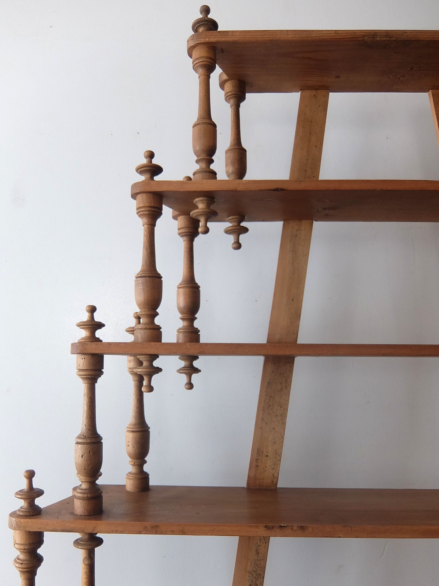 繊細な彫刻が美しいパイン材の5段シェルフ