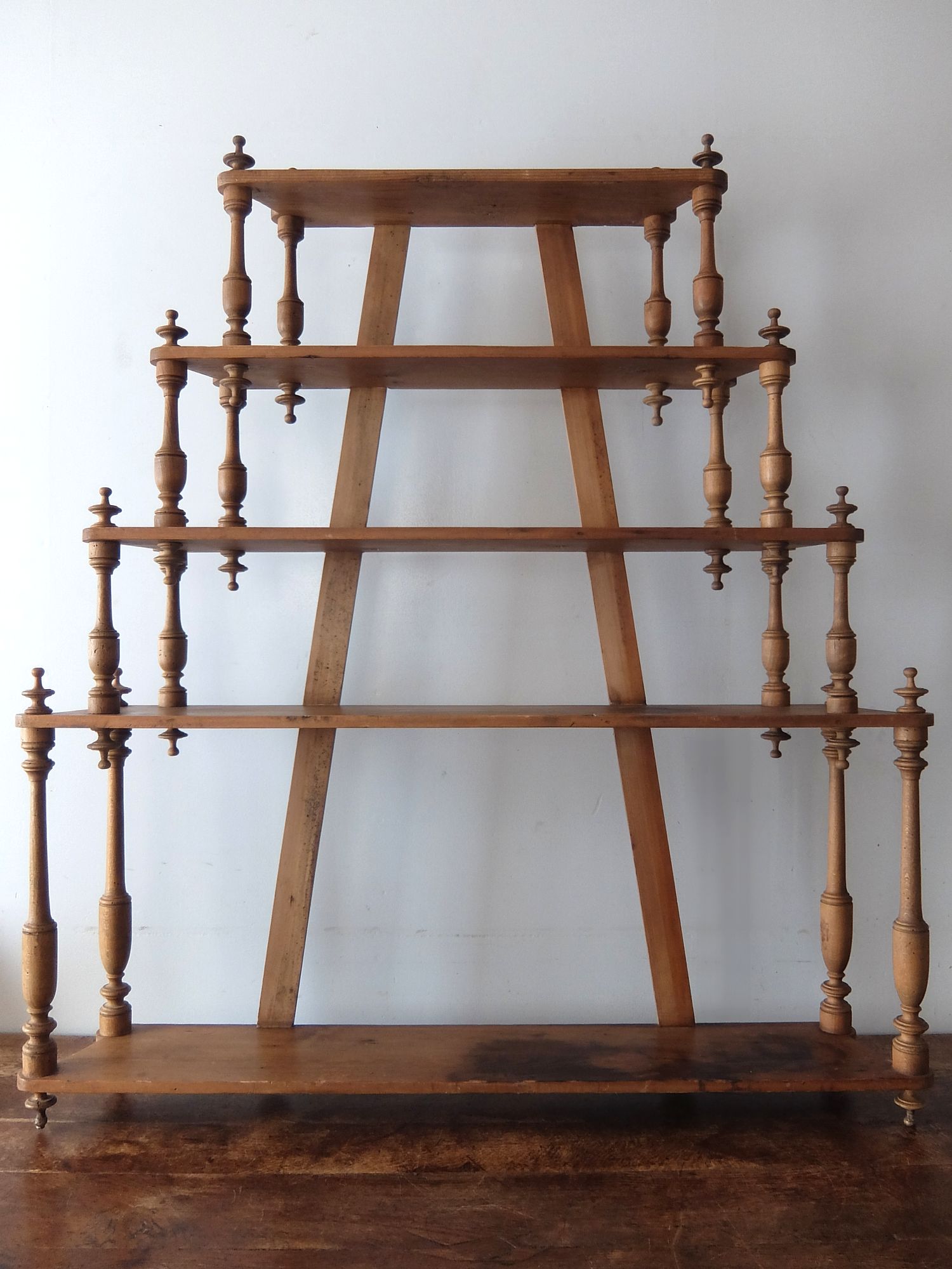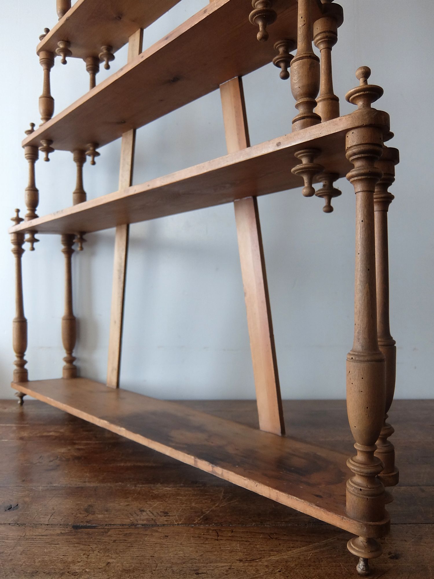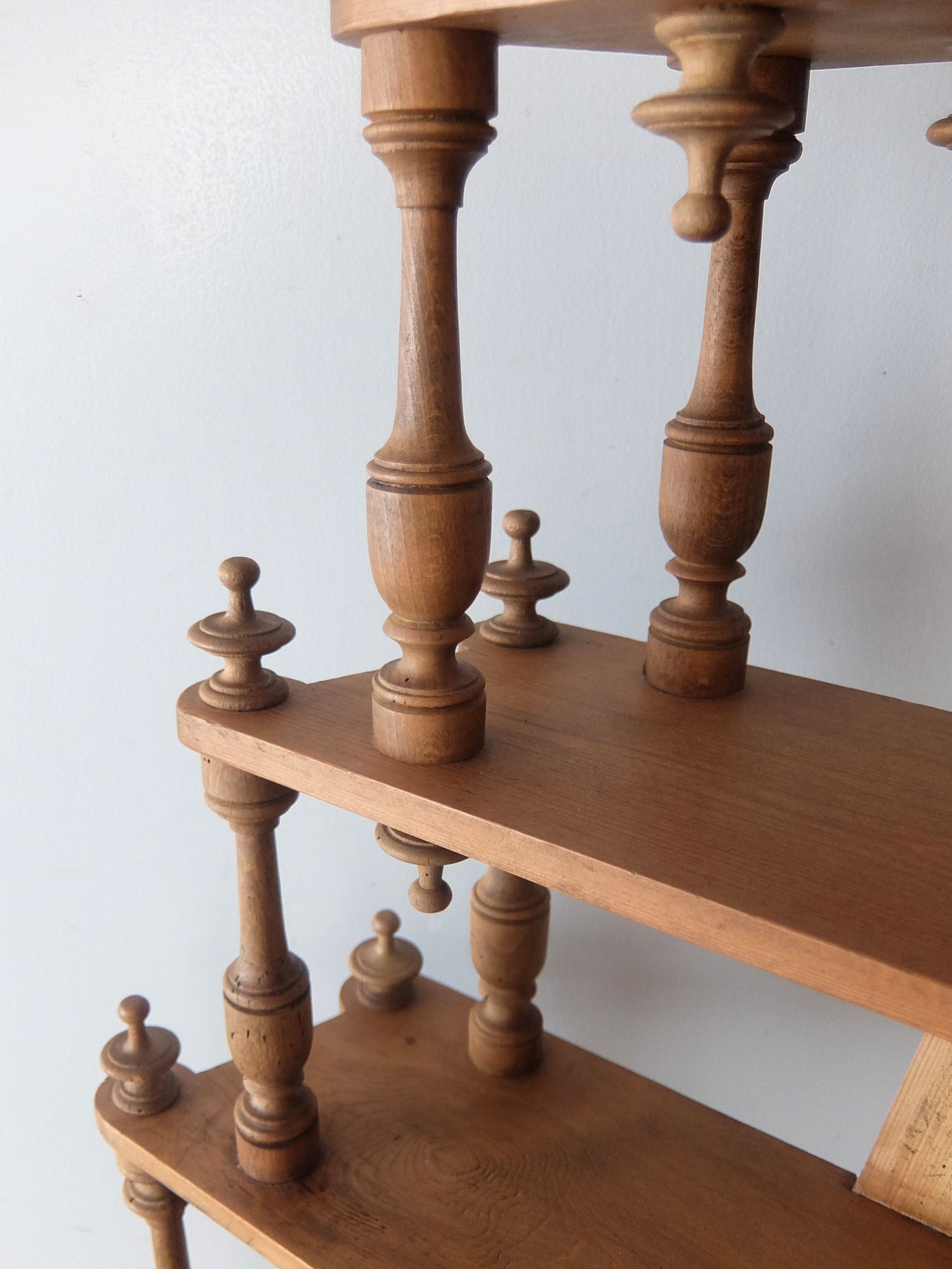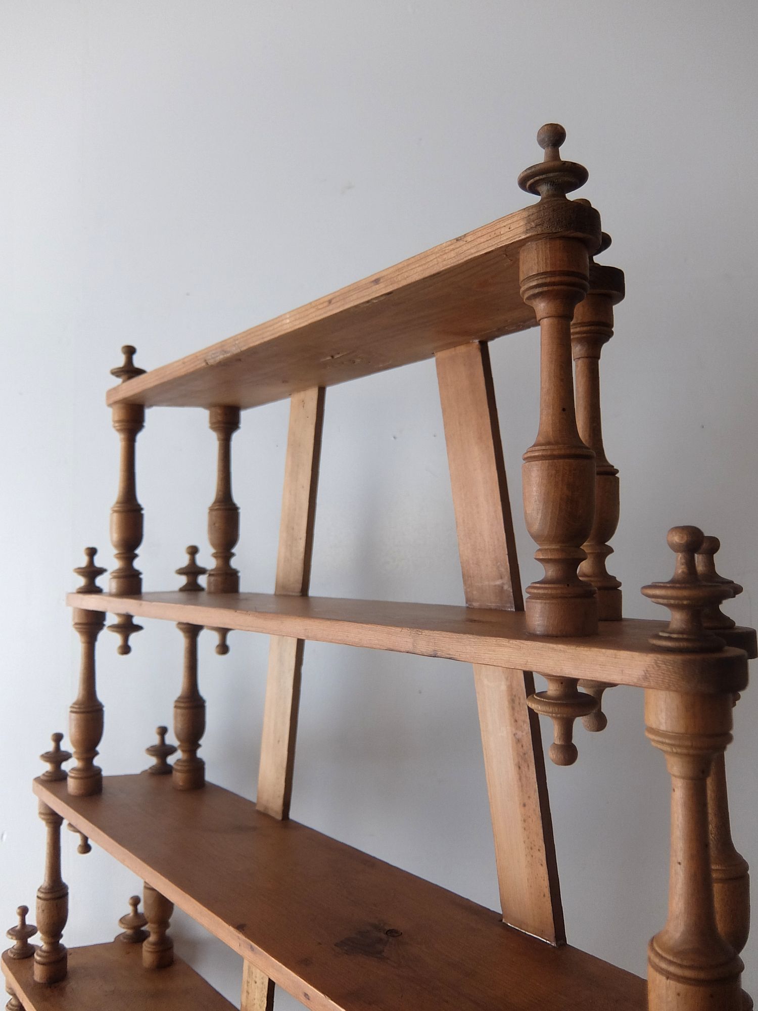 繊細な彫刻が美しいパイン材の5段シェルフ
