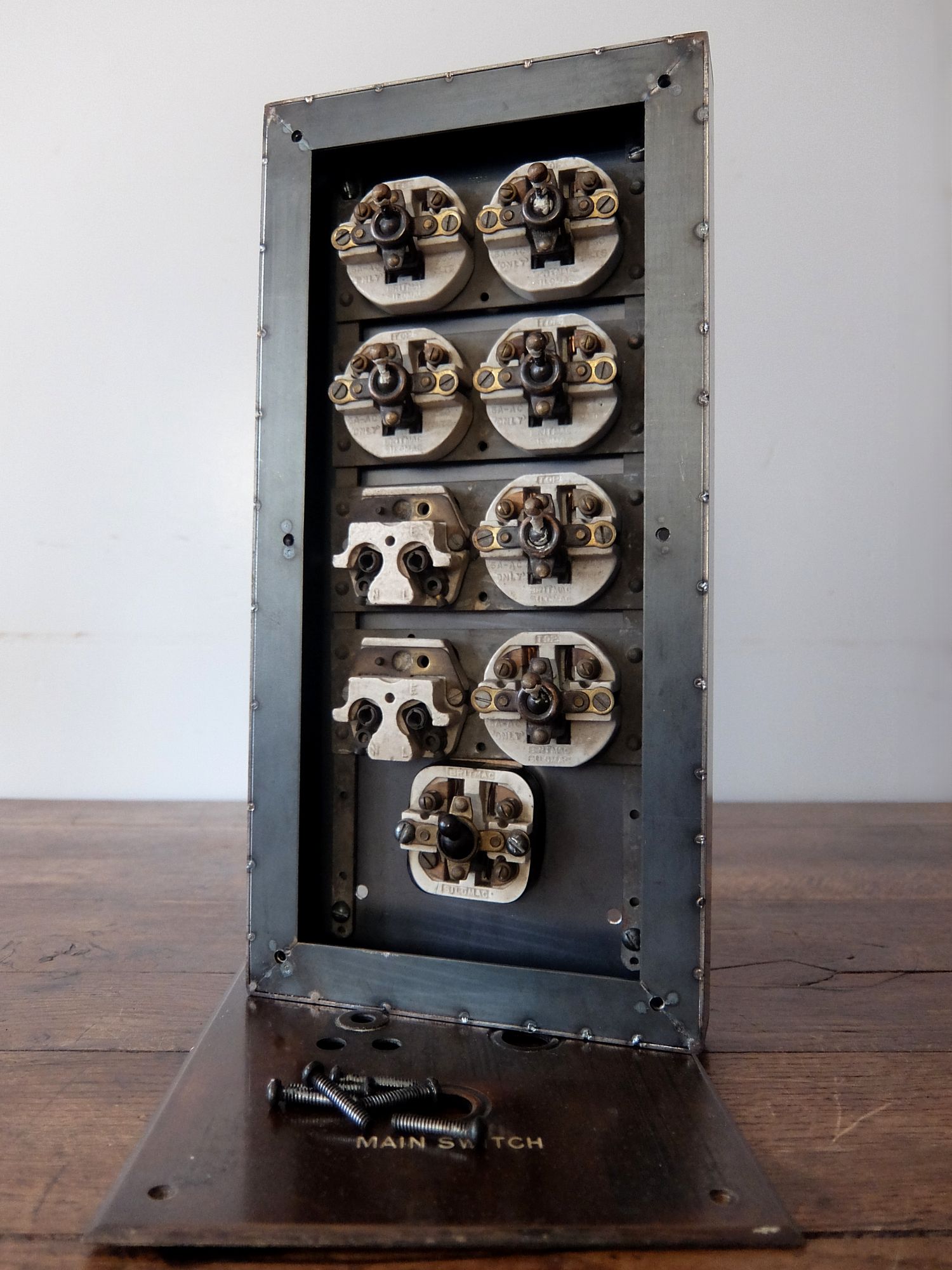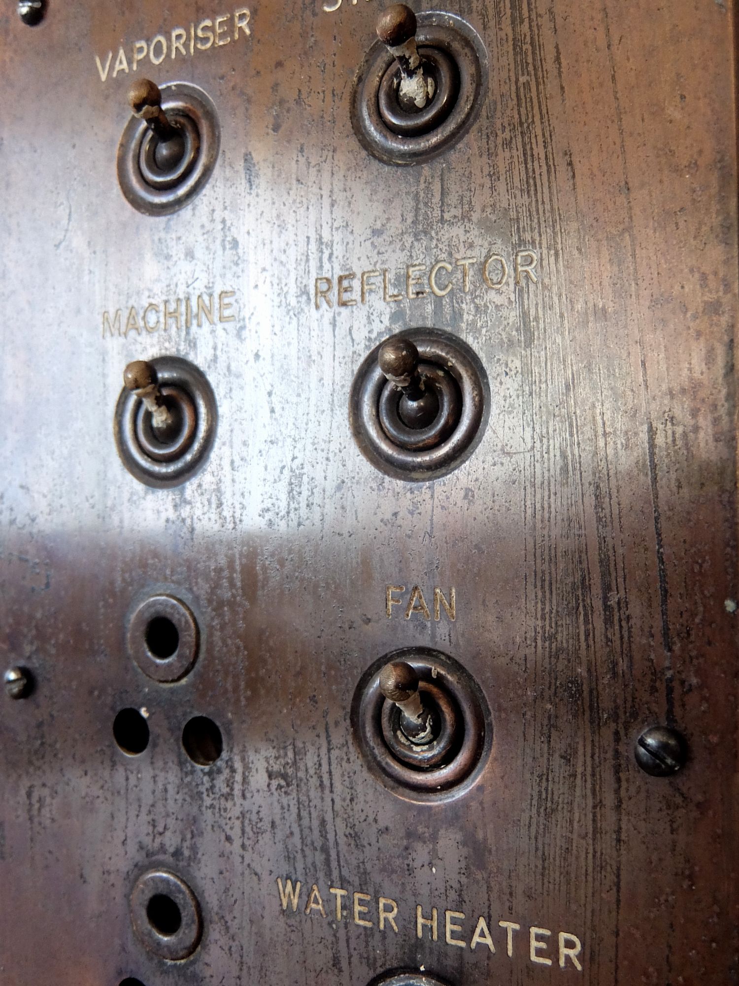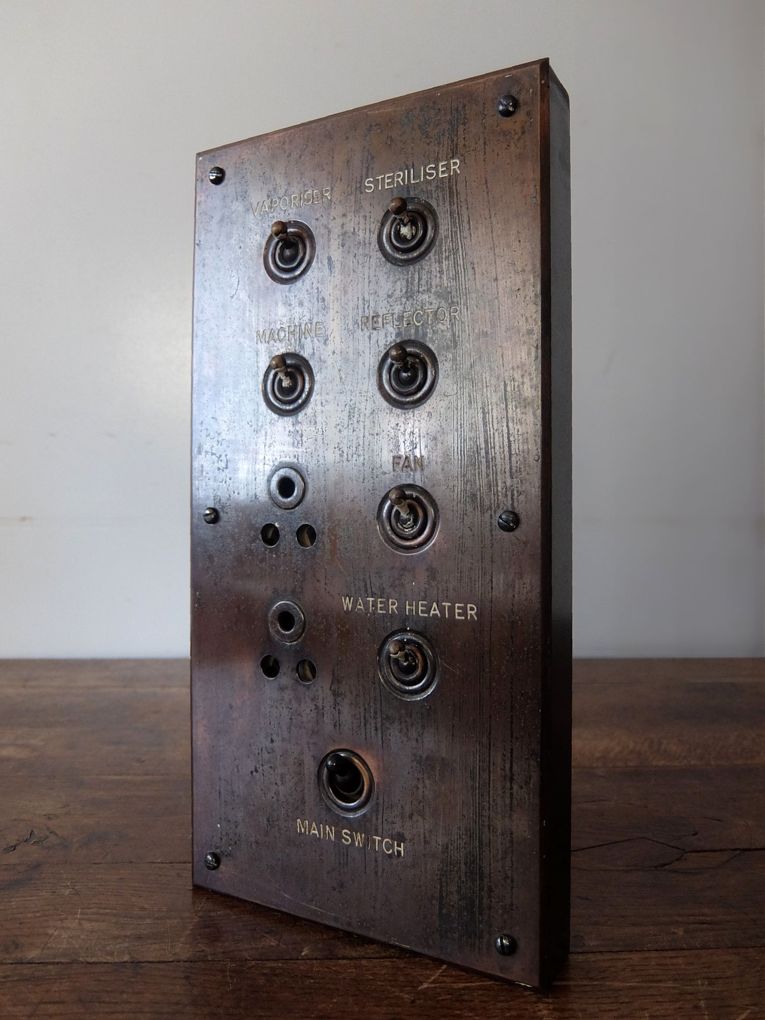 歯科で使用していたブロンズ製のスイッチ (スイッチ:7個, イギリス用コンセントプラグ:2口)
