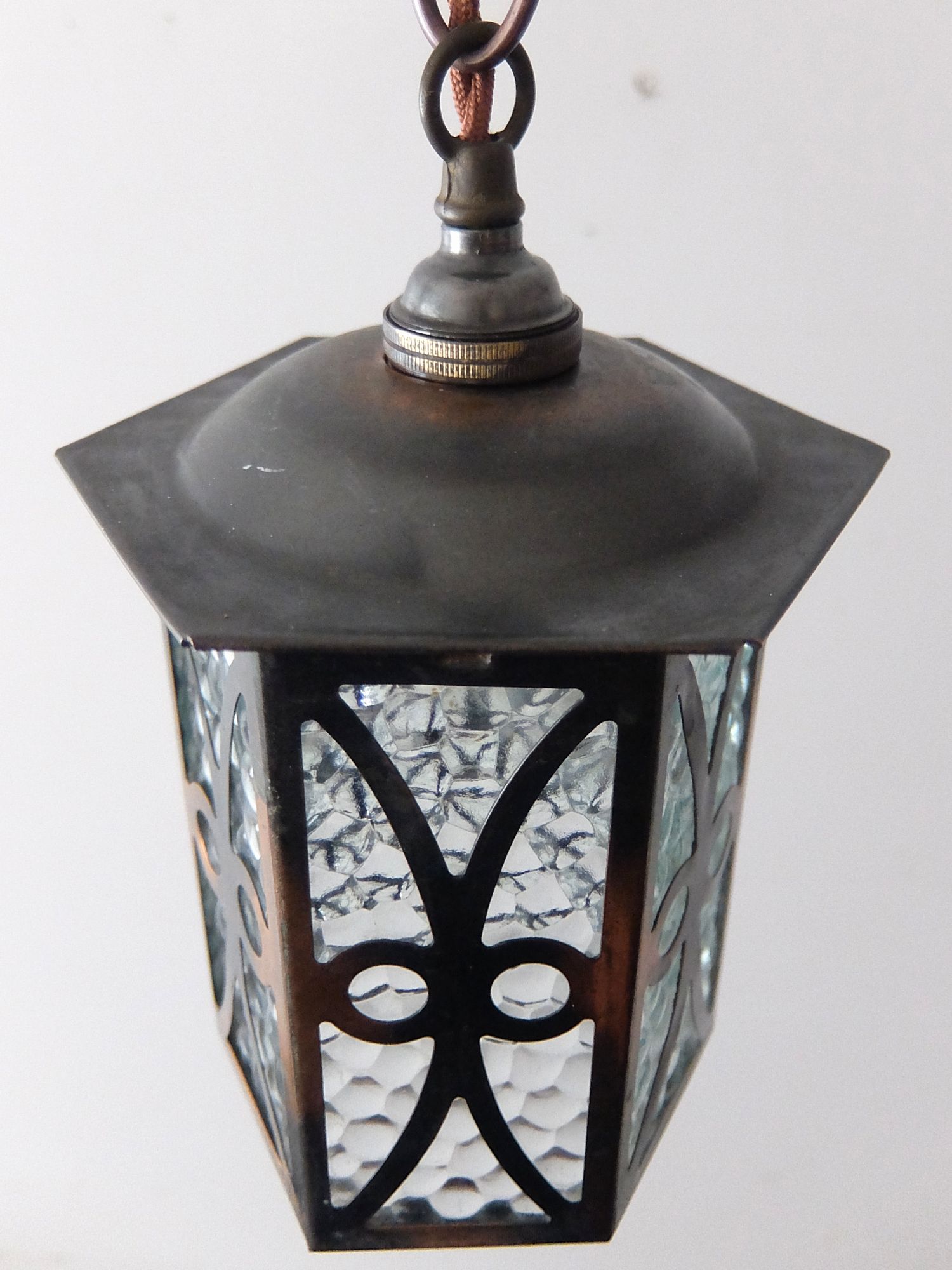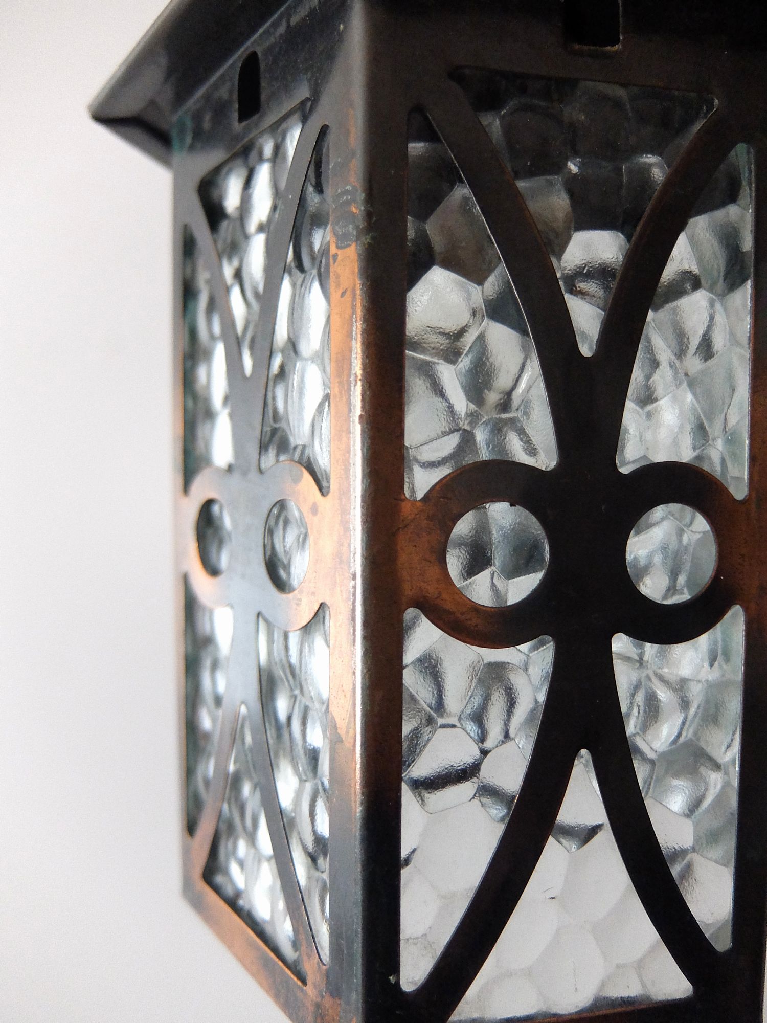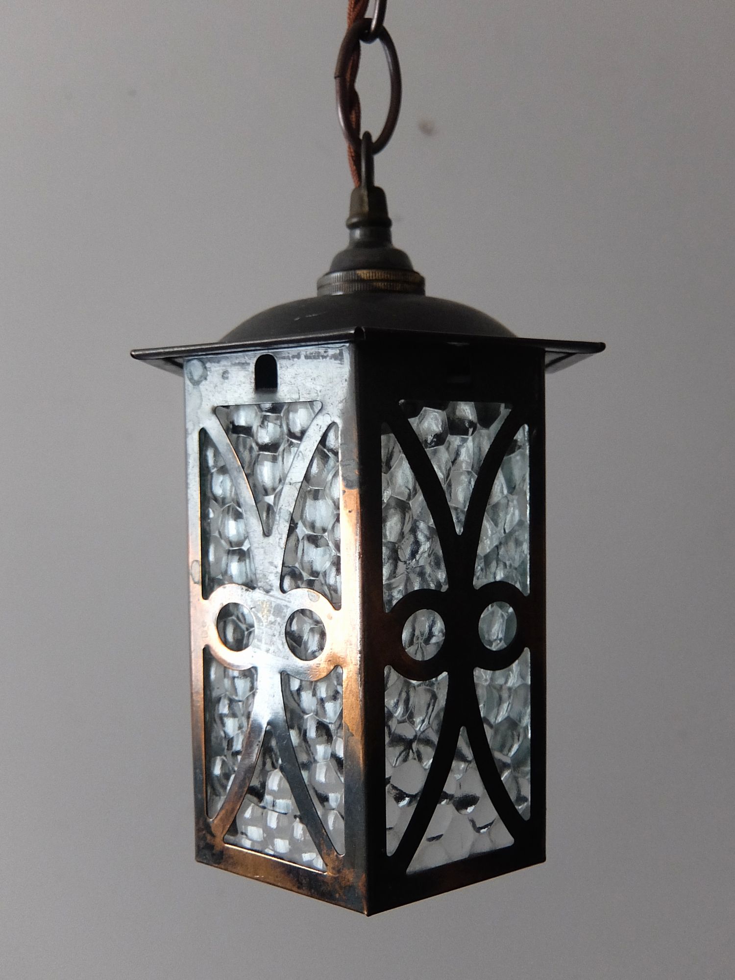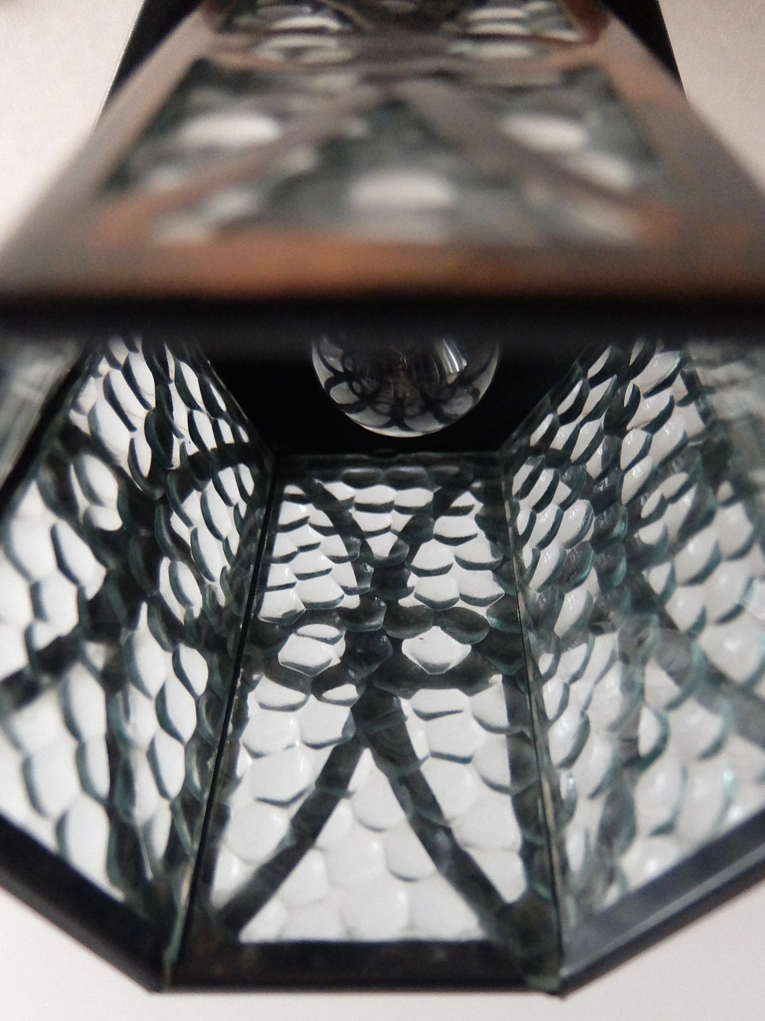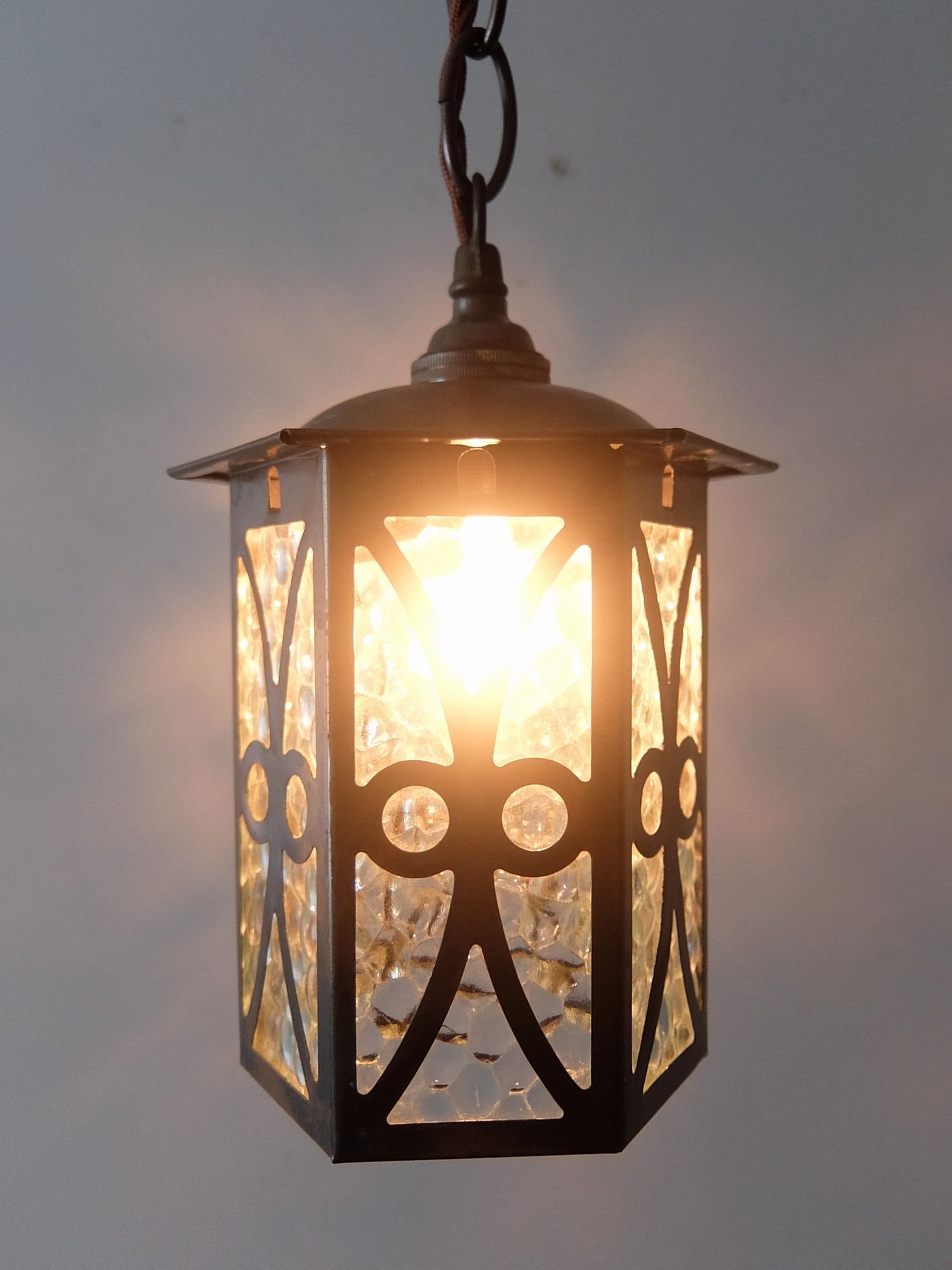 真鍮の経年の雰囲気と凹凸のガラスが魅力的なランタン