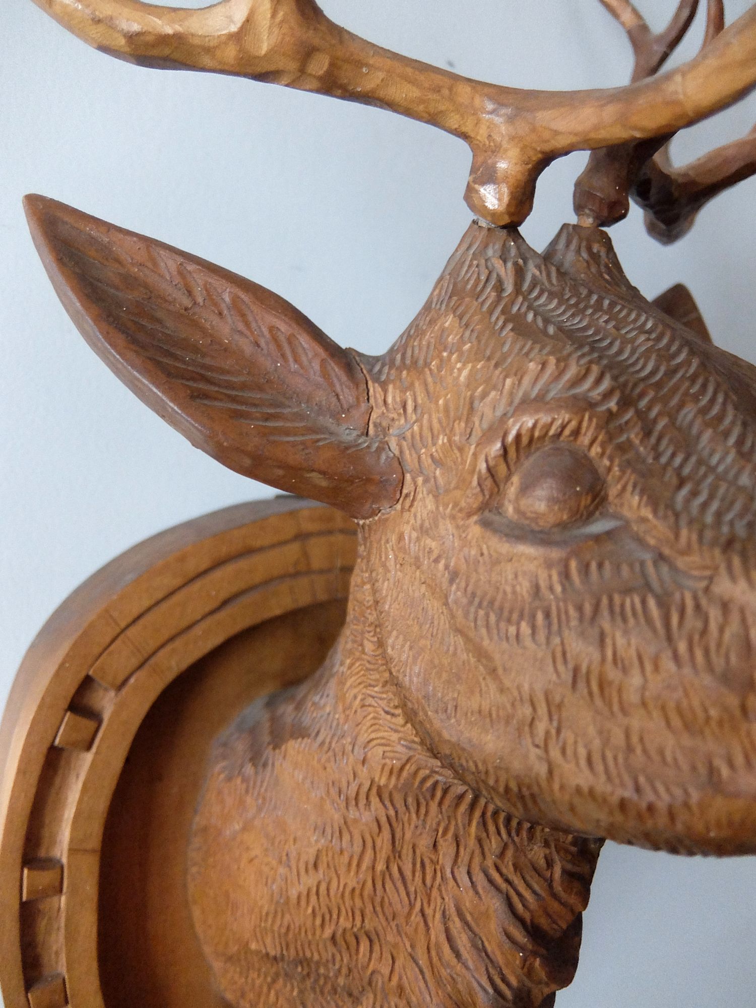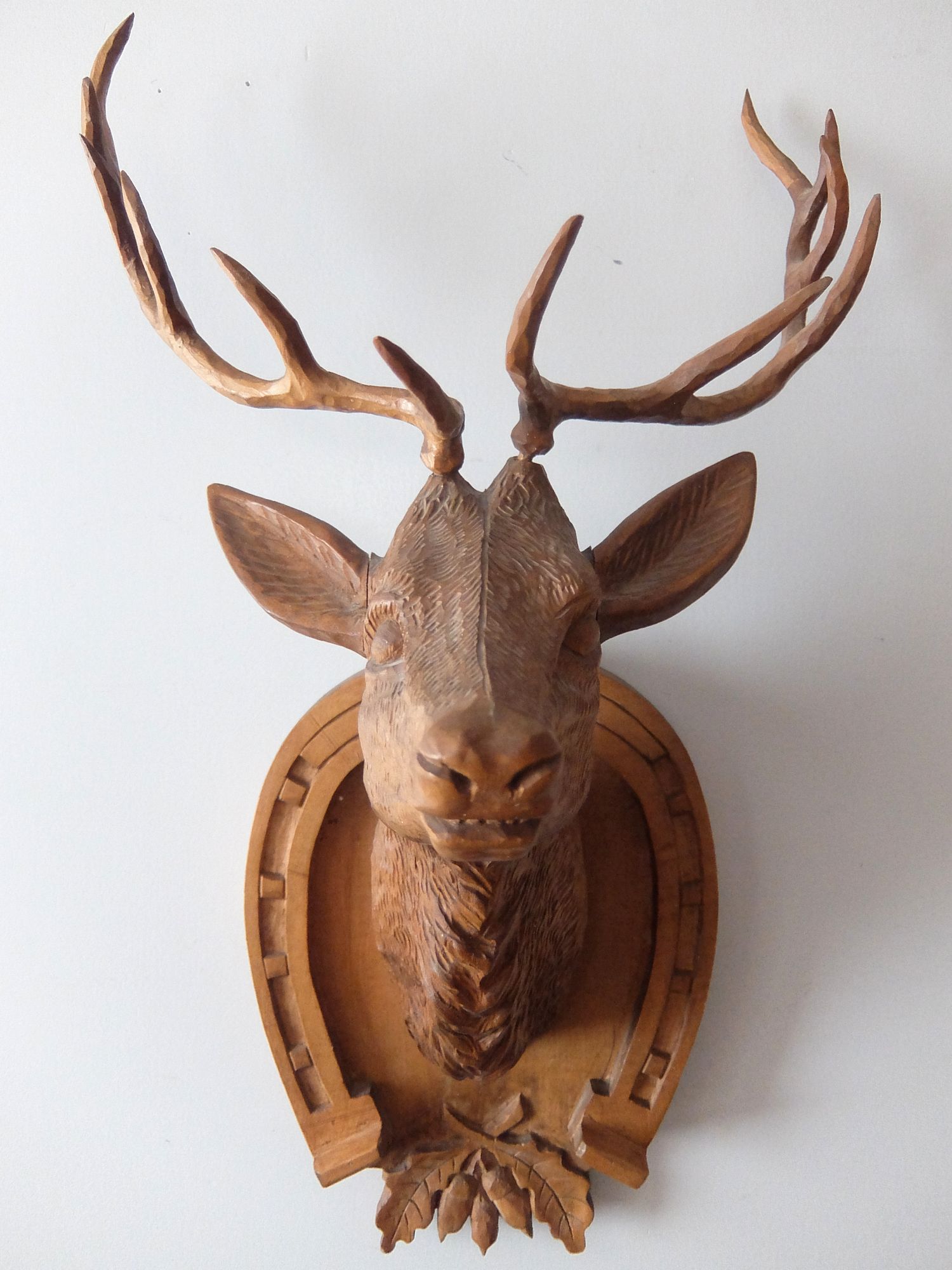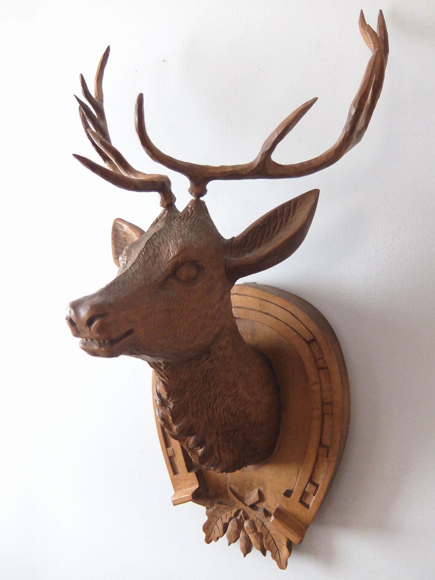 細部まで精密に彫られた鹿のハンティングトロフィー