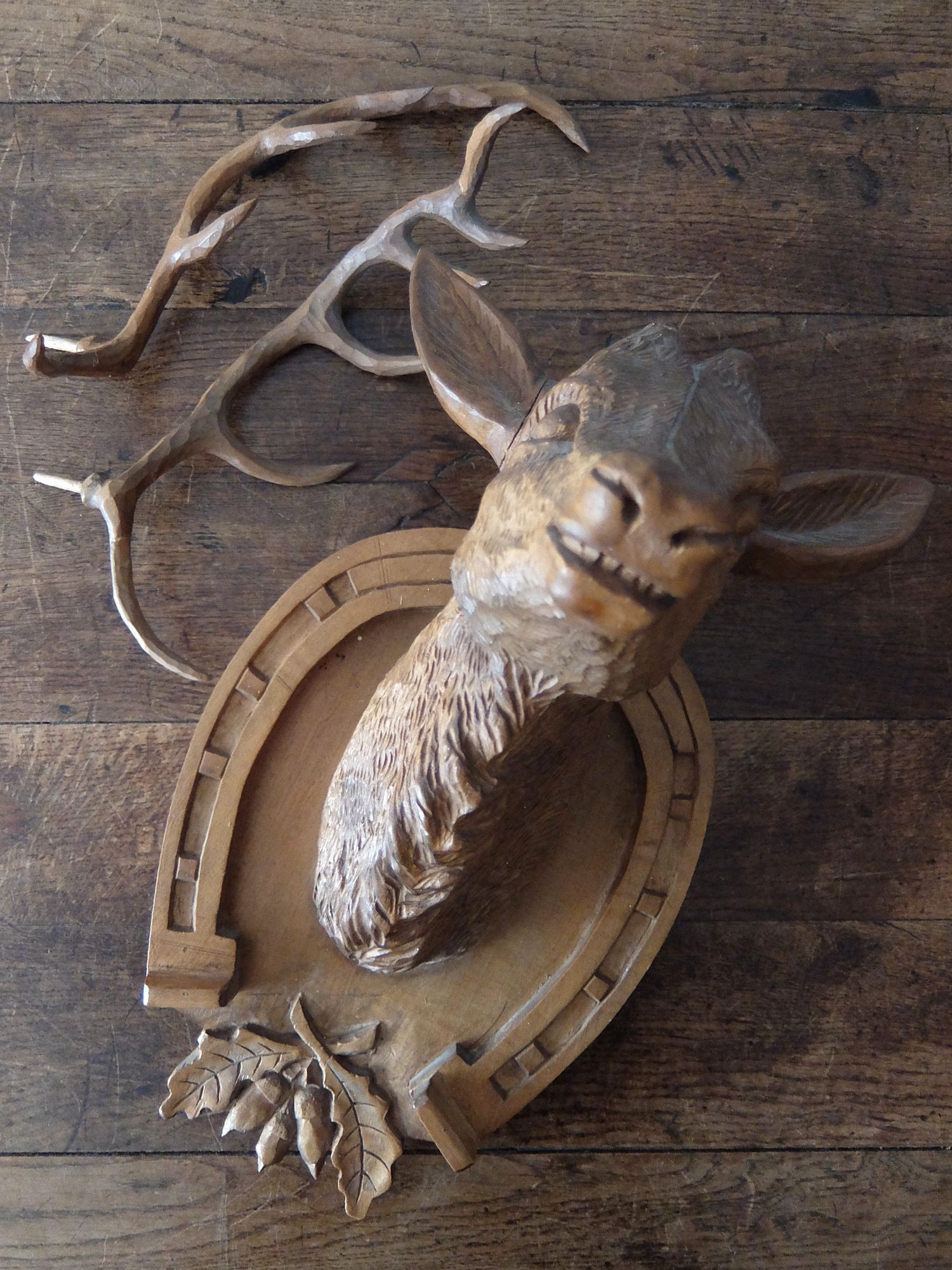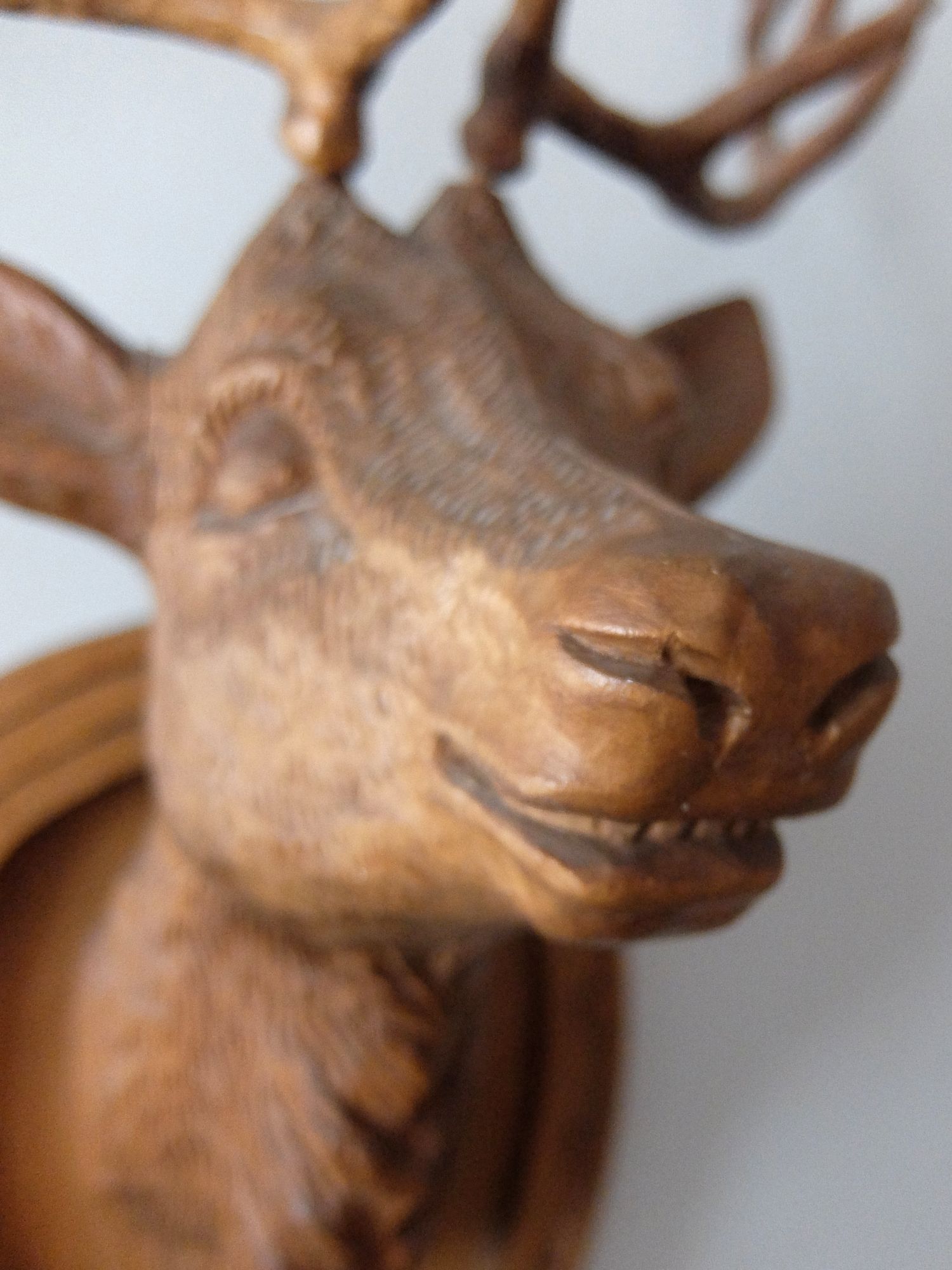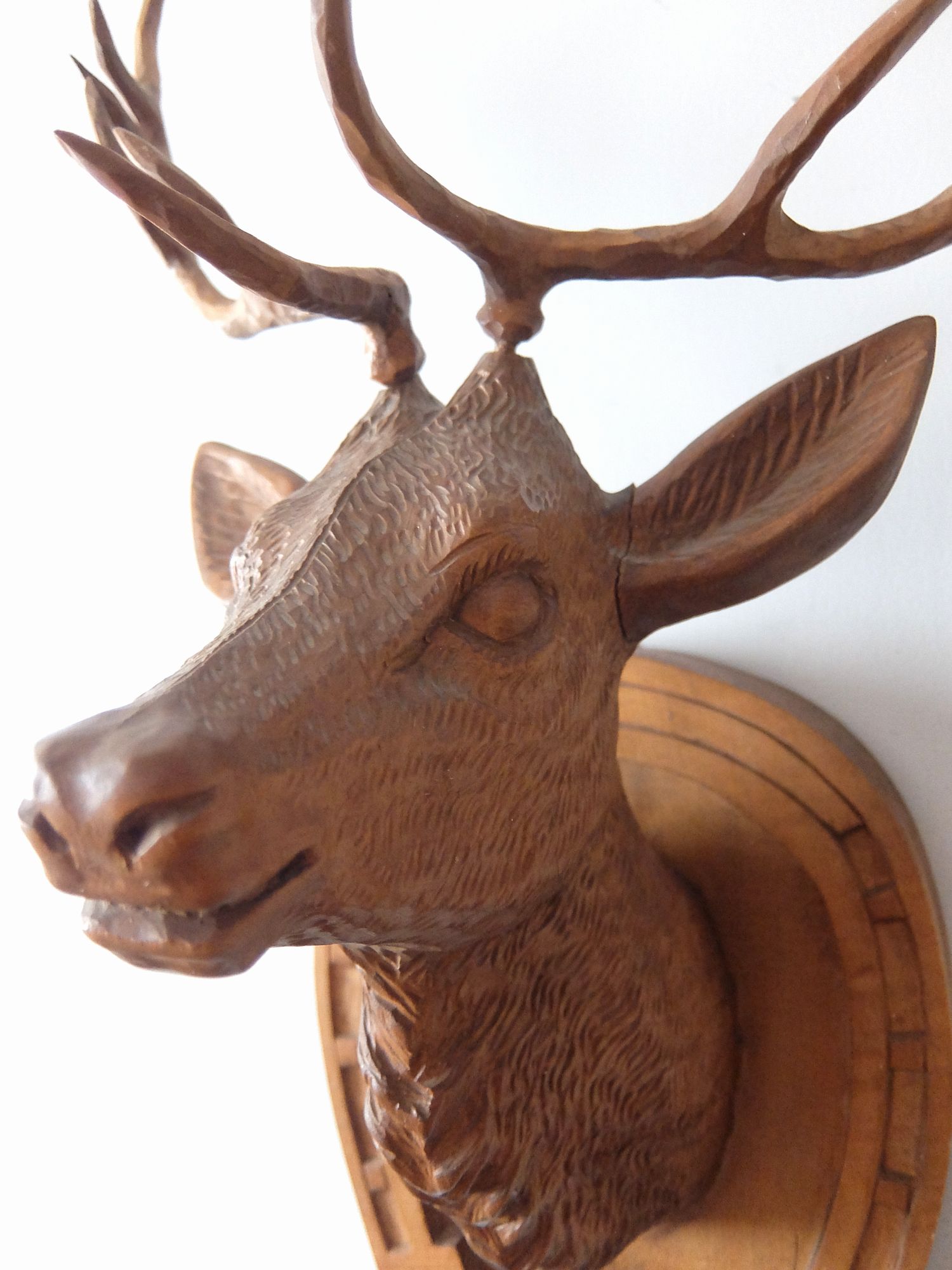 細部まで精密に彫られた鹿のハンティングトロフィー