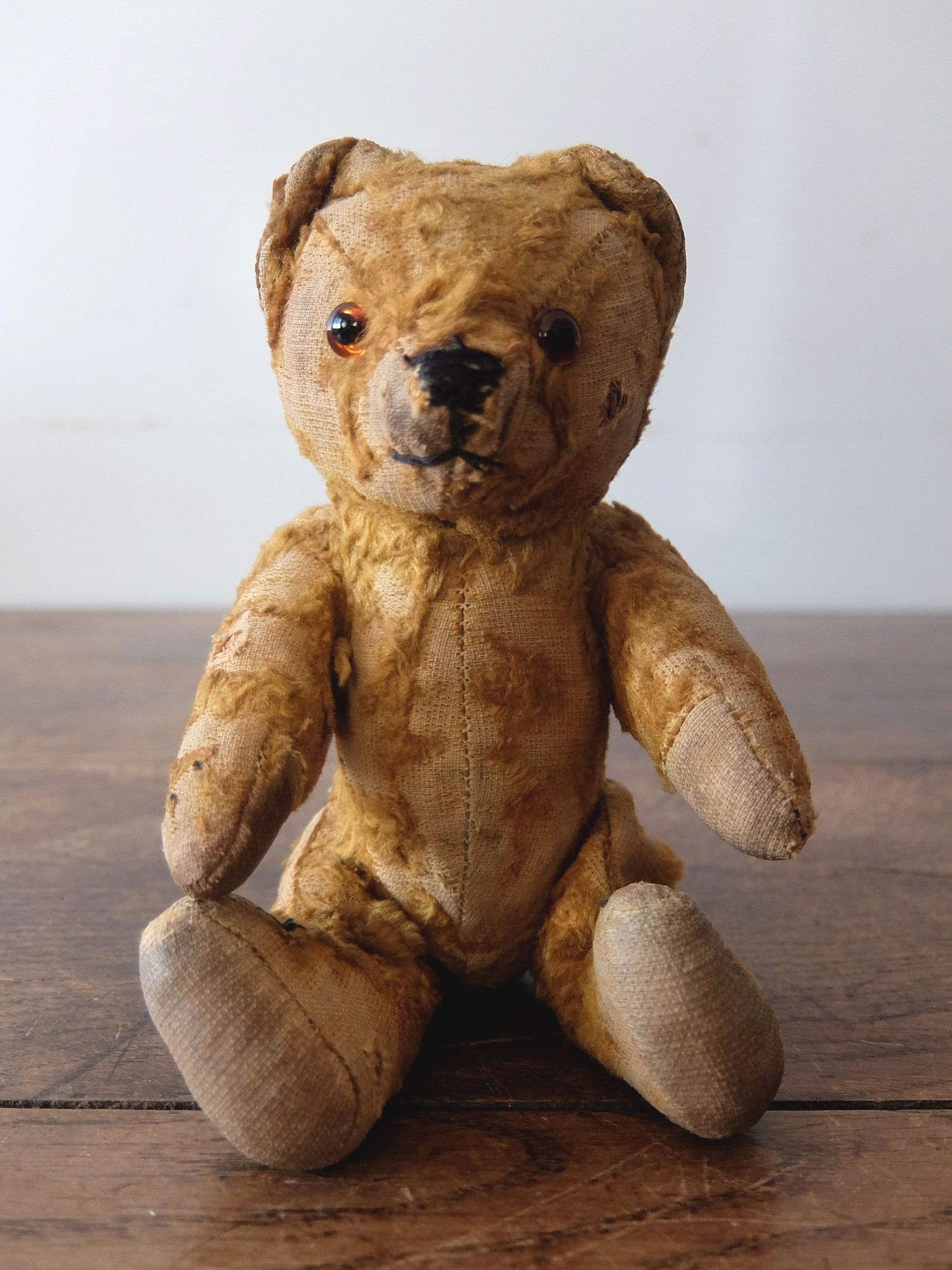 つぶらな瞳が可愛らしい藁が詰まった小さなテディベア