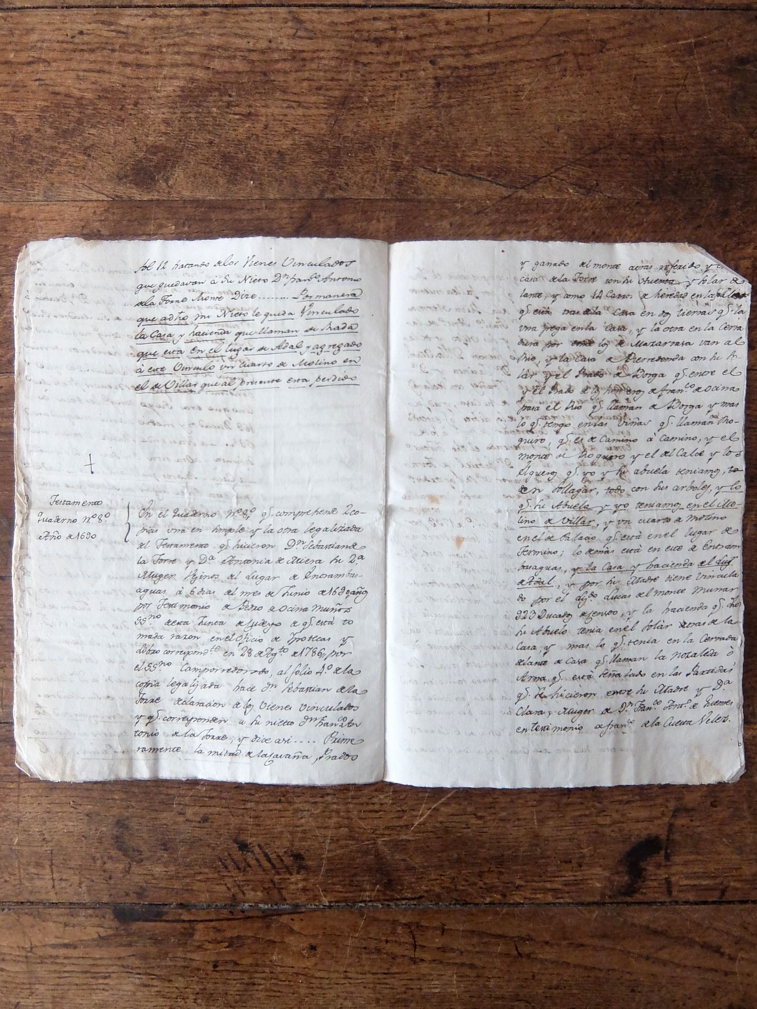 18世紀に記されたフランス語の書類の綴り(古紙10枚)