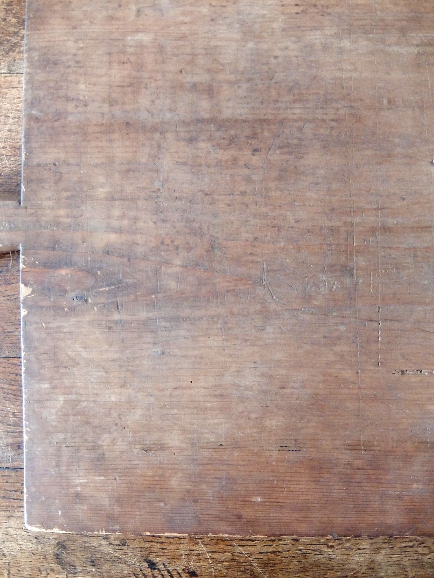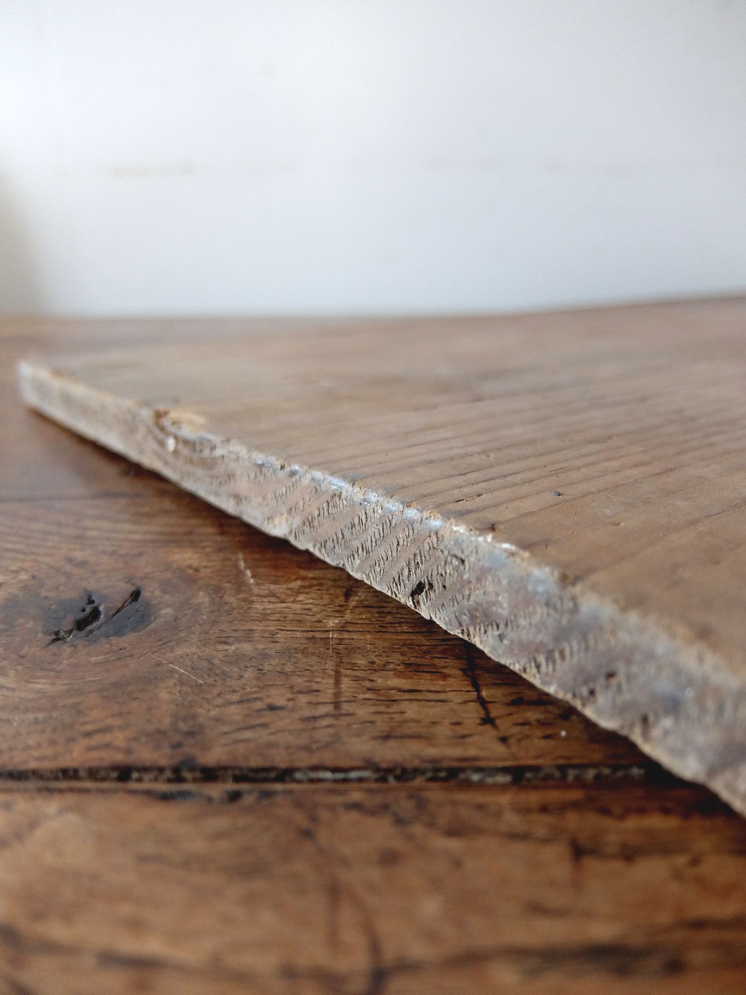 古い包丁跡と木目の雰囲気が美しい大きなまな板