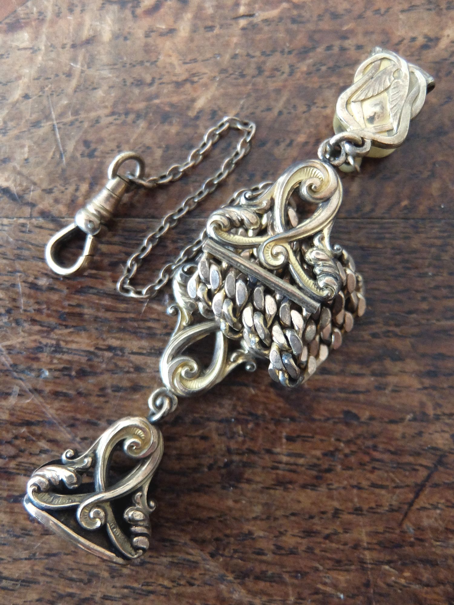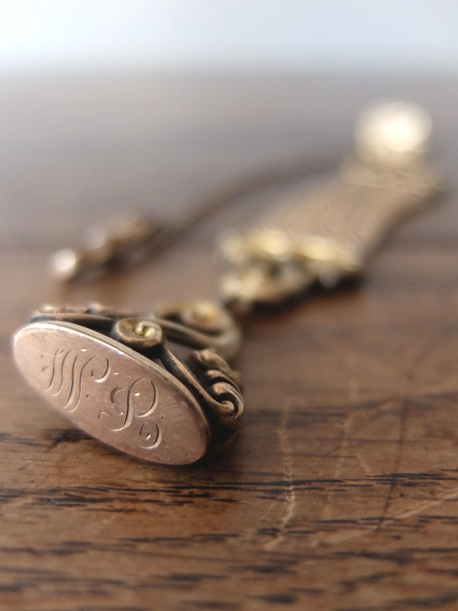 繊細な細工が美しいモノグラムが刻まれた懐中時計用のアクセサリー/金張りのフォブシール(印章)