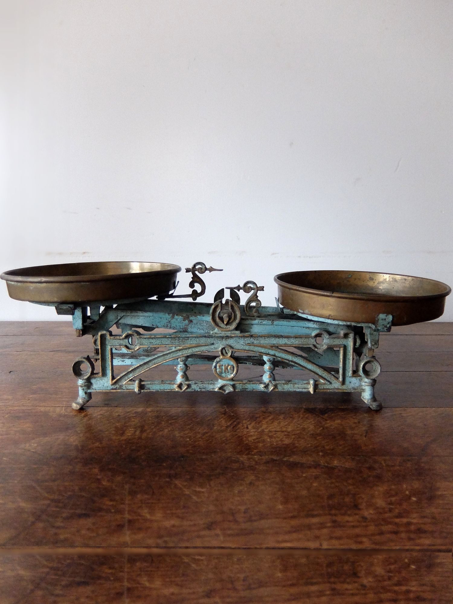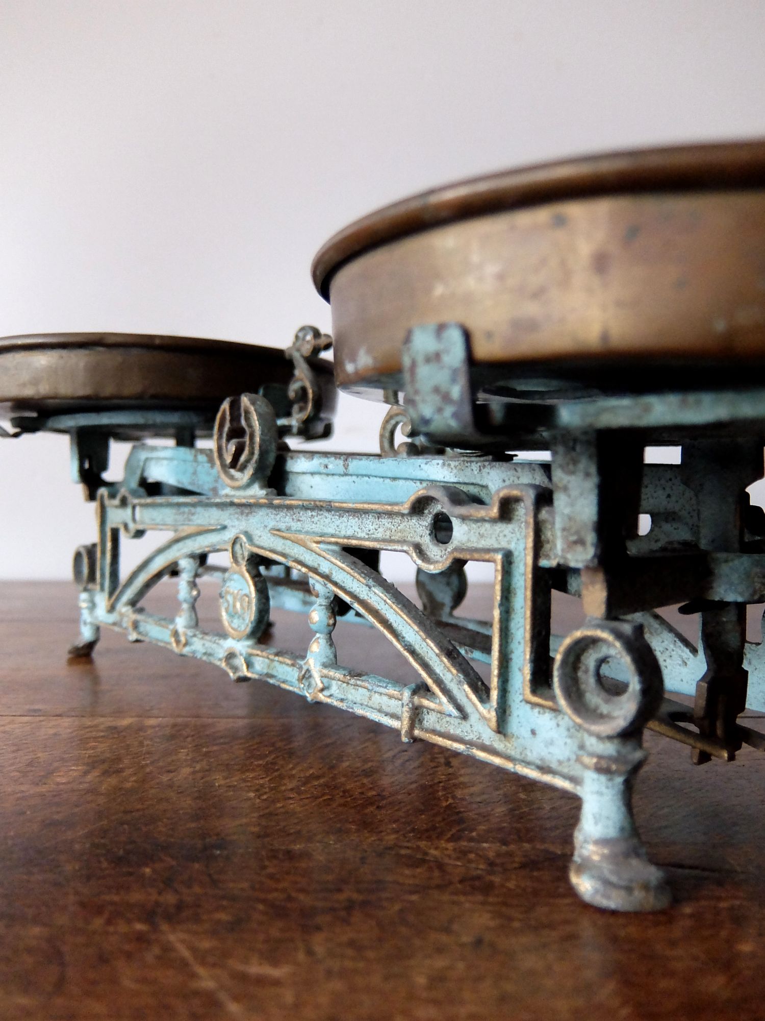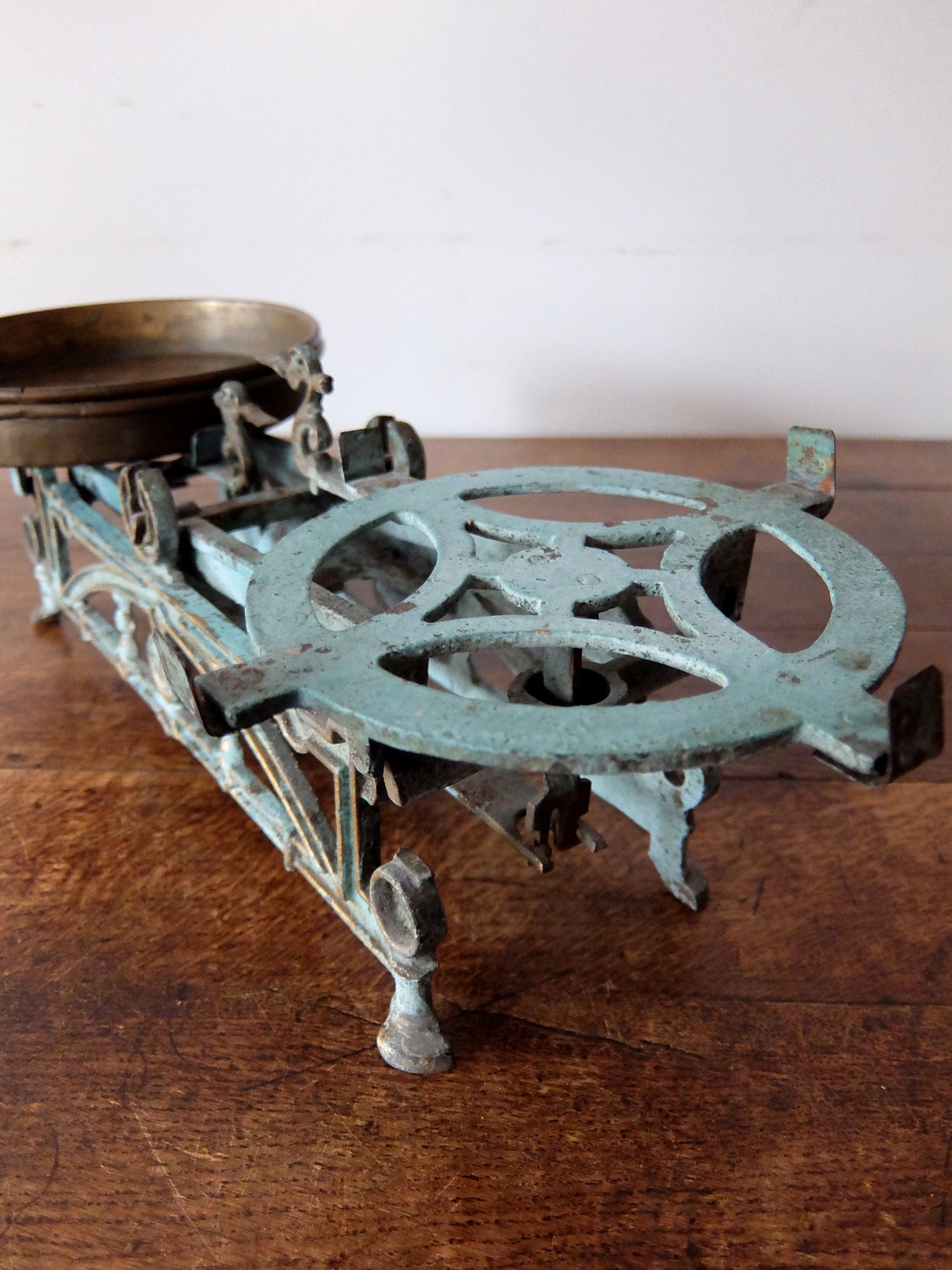 細かな装飾と朽ちた塗装の雰囲気が美しい天秤