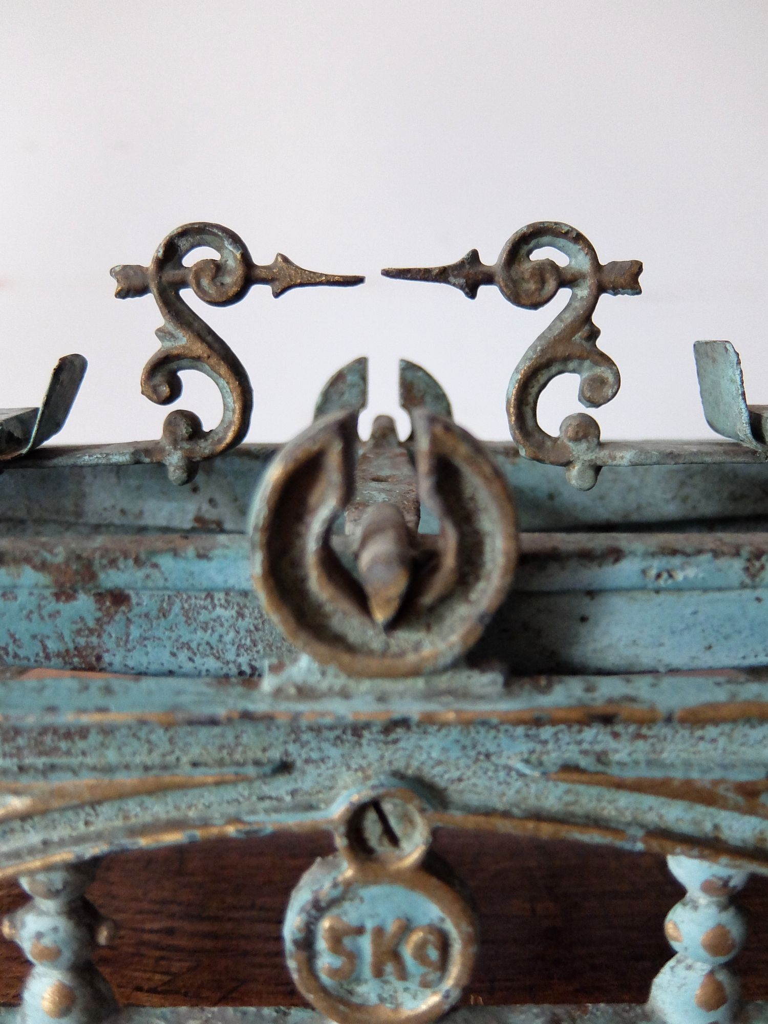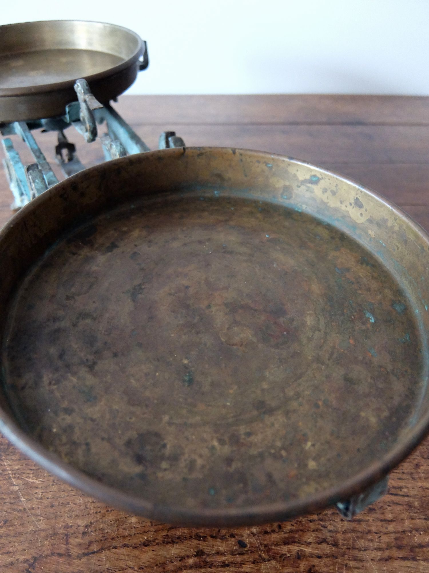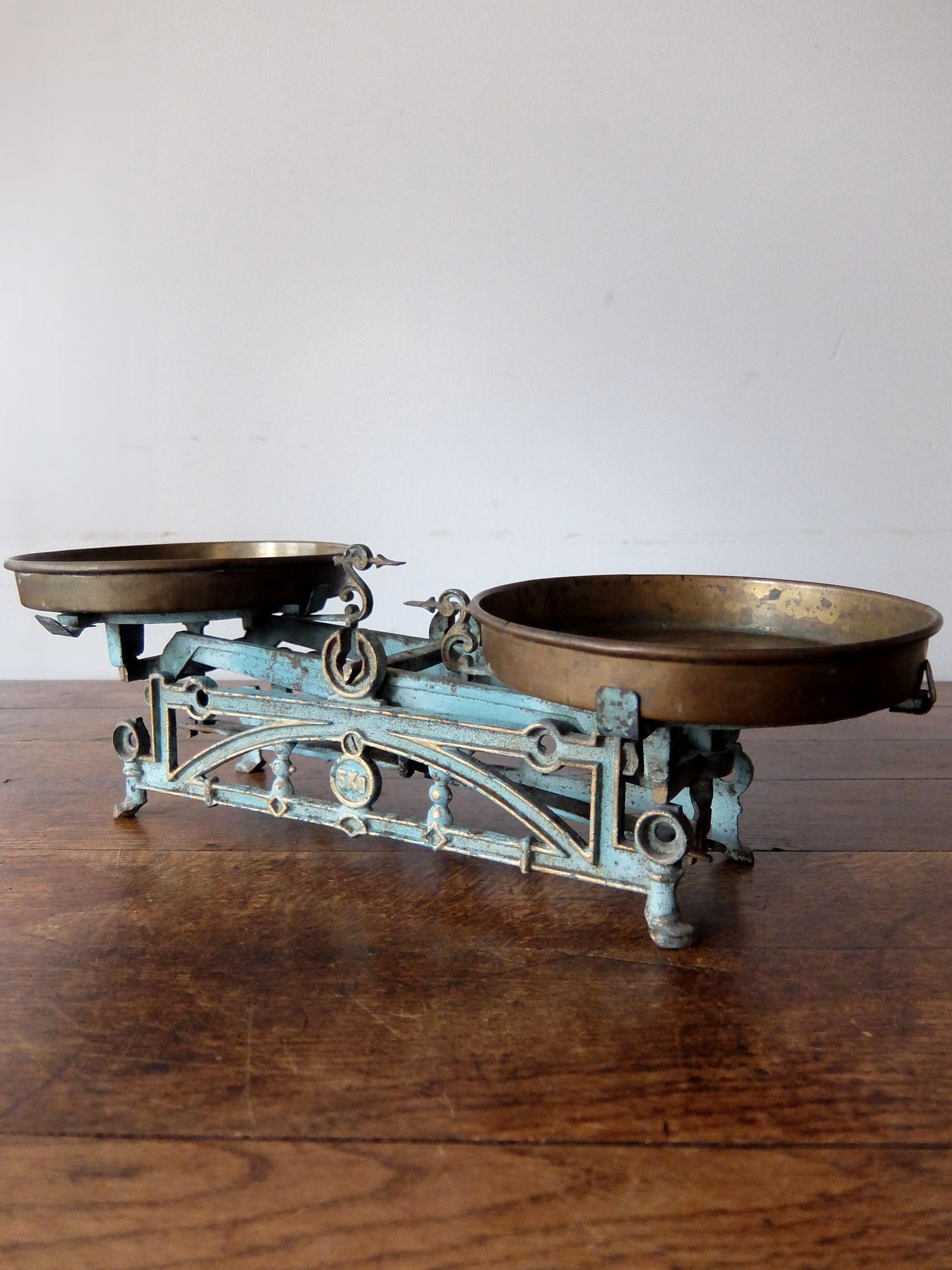 細かな装飾と朽ちた塗装の雰囲気が美しい天秤