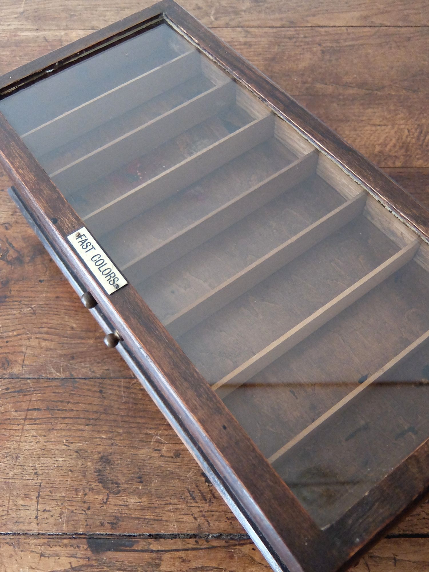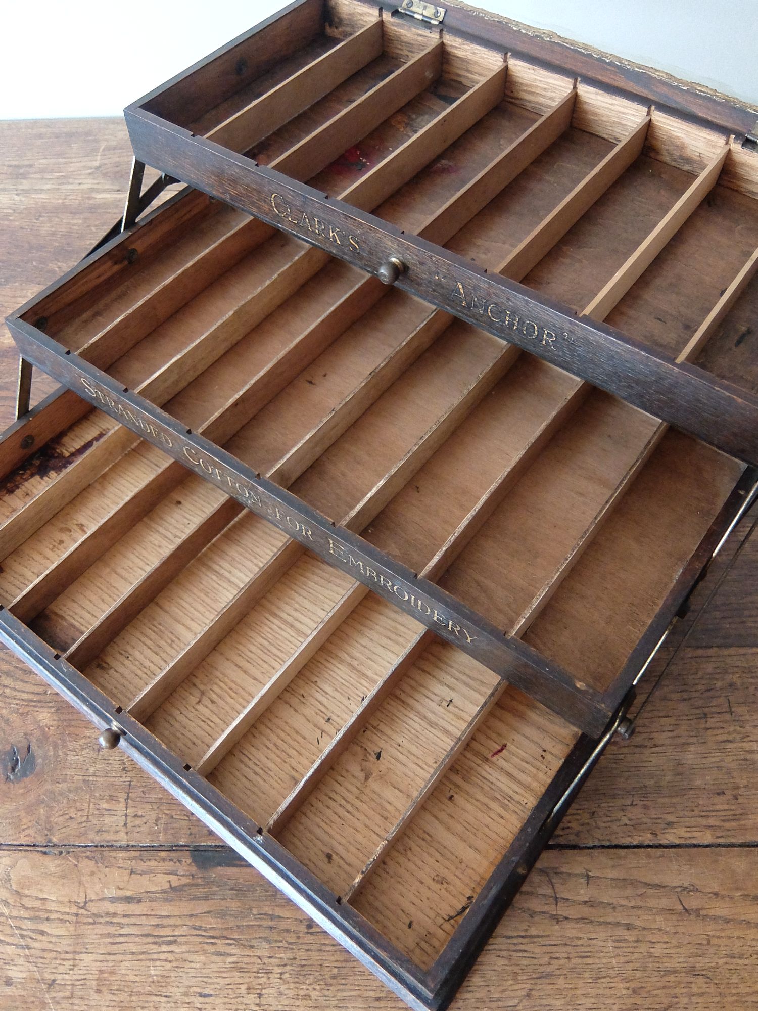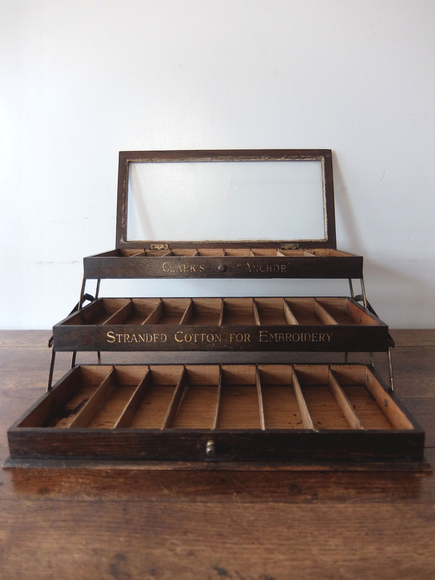 シザー金具により段違いにディスプレイ可能な【Clark's】社製の糸用展示ケース